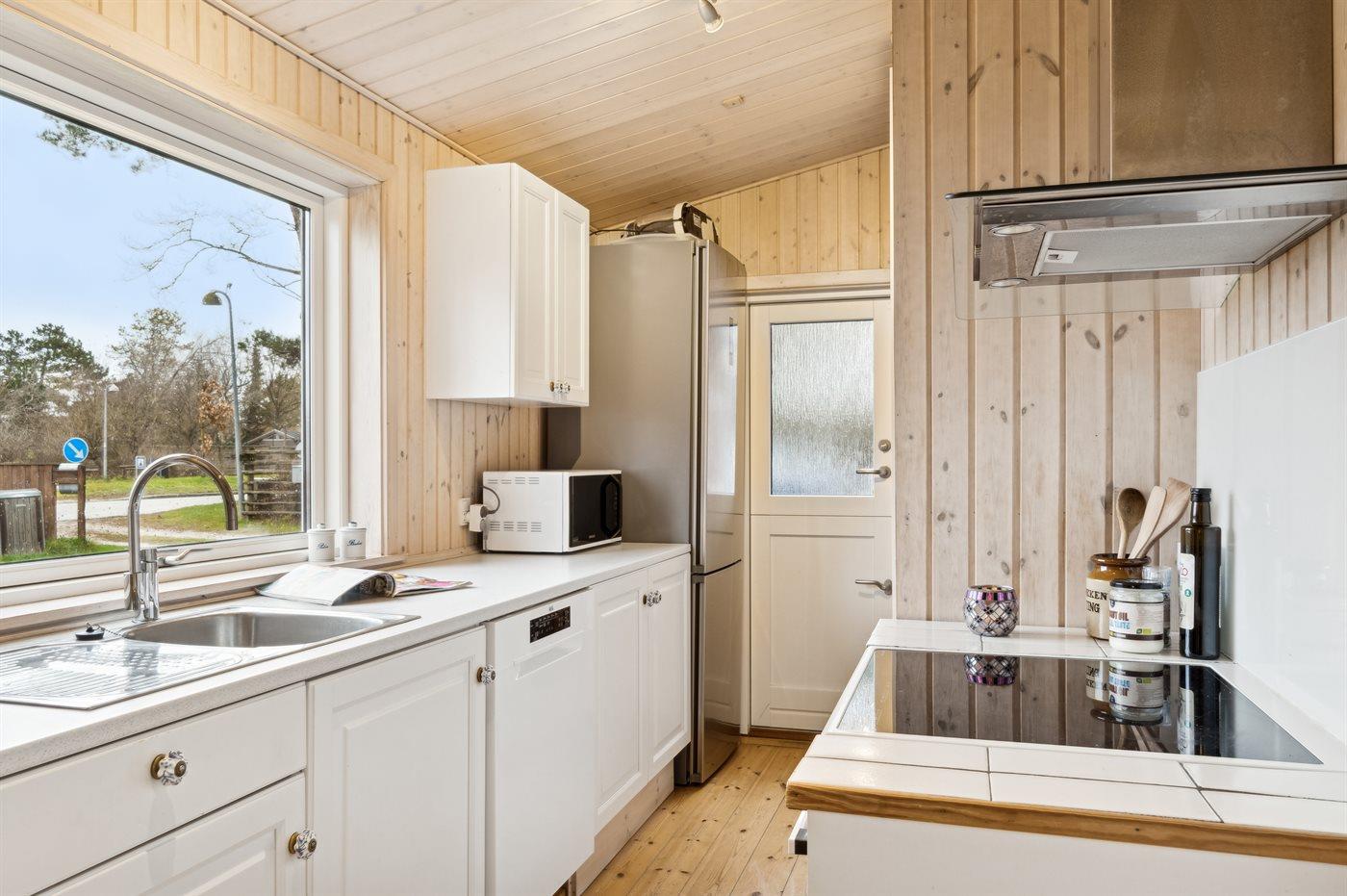 Die Küche ist mit Kühlschrank ausgestattet. Außerdem gibt es 4 Induktions-Kochzonen, Umluftofen, Mikrowelle sowie Geschirrspüler.