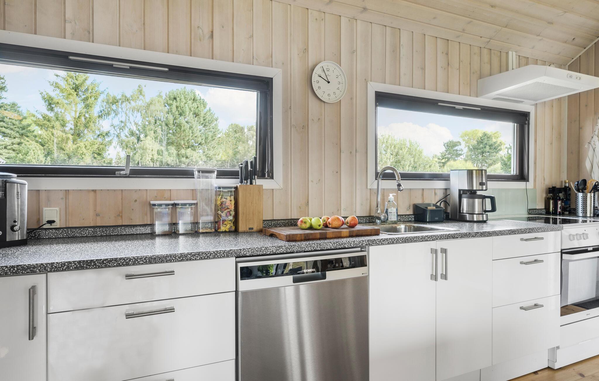 Nur unweit vom Sandstrand von Smidstrup entfernt, erwartet Sie dieses lichtdurchflutete Ferienhaus, das Ihnen alles bietet, was Sie für eine erholsame Auszeit benötigen. Der großzügige Wohnbereich und die moderne, offene Küche laden zu geselligen Kochabenden oder zu entspannten Stunden auf den komfortablen Sofas ein. In den warmen Sommermonaten können Sie die weitläufigen Holzterrassen nutzen, die sich ideal zum Sonnenbaden oder für ein gemeinsames Abendessen im Freien eignen. Der große Garten lädt zudem zu Aktivitäten unter freiem Himmel ein. Hier können Sie sich bei einem Fußballspiel mit der Familie austoben oder einfach die frische Luft genießen.