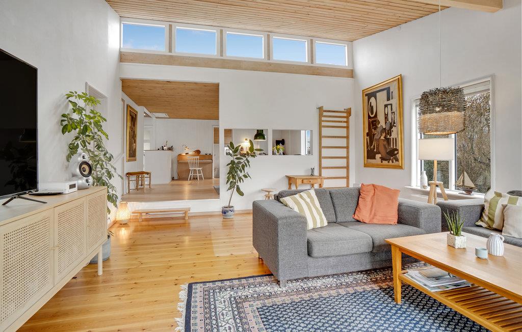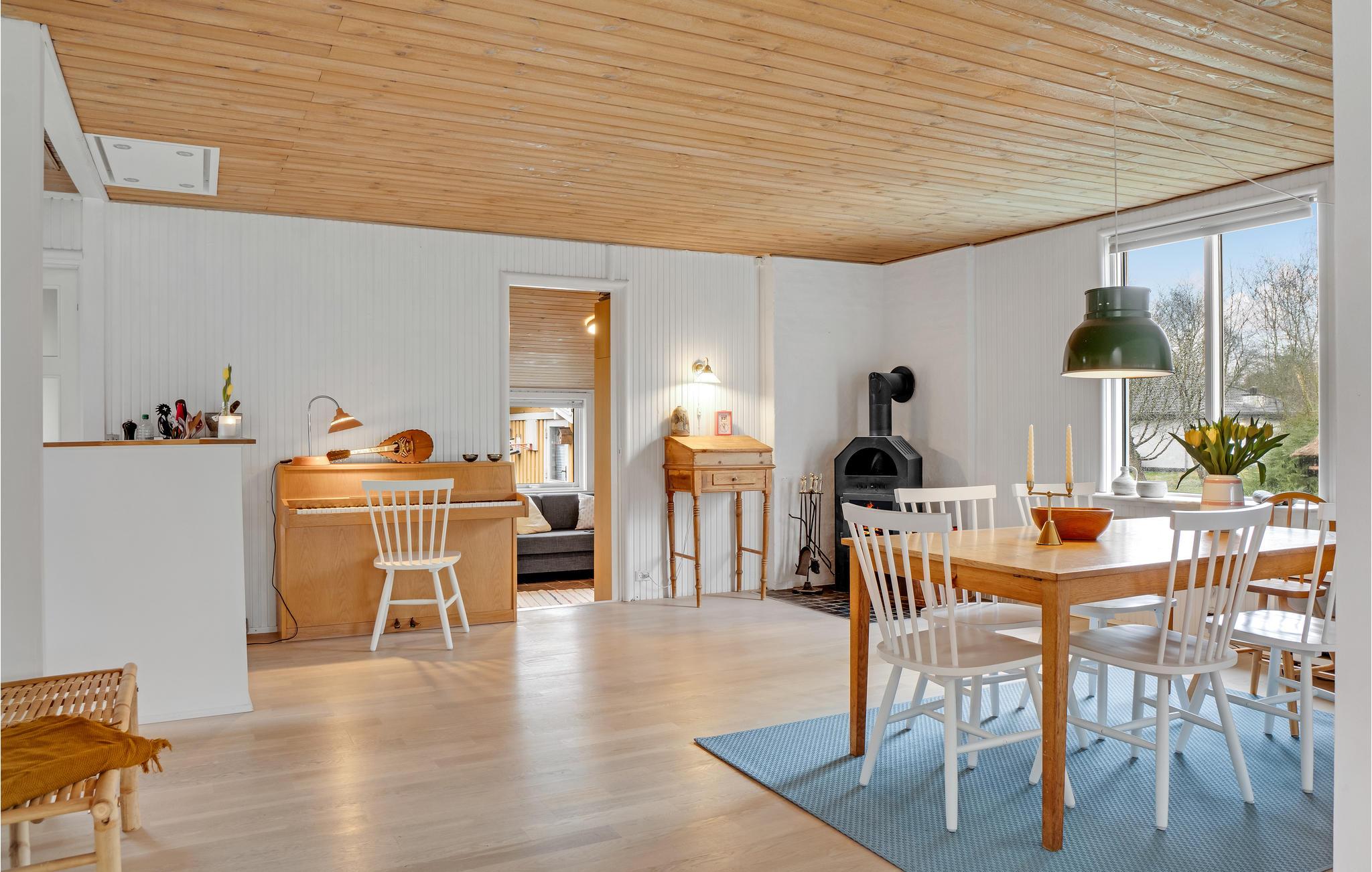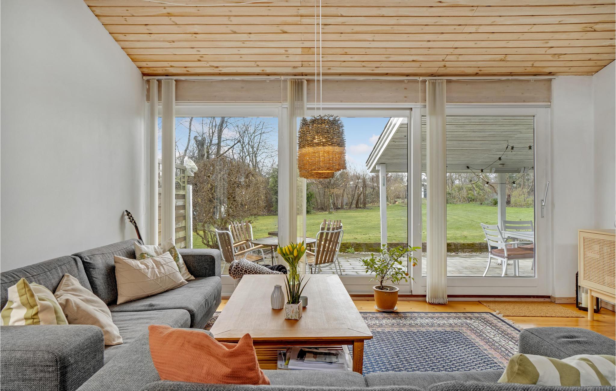 Modernes Ferienhaus in Smidstrup Strand mit Garten, Kamin und Strandnähe für erholsame Urlaubstage.