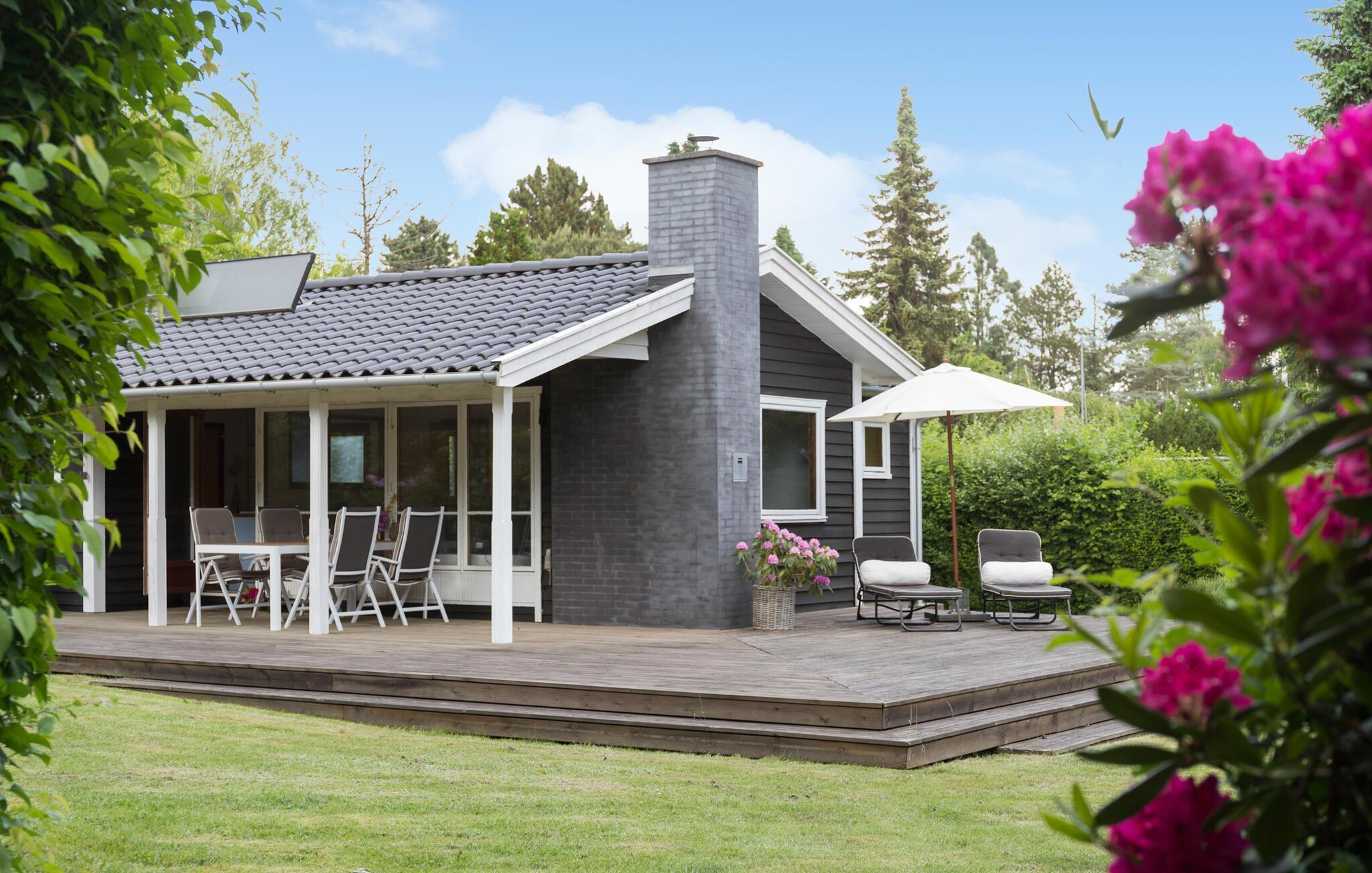 Gemütliches Ferienhaus mit Kamin und großer Terrasse nahe dem Sandstrand von Smidstrup in Dänemark.