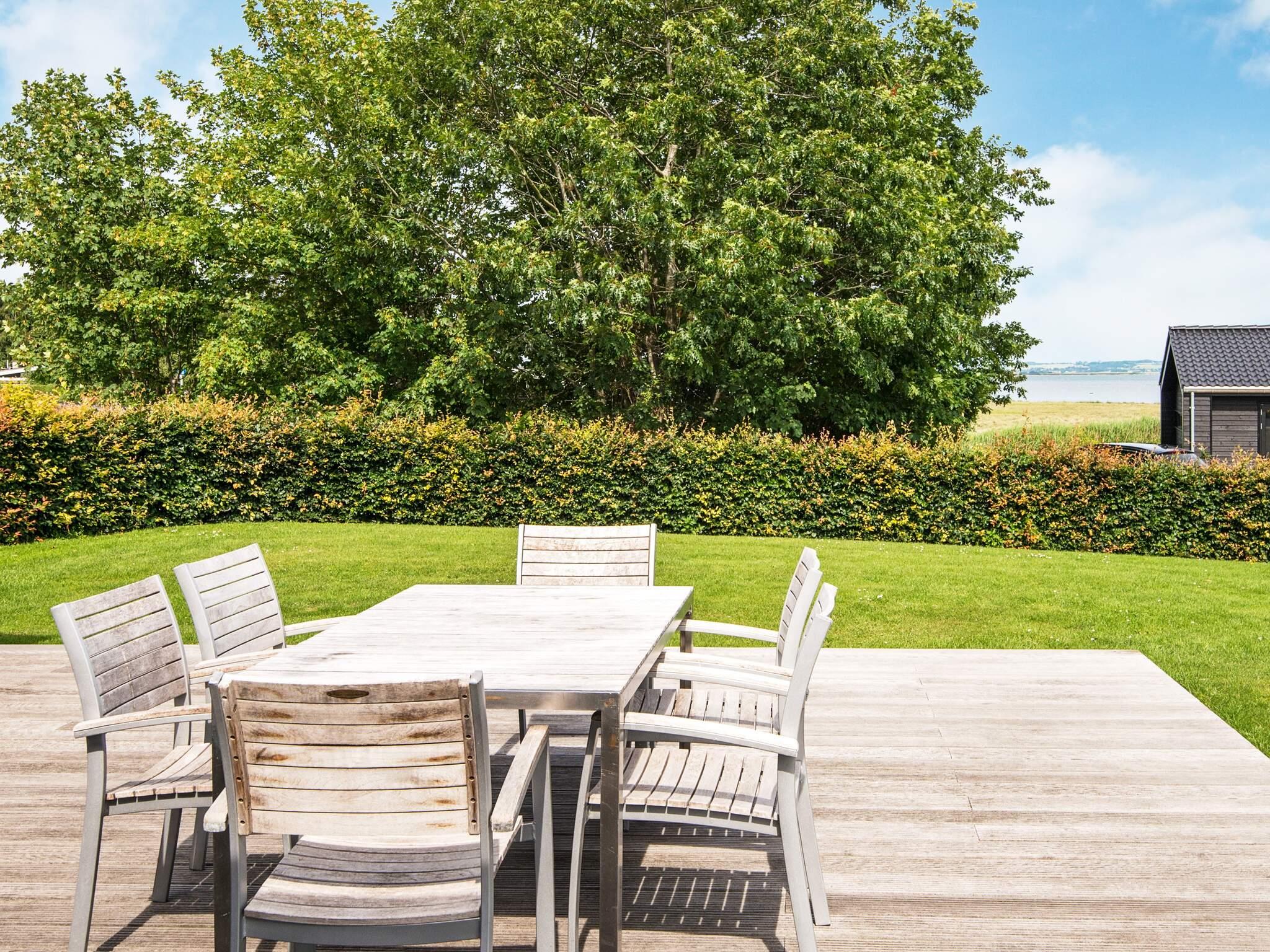 Das Ferienhaus steht auf einem 1250 m² großen Rasengrundstück, nur etwa 100 m von der Ostsee. Im Außenbereich findet man eine 120 m² große, offene Terrassenfläche sowie eine 25 m² große, überdachte Terrasse. Vom Hafen in Snaptun verkehren kleine Fähren hinaus zu den Inseln Hjarnø und Endelave, ideal für einen Tagesausflug.