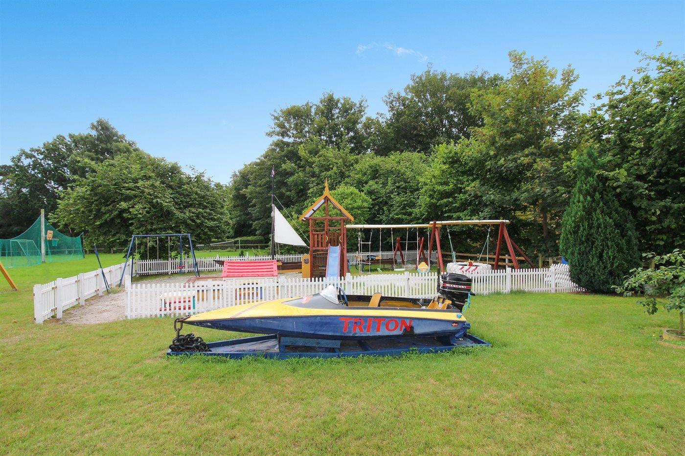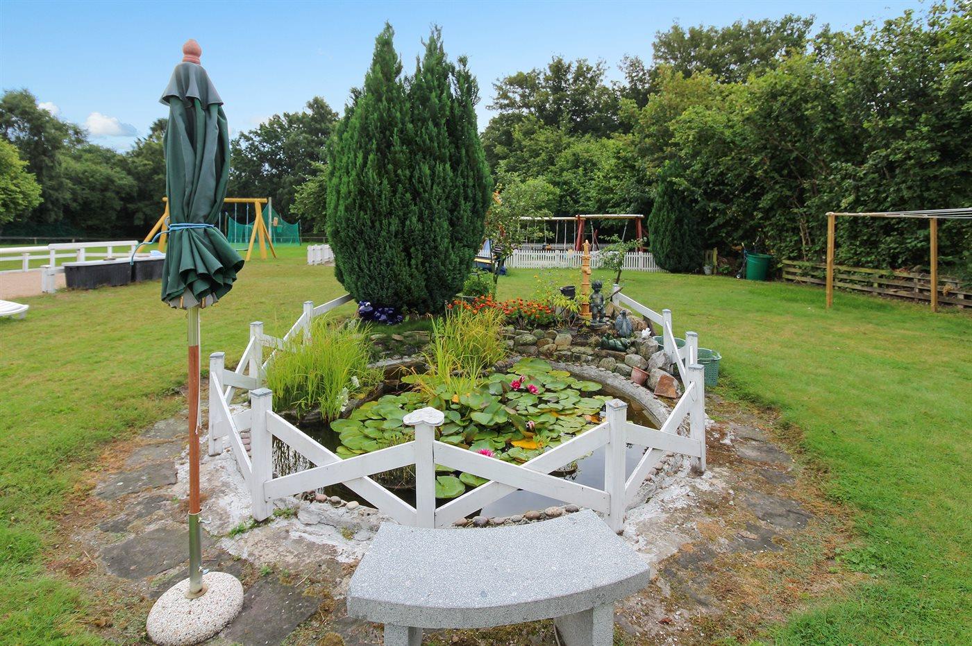 Auf dem großen, gemeinsamen Grundstück finden Sie einen kleinen Teich mit Seerosen, einen Spielplatz mit Sandkasten, Schaukel, Rutsche und Spielturm, Petanquebahn, Fußballtor sowie einen Badmintonplatz im Freien – ein Schlaraffenland für Kinder. Von der überdachten Terrasse aus können Sie den Kindern beim spielen zu sehen und von der teilweise überdachten Terrasse hinter dem Haus haben Sie Aussicht auf die Felder.