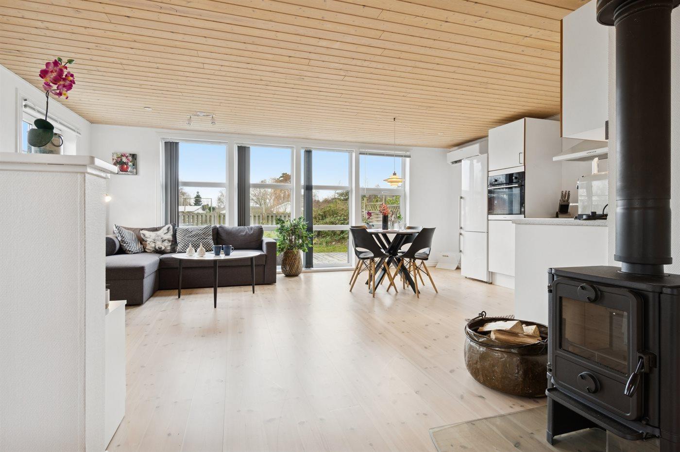 Modernes Ferienhaus mit Terrasse und Kamin nahe Balka Strand in Dänemark.