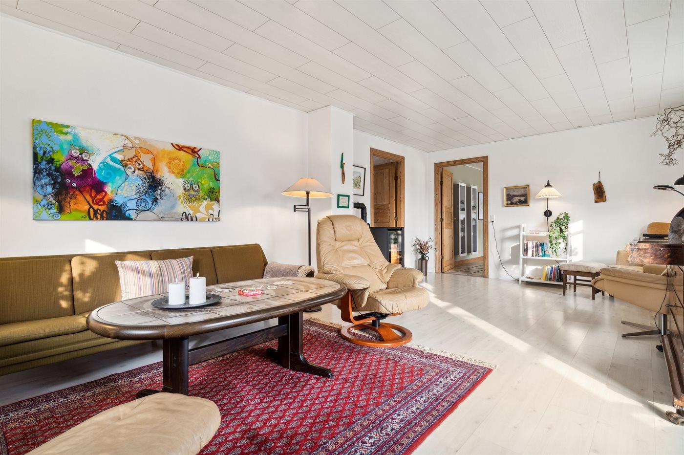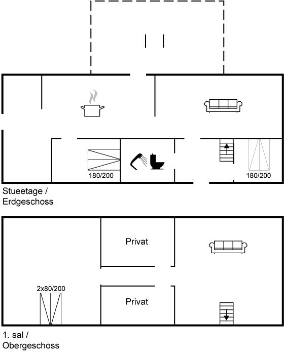 Das Ferienhaus erstreckt sich über zwei Etagen mit zwei Schlafzimmern im Erdgeschoss und einem großen Schlafzimmer im ersten Stock. Das Haus ist geräumig mit mehreren Wohnzimmern - sowohl im Erdgeschoss als auch im ersten Stock. Das Haus ist von einem ungestörten Garten umgeben.