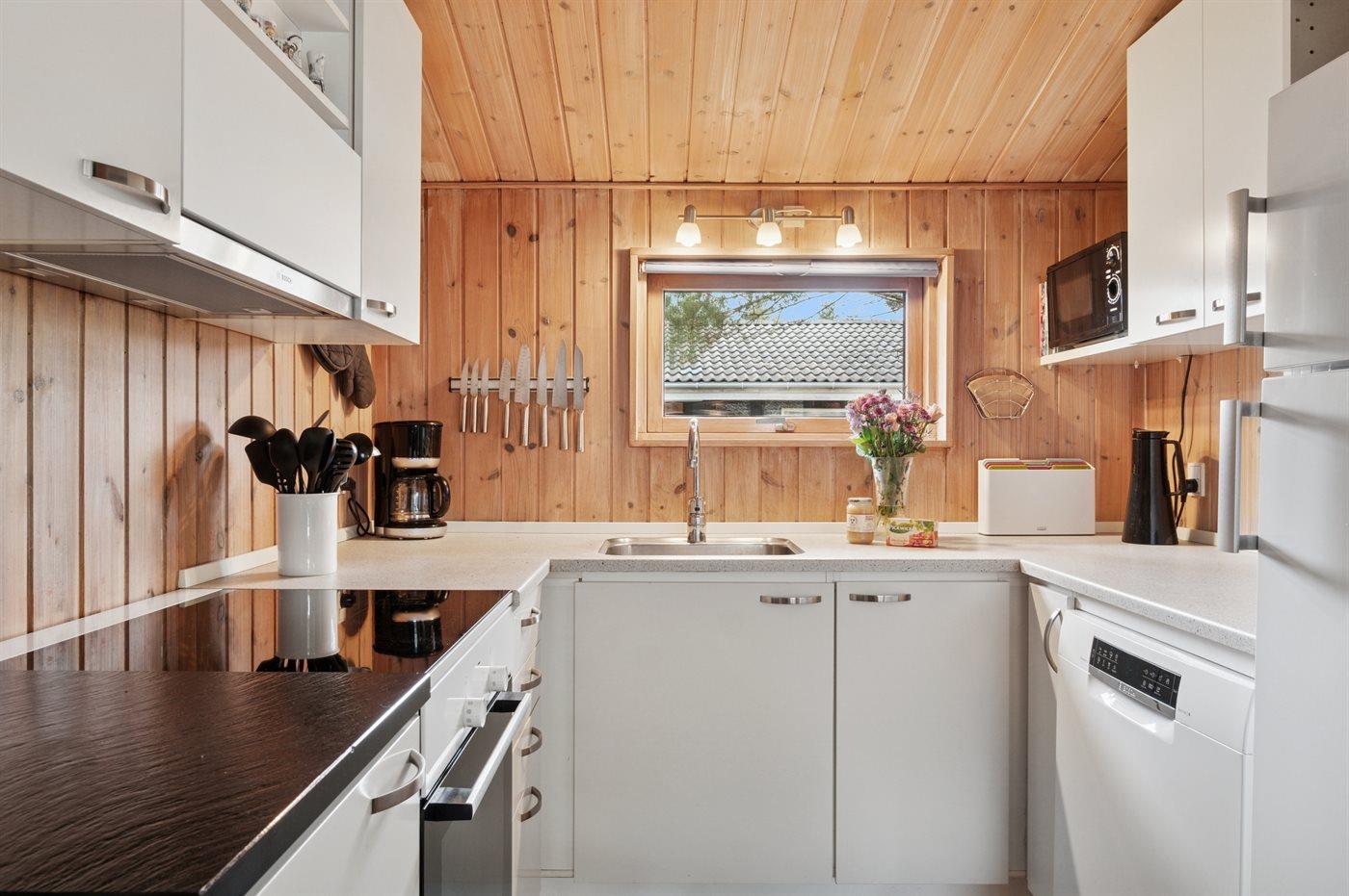 Mit Blick aufs Wasser liegt dieses Haus am Rande des gemütlichen Snogebæk, das im Sommer mit Geschäften, Restaurants und Imbissen lockt. Ein Supermarkt für den täglichen Ferienbedarf ist zu Fuß vom Haus erreichbar – also ist alles bereit für einen spannenden und zugleich erholsamen Urlaub mit Badevergnügen an den Sandstränden von Balka, den großen Dünenlandschaften bei Dueodde oder dem schönen Sandstrand direkt unterhalb des Hauses.