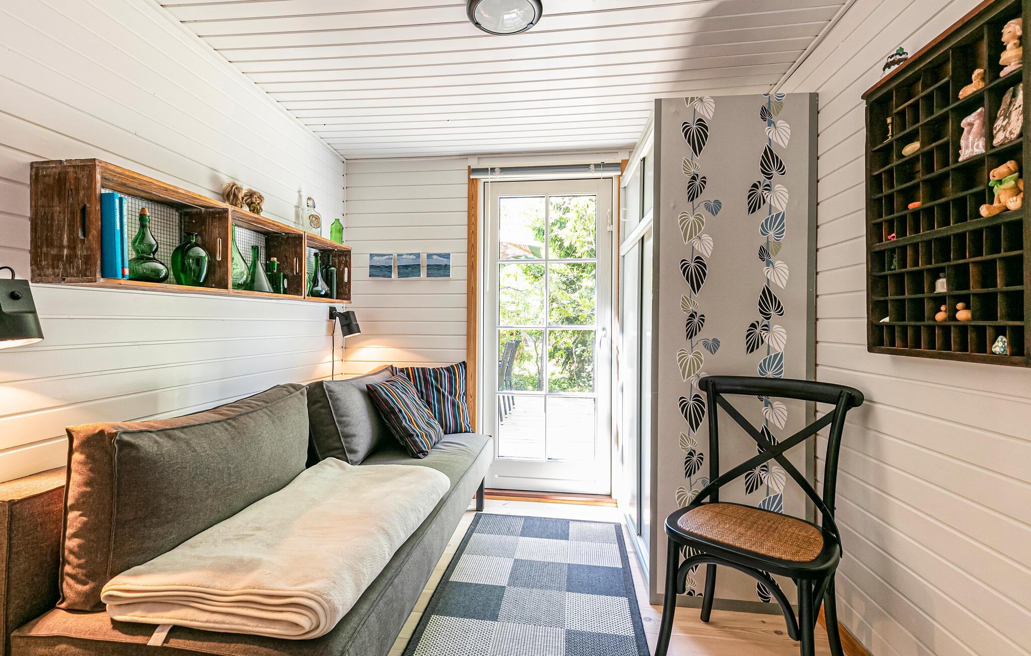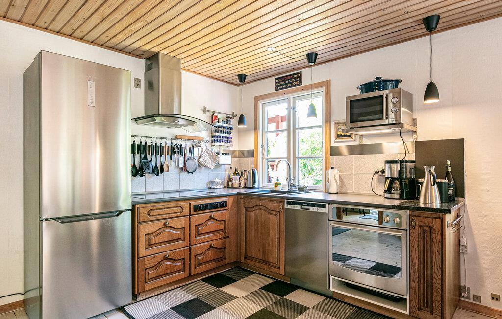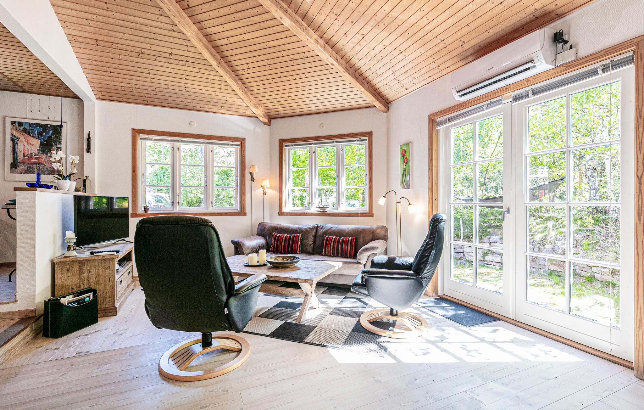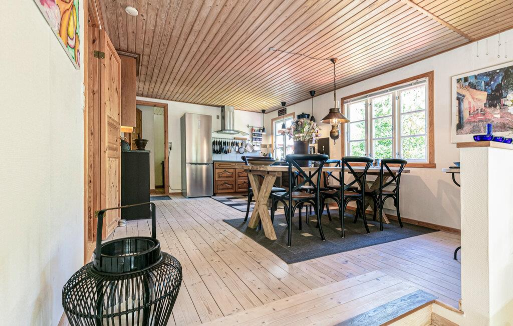 Umgeben von Bäumen und Sträucher heißt Sie dieses schöne Ferienhaus willkommen. Gemeinsam mit Ihren Lieben können Sie diese Oase der Ruhe und die Nähe zur Natur genießen. Im Inneren bieten Ihnen der angenehme Komfort und die behagliche Stimmung die passenden Voraussetzungen für einen entspannten Familienurlaub. Zaubern Sie leckere Mahlzeiten in der Küche oder lassen sich mit einem Buch in den Sesseln beim Holzofen nieder, während Sie Ihren Kindern beim Malen oder Spielen am Esstisch zuschauen.