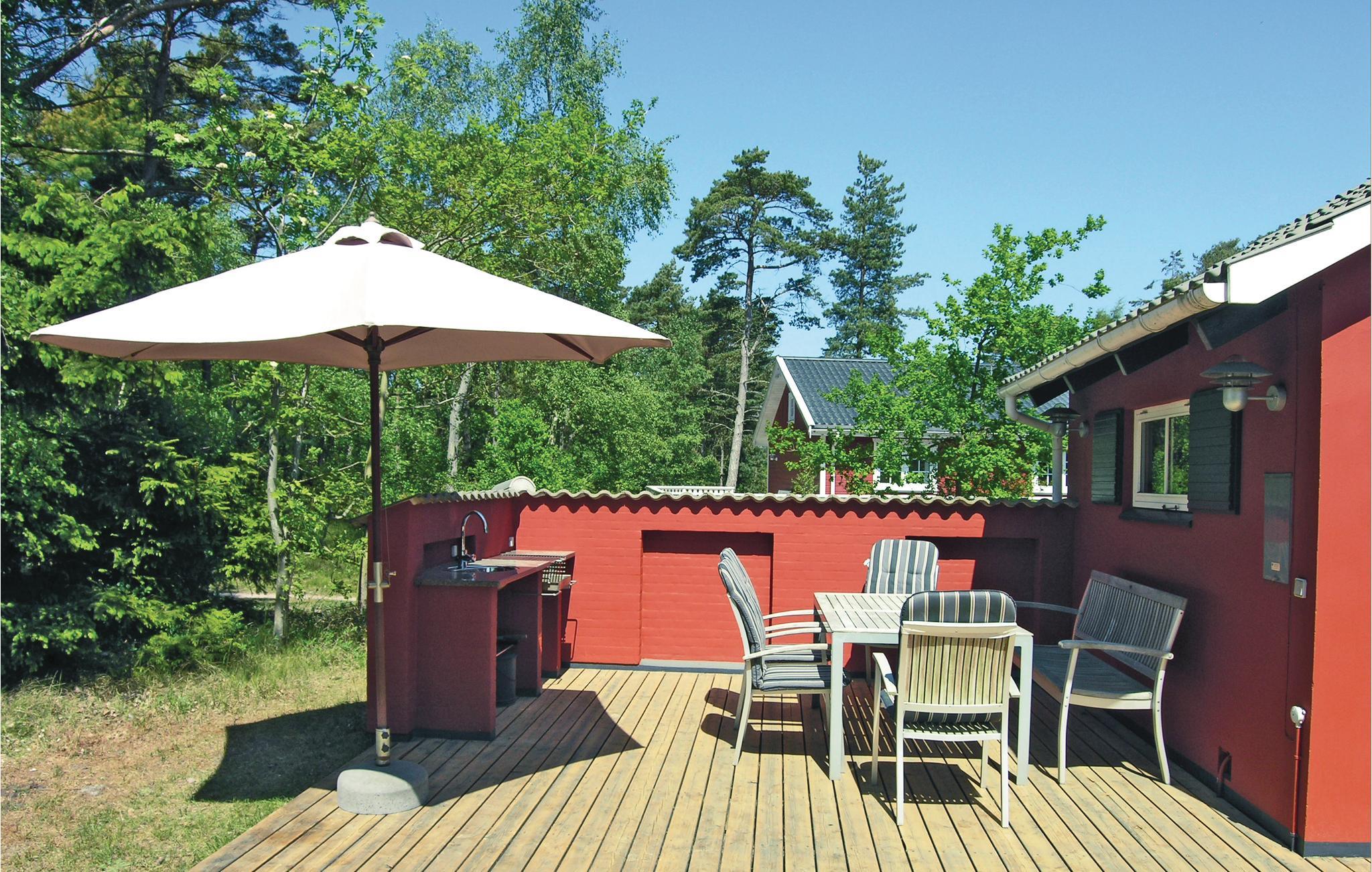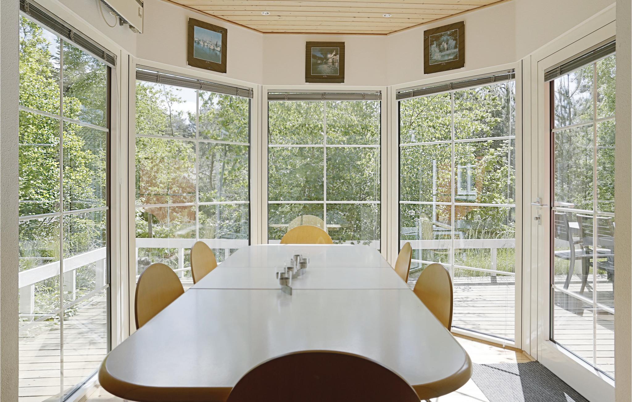 Die Einrichtung und Gestaltung des Ferienhauses ist ordentlich und funktional und bietet unter anderem im Essbereich ein schönes Erkerfenster mit viel Licht. Es gibt außerdem ein schönes Badezimmer und eine angenehmen, große Terrasse mit Außenküche. Abends können Sie vor dem Kaminofen sitzen und sich amüsieren, während das Feuer knistert.