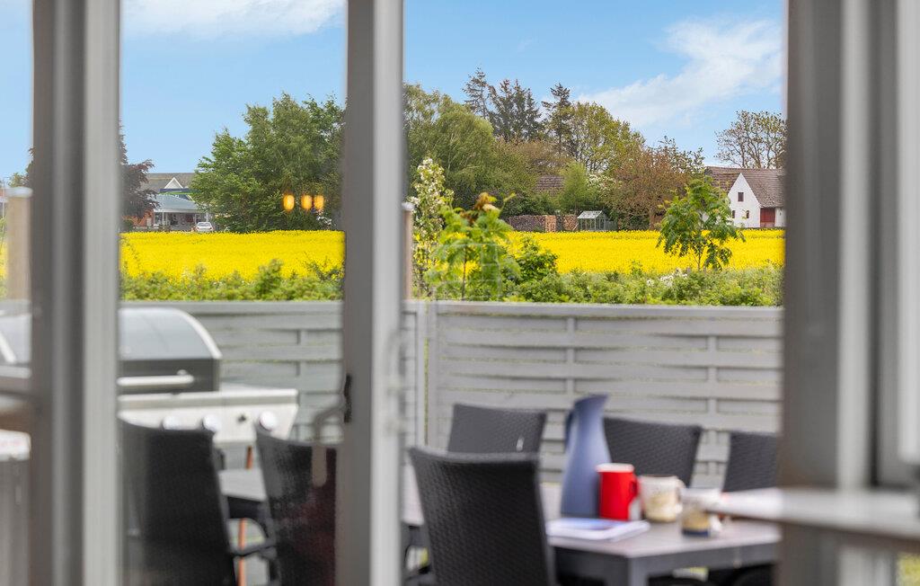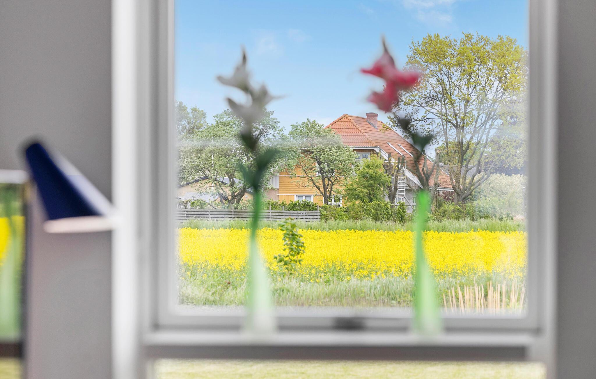 Freuen Sie sich auf Ihren nächsten Urlaub in diesem Ferienhaus mit Blick auf Felder und viel Platz im Freien.