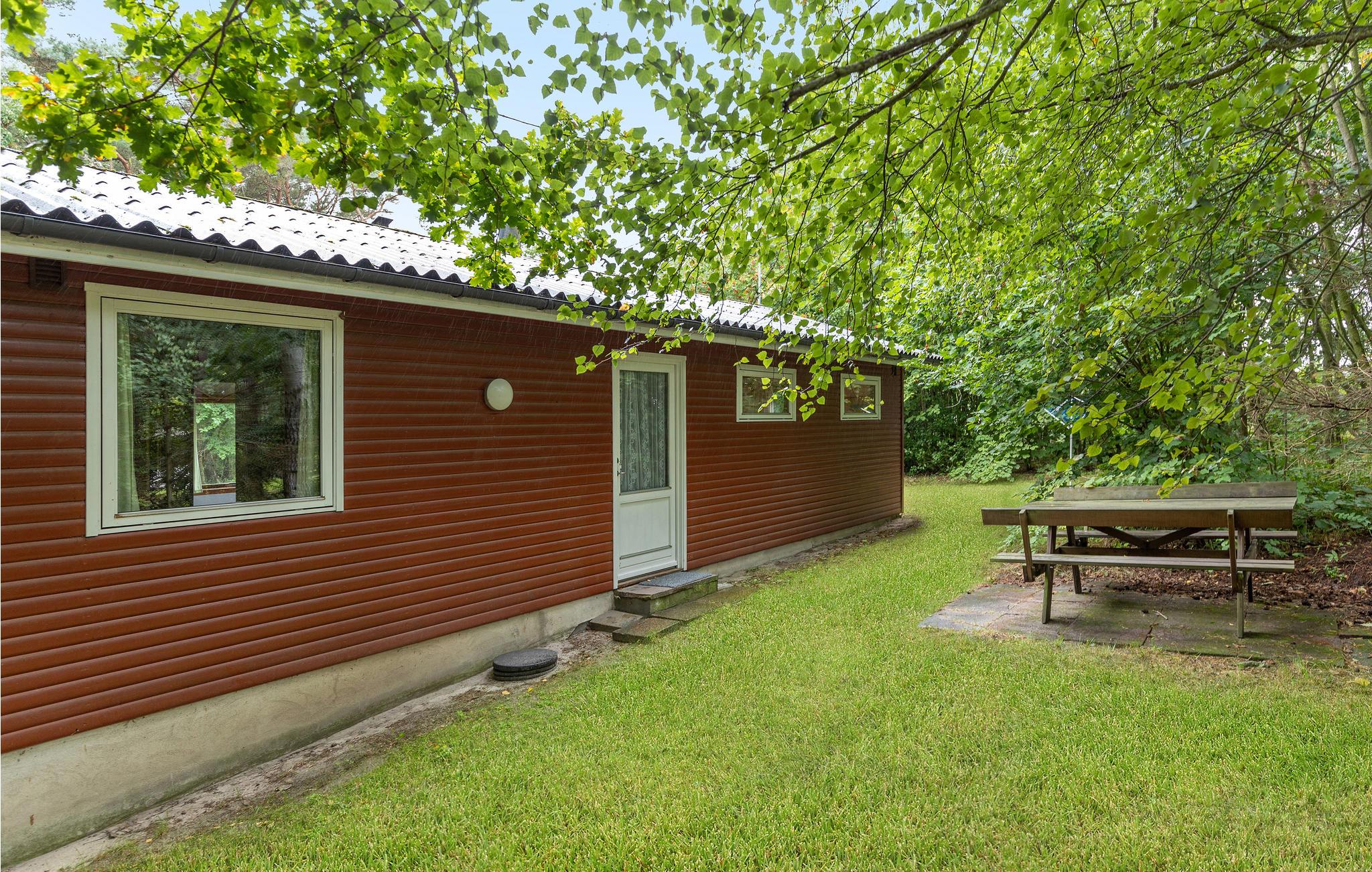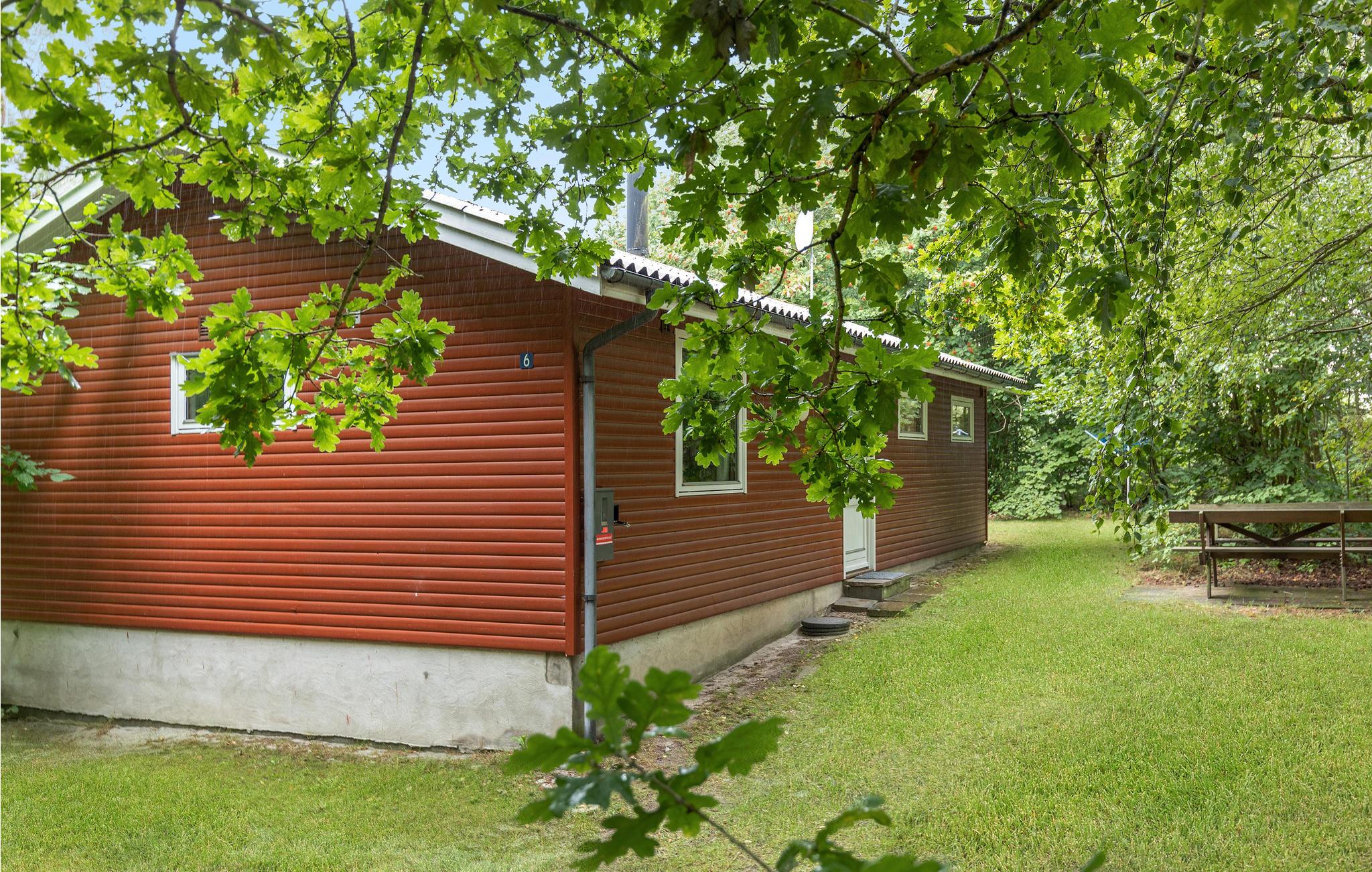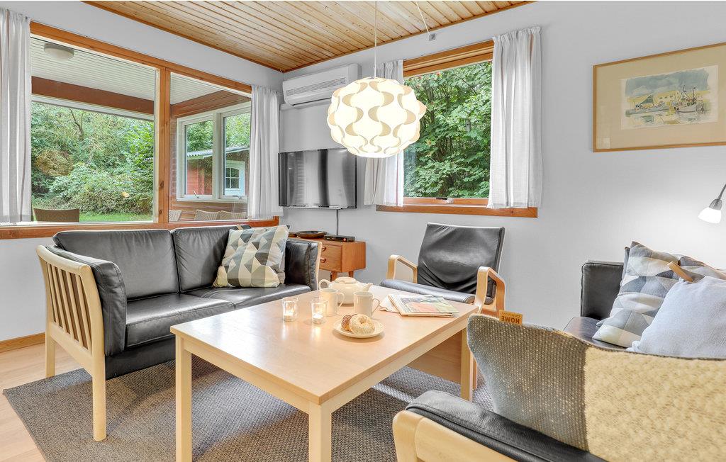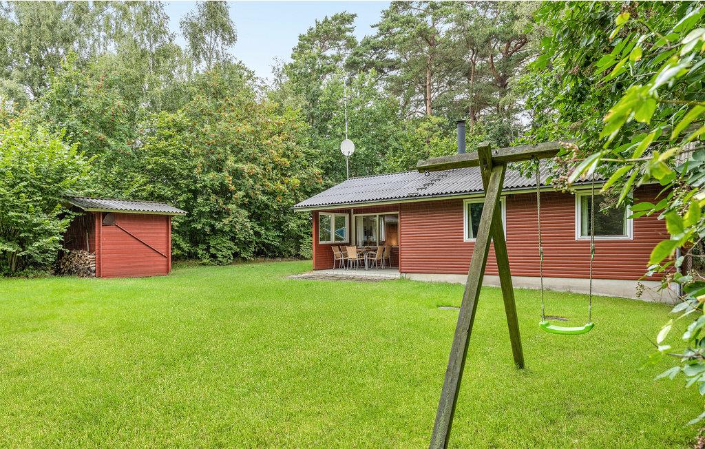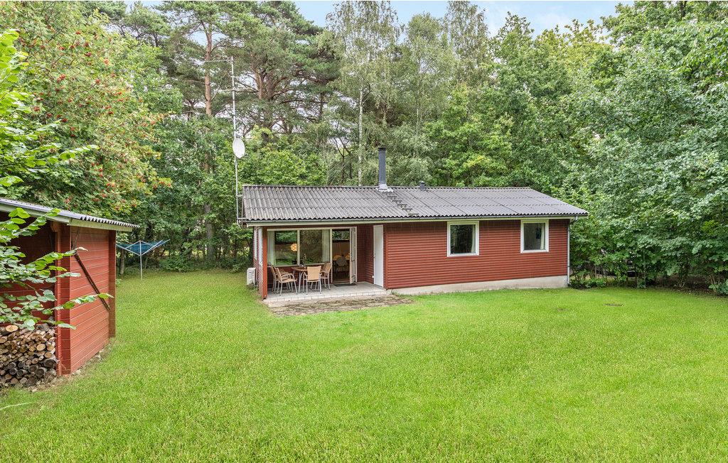 Gemütliches Holzhaus nahe kinderfreundlichem Strand mit Kamin, überdachter Terrasse und großem Garten in Snogebæk, Dänemark.