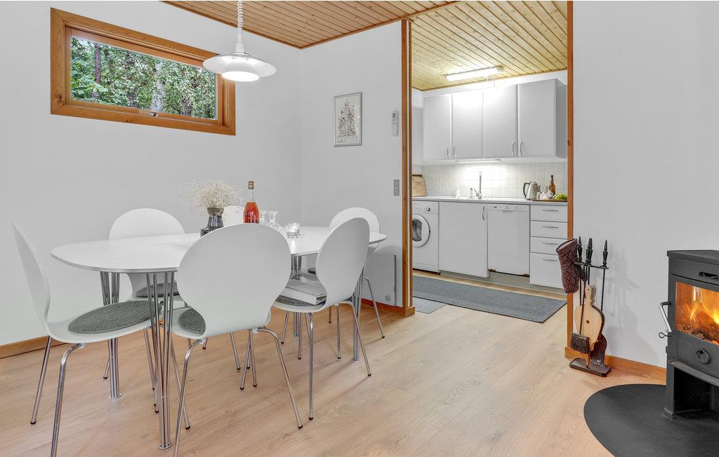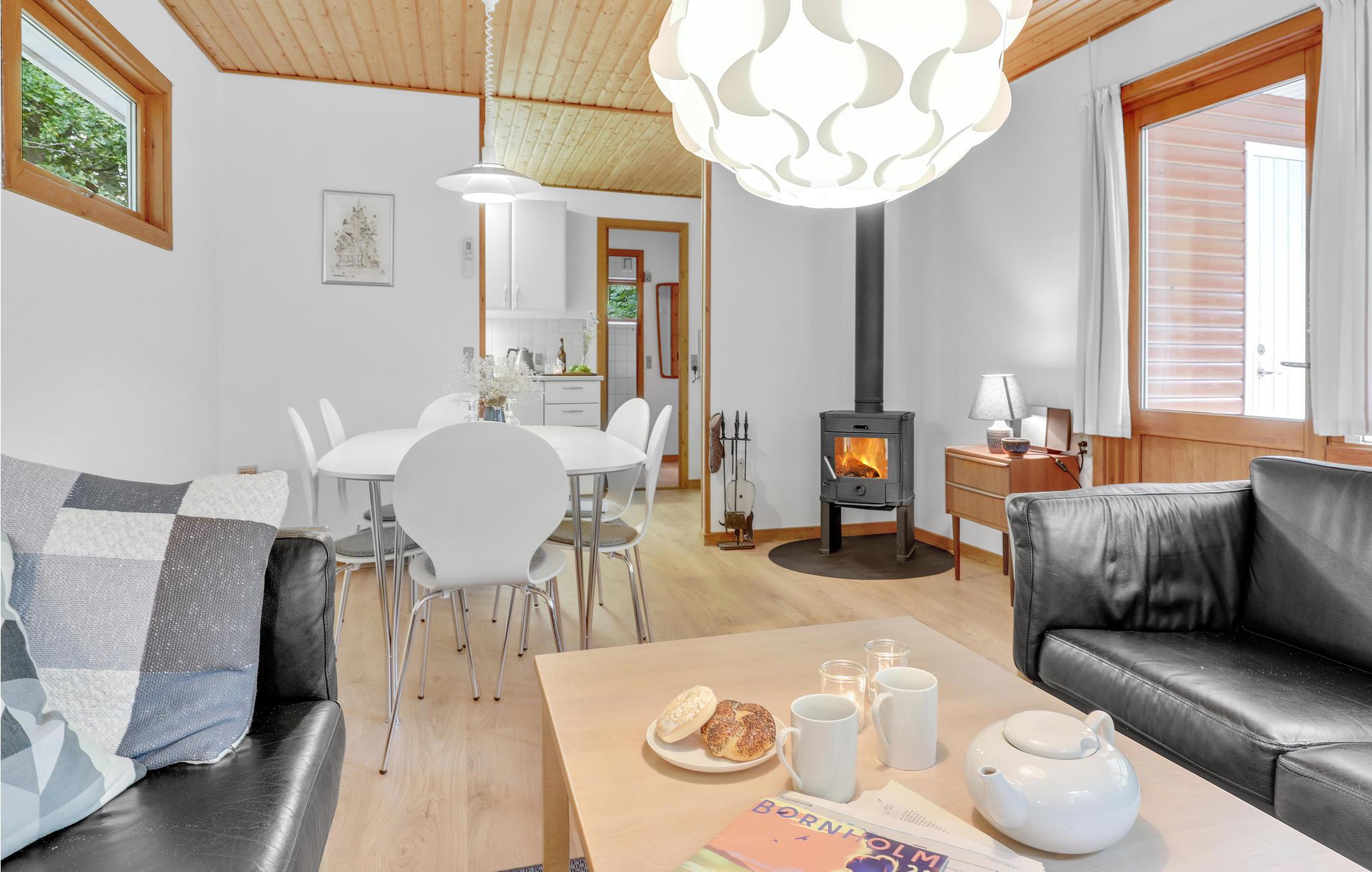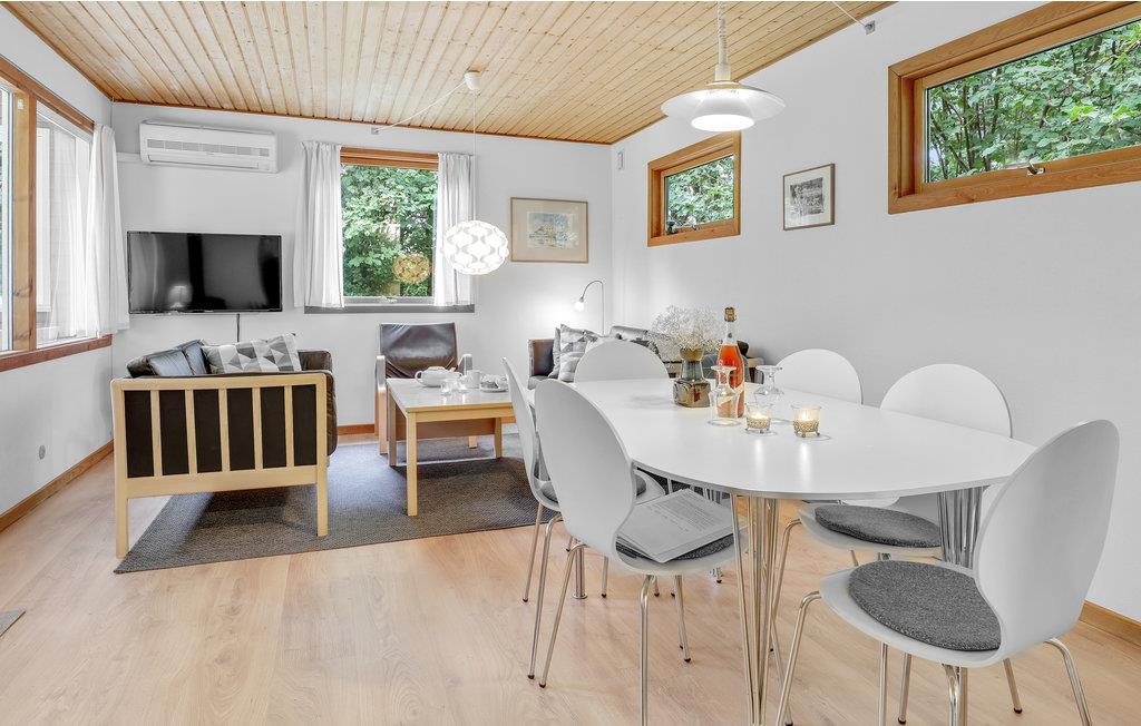 Der natürliche Mittelpunkt des Hauses ist das schöne, helle Wohnzimmer, in dem Sie sich in bequemen Möbel schlängen und am Flachbildschirm Filme schauen können. Hier befindet sich auch ein Kaminofen, der im Herbst und Winter für eine gemütliche Atmosphäre sorgt. Alle drei Schlafzimmer des Hauses sind mit guten Betten ausgestattet.