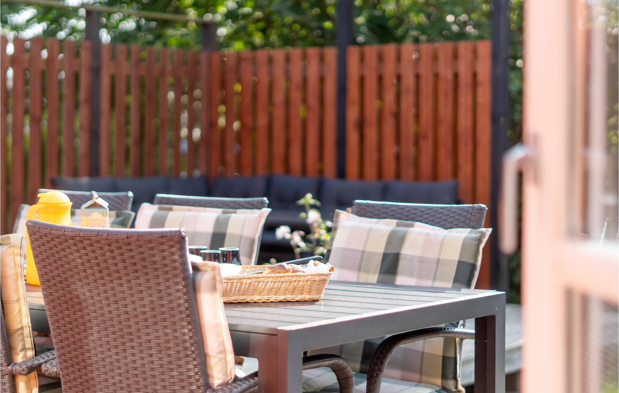 Ob Indoor-Hygge oder Sonne im Garten, hier erleben Sie traumhafte Urlaubstage. Im Wohnzimmer können Sie an kühlen Tagen den Holzofen anfeuern und sich in der Küche viel Zeit zum Kochen nehmen, während die Kinder sich auf weichen Polstern ausbreiten.