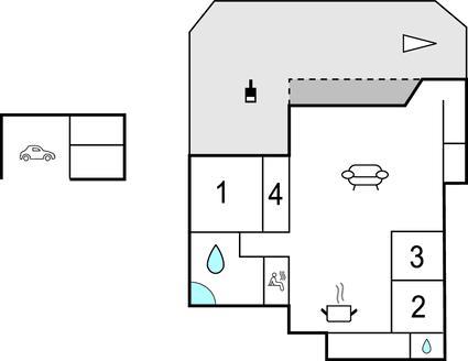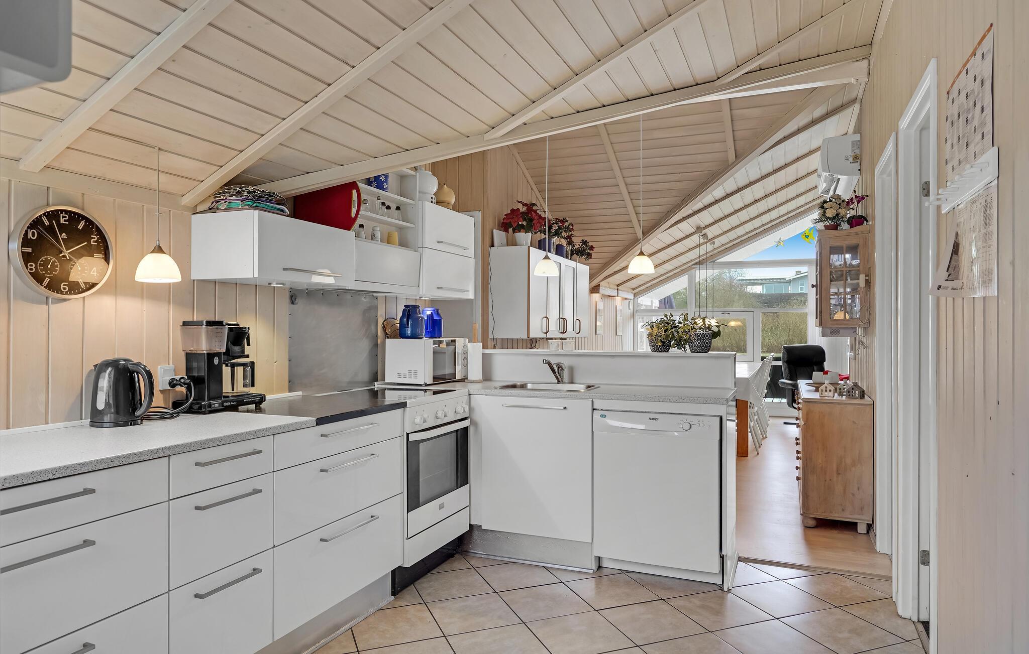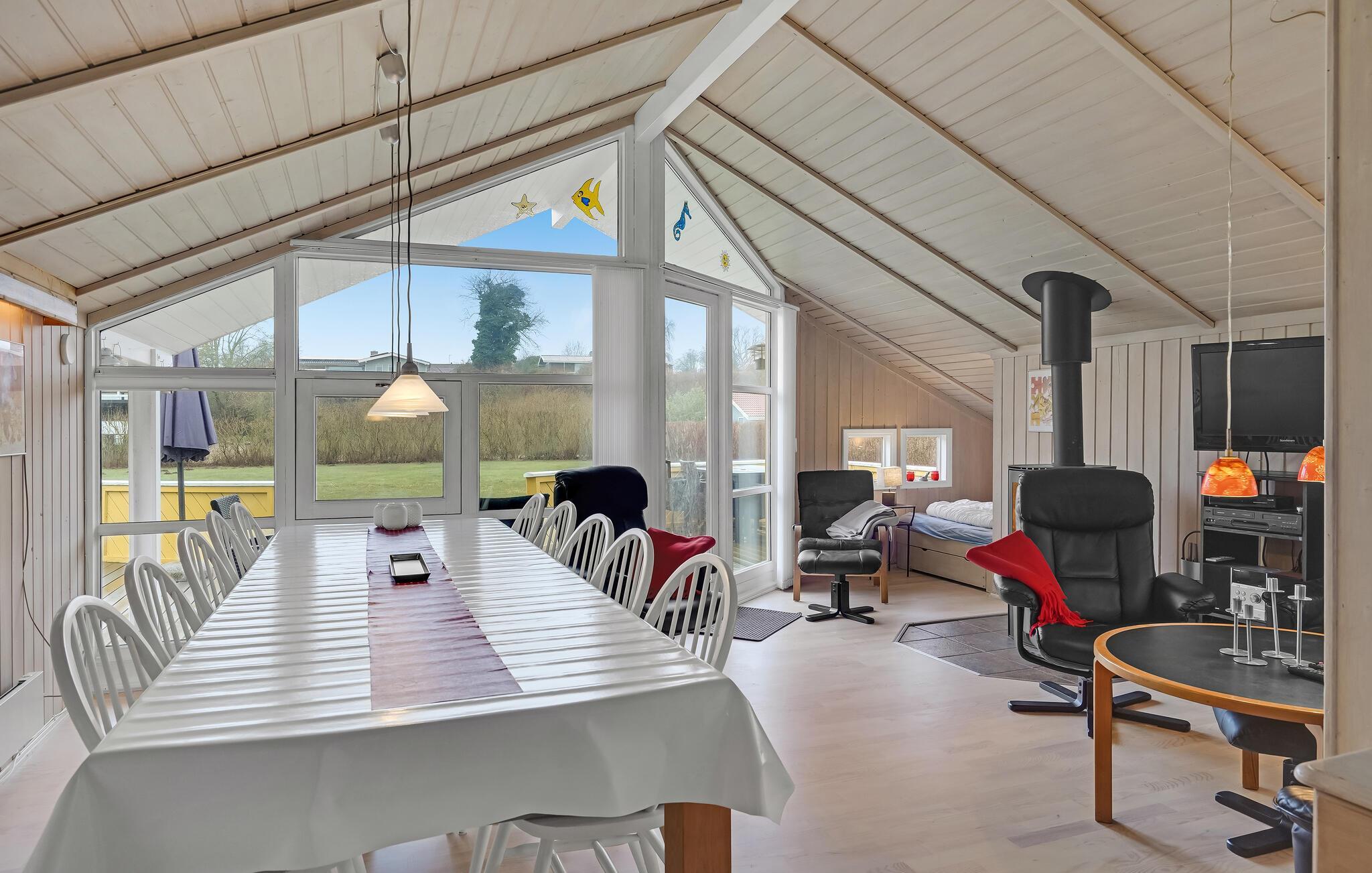 Nach einem aktiven Tag können Sie hier sehr gut abschalten. Im Alkoven im Wohn- und Esszimmer sind zwei der zehn Schlafplätze zu finden. Das Ferienhaus befindet sich nahe einem guten und familienfreundlichen Strand und neben sehr guten Angelmöglichkeiten in der Gegend, finden Sie am Haus unter anderem einen überdachten Ausnehmeplatz.