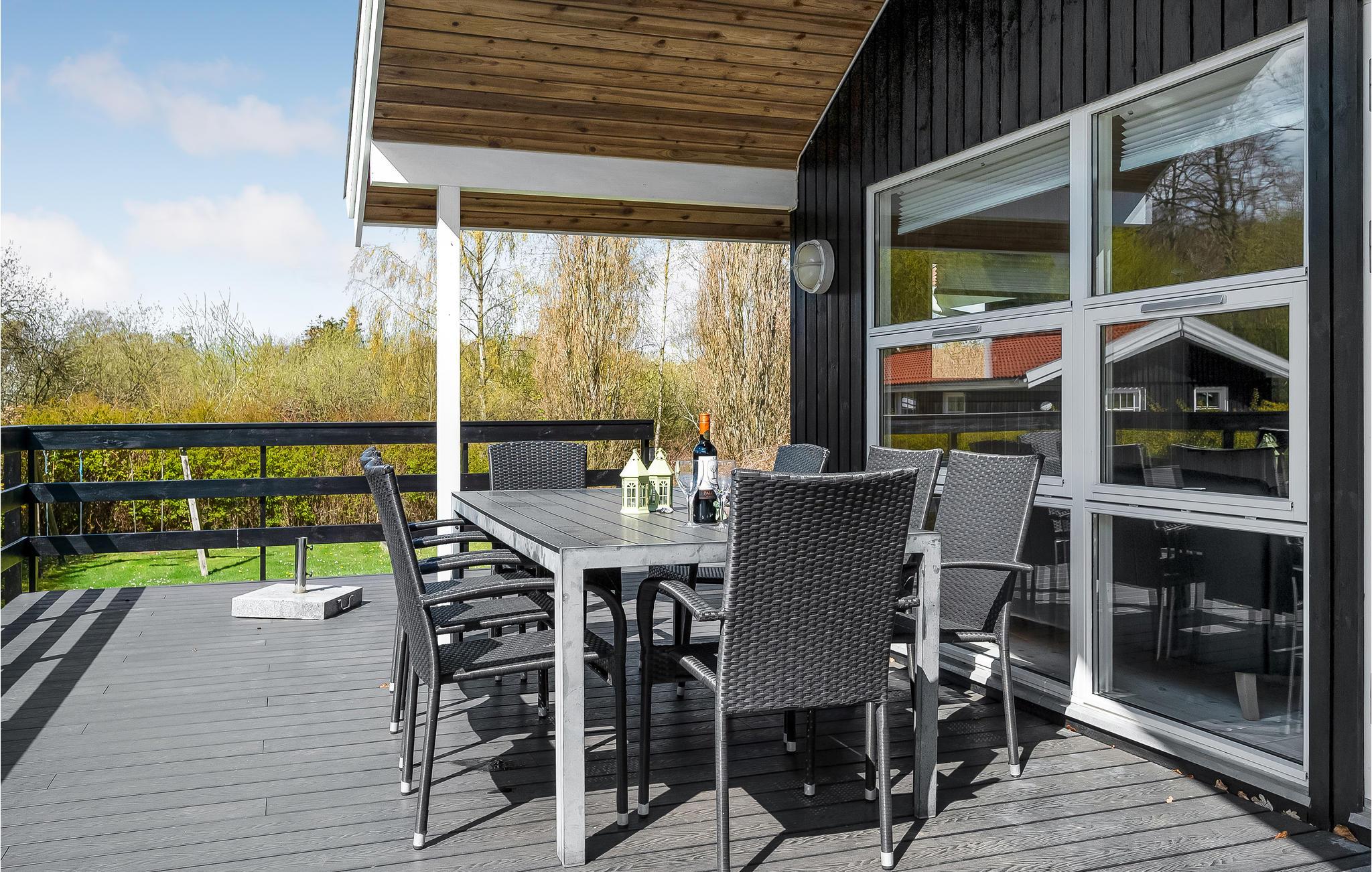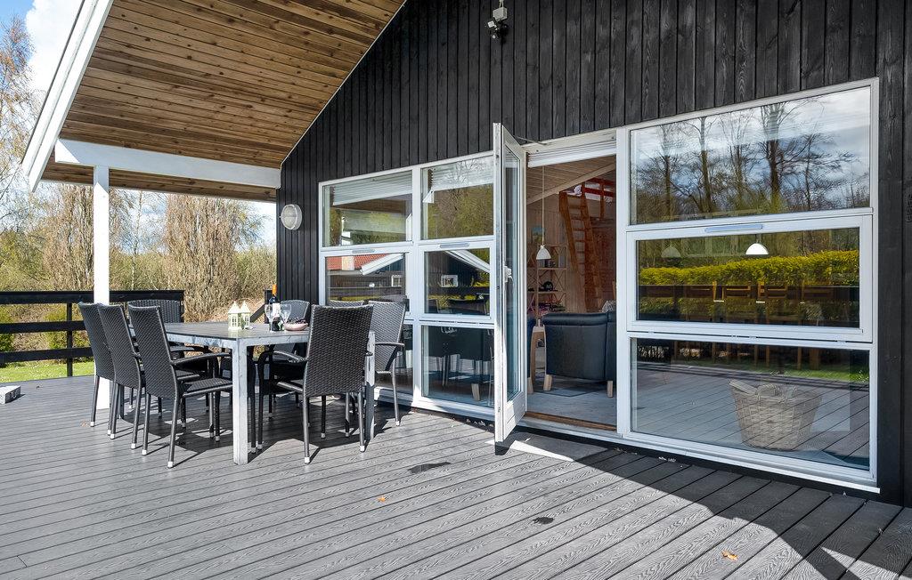 Modernes Holzhaus mit Sauna, Whirlpool und Angelmöglichkeiten nahe Spodsbjerg Havn in Dänemark.