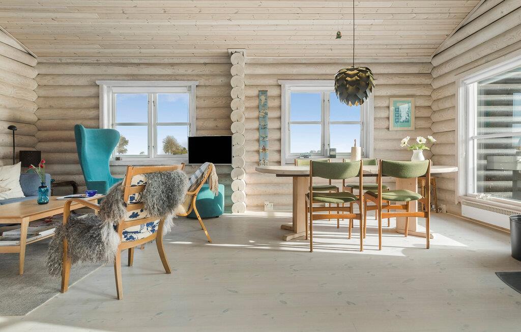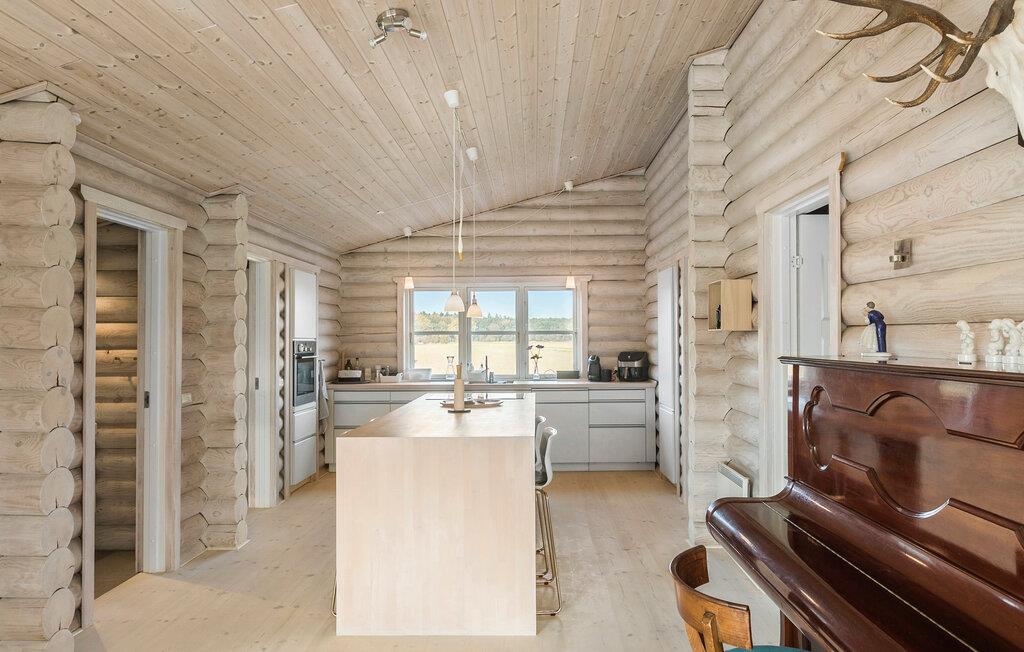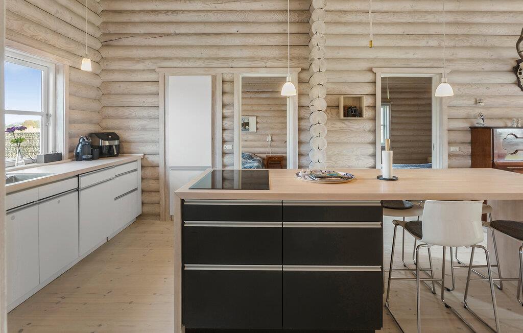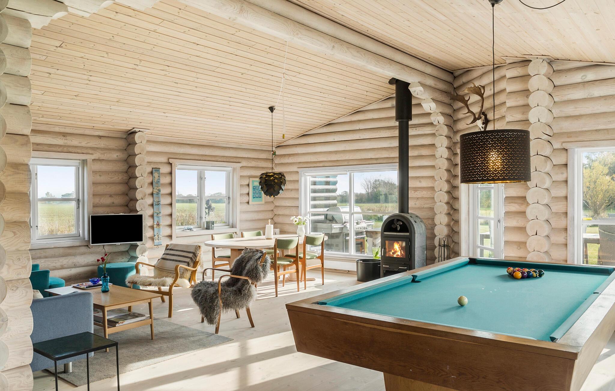 Das Haus bietet alles, was Sie für einen erholsamen Aufenthalt benötigen. Der offene Wohnbereich mit seinem hellen Holzdesign und dem gemütlichen Kamin lädt dazu ein, sich nach allen Regeln der Kunst zu entspannen. Spielen Sie eine Runde Billard oder machen Sie es sich in der einladenden Sitzecke gemütlich. Dank der großen Fenster strömt viel Licht herein, das den Raum noch freundlicher wirken lässt. Nutzen Sie die moderne Küche, um gemeinsam zu kochen. Der große Küchentresen bietet genügend Platz für die Zubereitung von Mahlzeiten, die Sie im Essbereich oder auf der Terrasse genießen können.