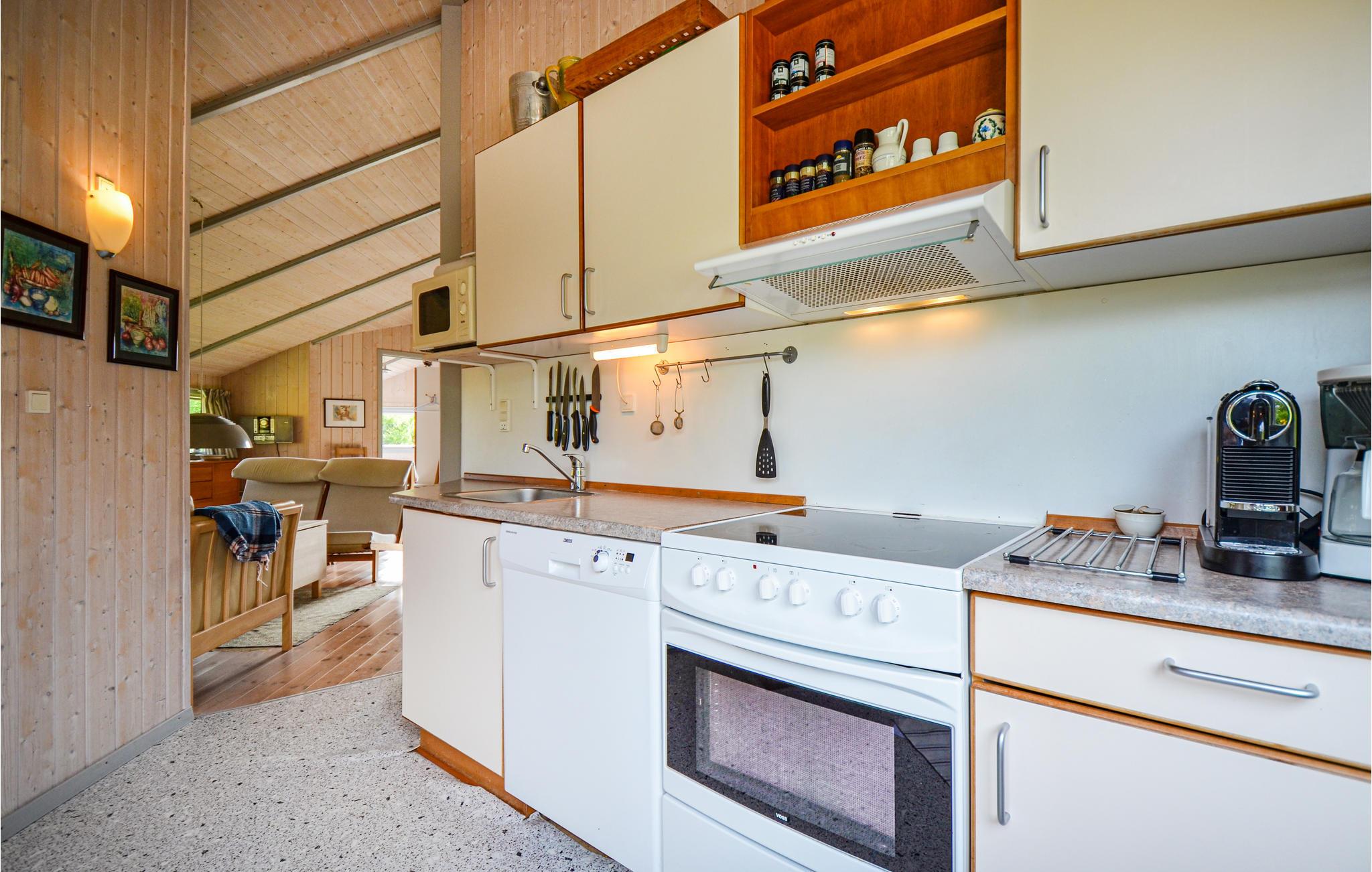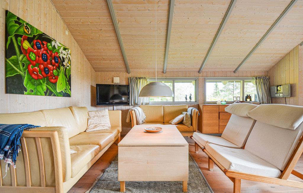Hier können Sie Ferien im gemütlichen Holzhaus für 6 Personen erleben. 3 Schlafzimmer bieten genug Platz und Komfort für alle Gäste. Es befindet sich in der attraktiven, hoch gelegenen und hügeligen Gegend Stødov Bakker. Hier finden Sie viele Aktivitätsmöglichkeiten wie lange Spaziergänge oder Läufe am Steinstrand. Die Gegend bietet eine reiche Tierwelt, manchmal kommen tierische Besucher bis an das Haus heran. Das Domizil ist freundlich und hell eingerichtet und strahlt durch das Holzinterior Gemütlichkeit aus. Nach einem langen Tag im Freien können Sie wunderbar vor dem Kaminofen, im Massage-Whirlpool oder in der heißen Sauna entspannen.