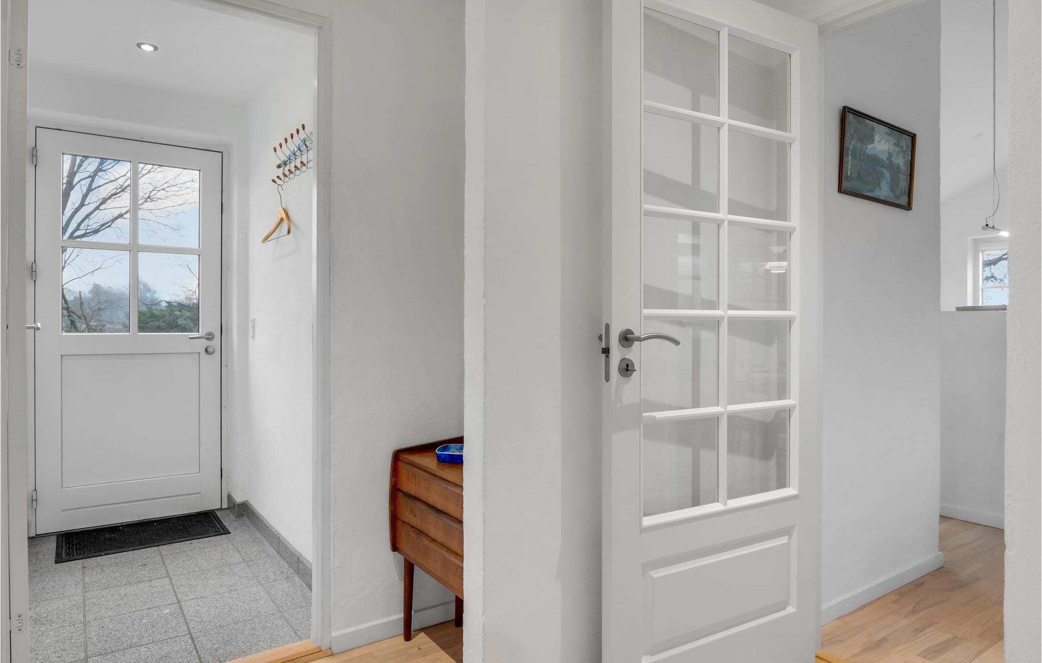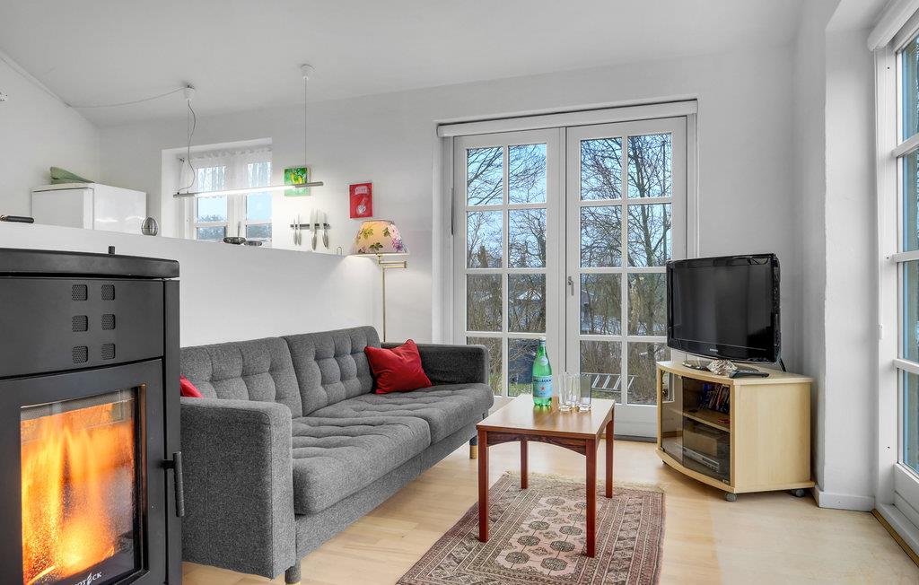 Das Haus hat große Fenster mit Blick in den Garten und eine stilvolle Einrichtung mit einer Mischung aus älteren und modernen Möbeln. Der Wintergarten lädt zu entspannten Stunden mit einem guten Buch an langen Sommerabenden ein. An kühleren Tagen bietet der Kamin im Wohnzimmer angenehme Wärme nach einem langen Spaziergang am Fjord. Für extra Komfort gibt es im ganzen Haus Fußbodenheizung.