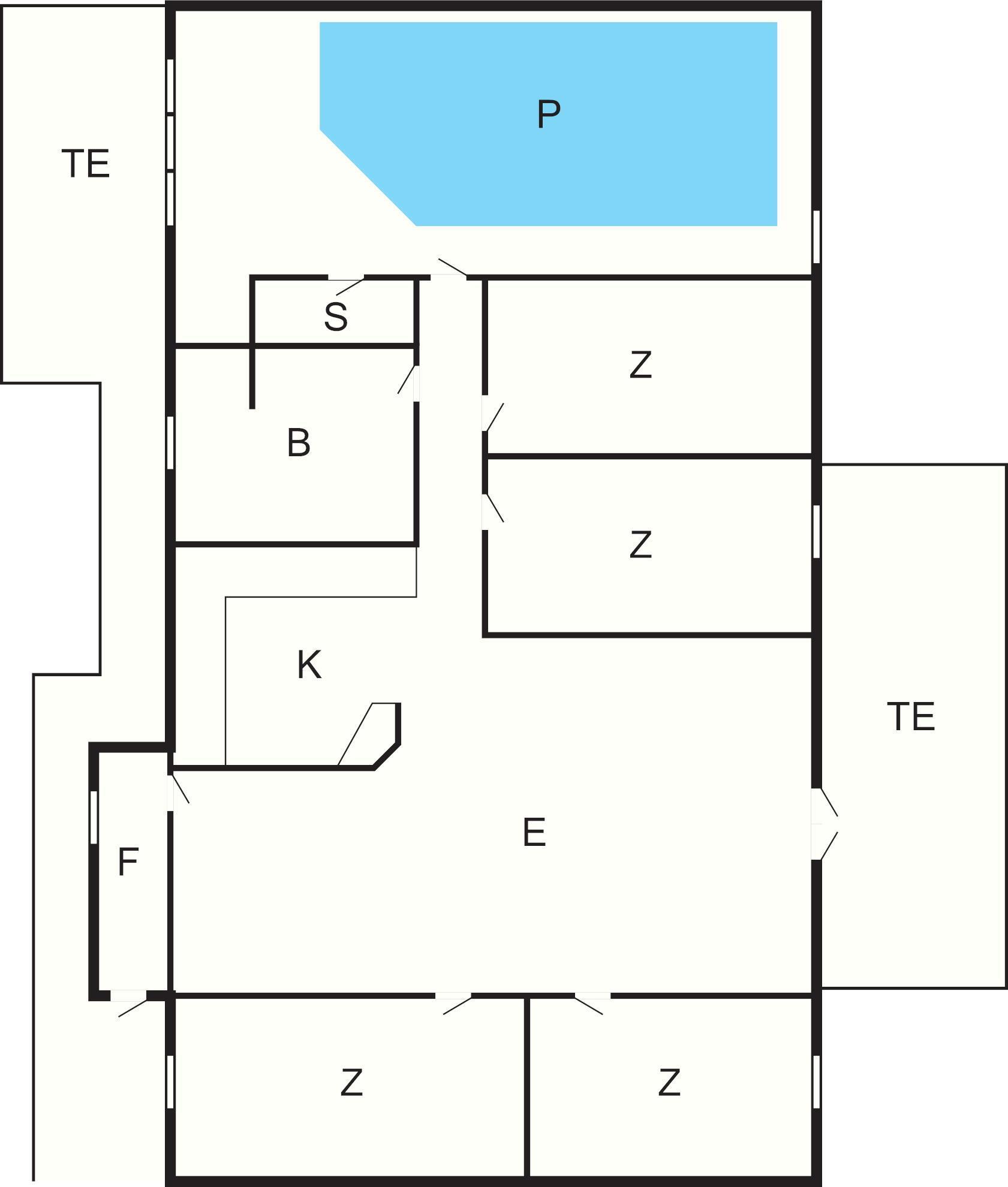 Geräumiges Ferienhaus bei St. Sjørup, mit Pool im Innen- und Badezuber im Außenbereich sowie attraktiver Lage, nur ca. 400 m vom Wasser.
