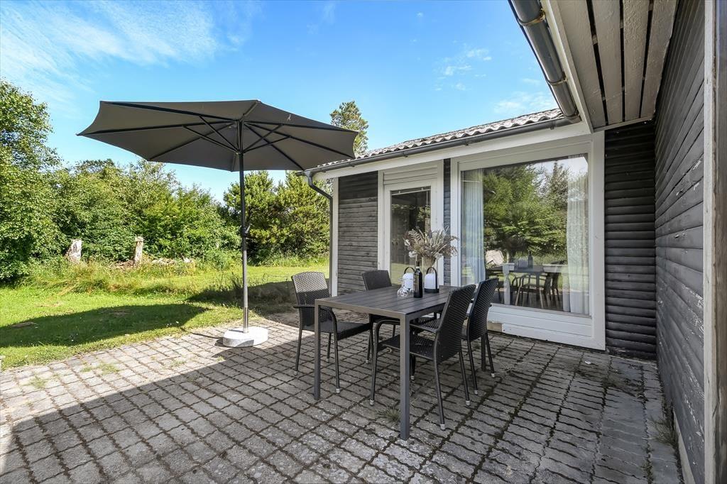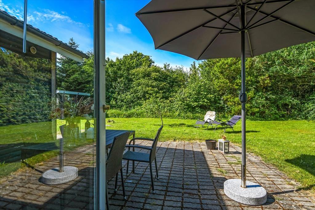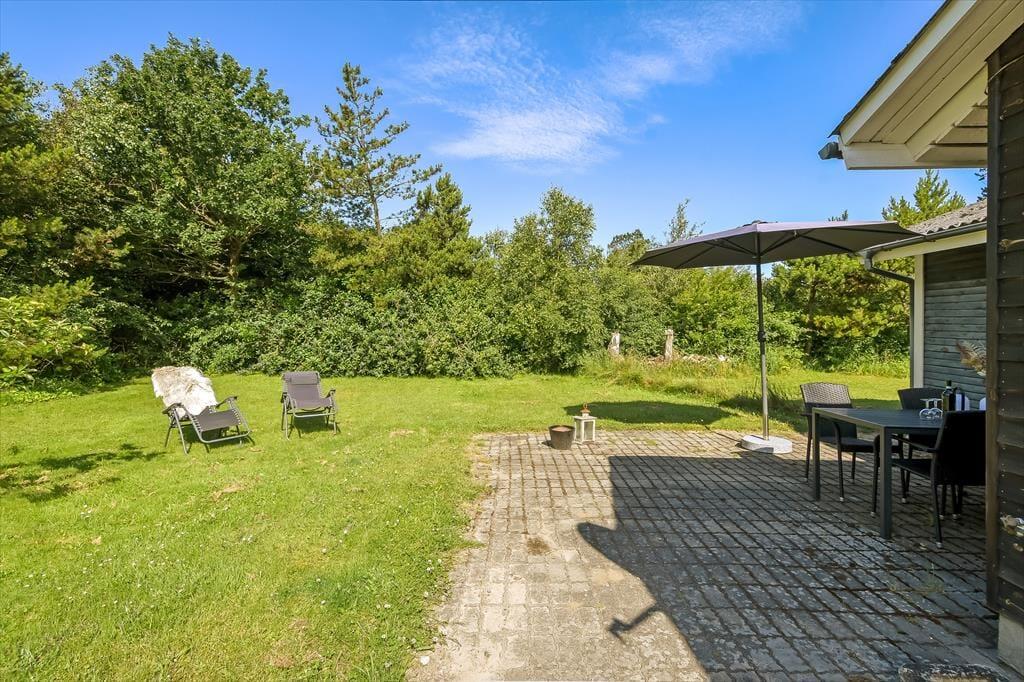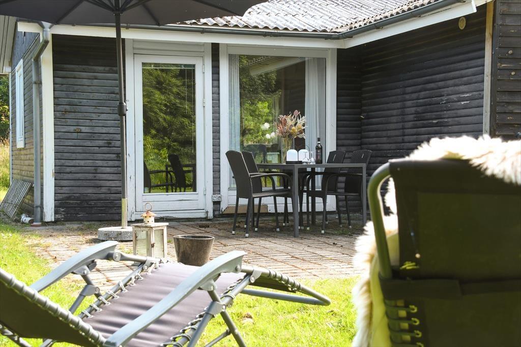 Das Leben im Freien spielt in der Gyvelvej 70 ganz natürlich eine große Rolle. Der eingezäunte Garten hinter dem Haus ist ein großes Plus für Familien mit Kindern und Hundebesitzer, denn hier können Kinder und Hund frei laufen und sicher spielen, während die Erwachsenen im Garten entspannen. Man kann sich leicht sommerliche Tage mit kühlen Getränken in den Gartenmöbeln vorstellen, das Lachen spielender Kinder und einen Hund, der träge im Schatten liegt. Nur etwa 50 Meter vom Ferienhaus entfernt befindet sich ein öffentlicher Spielplatz, der schnell zum Lieblingsort der jüngsten Feriengäste wird – und gleichzeitig den Erwachsenen etwas mehr Freiraum im Tagesprogramm verschafft. Der Garten lädt zu Entspannung, Spiel und gemütlichen Stunden unter freiem Himmel ein, wo das Urlaubsgefühl so richtig aufblühen darf.