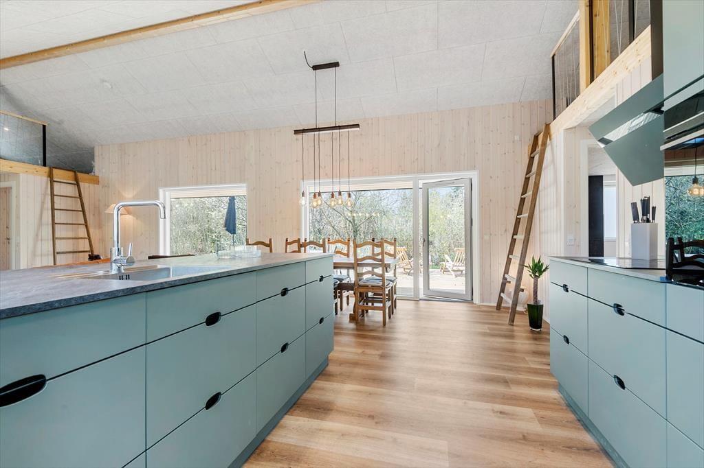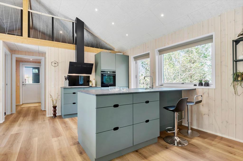 Wenn Sie sich im Urlaub so richtig erholen möchten, sollten Sie sich dieses moderne Ferienhaus genauer anschauen. Hier passt wirklich alles! Die Wohnatmosphäre ist hell und einladend. Das 119 m² große Mietobjekt begrüßt Sie mit drei Schlafräumen und zwei Badezimmern, sodass sich bis zu sechs Urlauber hier gut zurecht finden. Die drei Schlafräume verfügen über je ein komfortables Doppelbett. Vom Wohnraum gelangen Sie zudem hinauf auf zwei Schlafböden, von denen einer mit zusätzlichen Matratzen ausgelegt ist. Beide Badezimmer sind mit einer Dusche und Fußbodenheizung ausgestattet. Das größere der beiden Badezimmer lädt darüber hinaus mit seinem Whirlpool zu erholsamen Stunden ein. Der Aufenthaltsraum mit hohen Decken ist mit einer offenen Küche und gemütlicher Möblierung ausgestattet und besticht mit viel Tageslichteinfall. Zudem erwartet Sie im Haus eine umweltfreundliche, energiesparende Luft-zu-Wasser-Wärmepumpe.