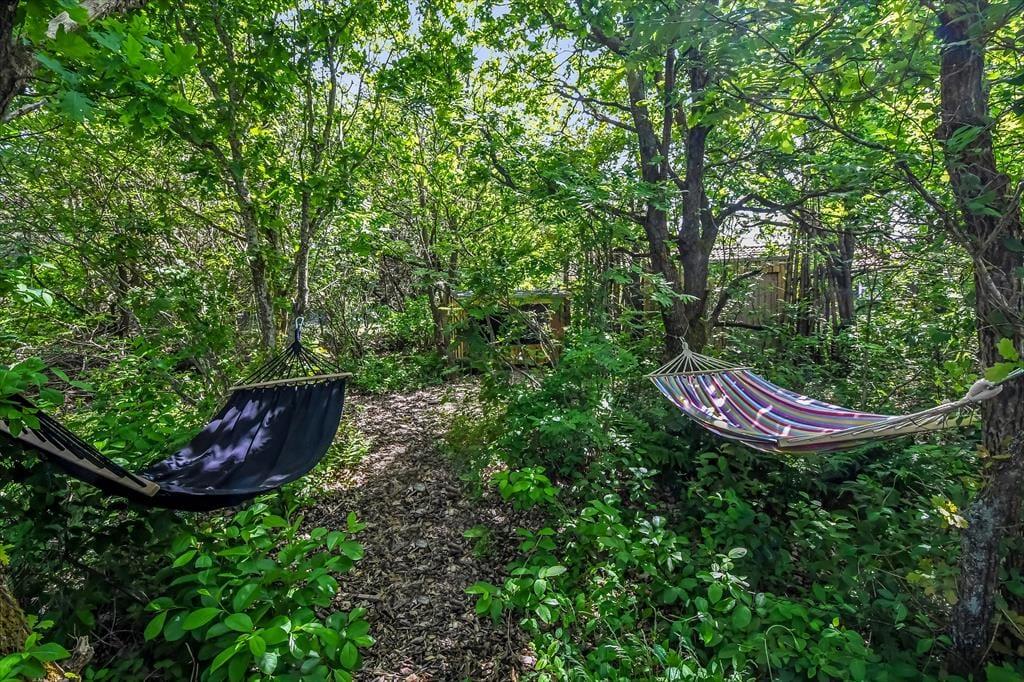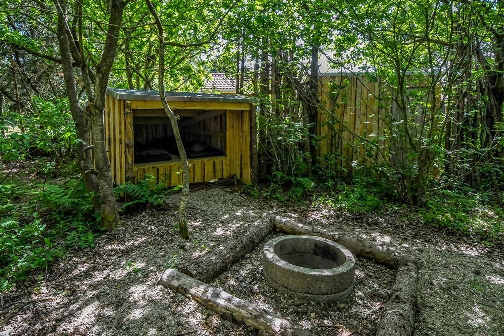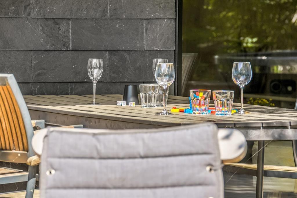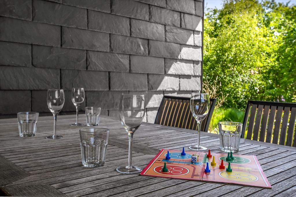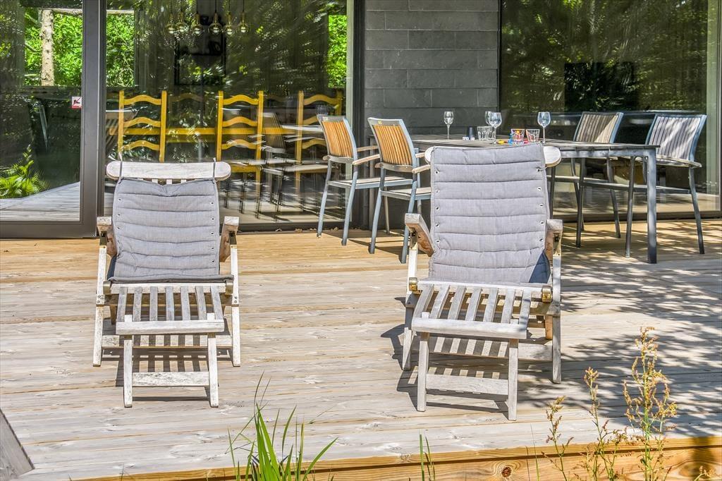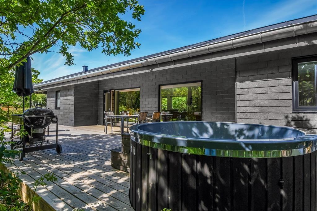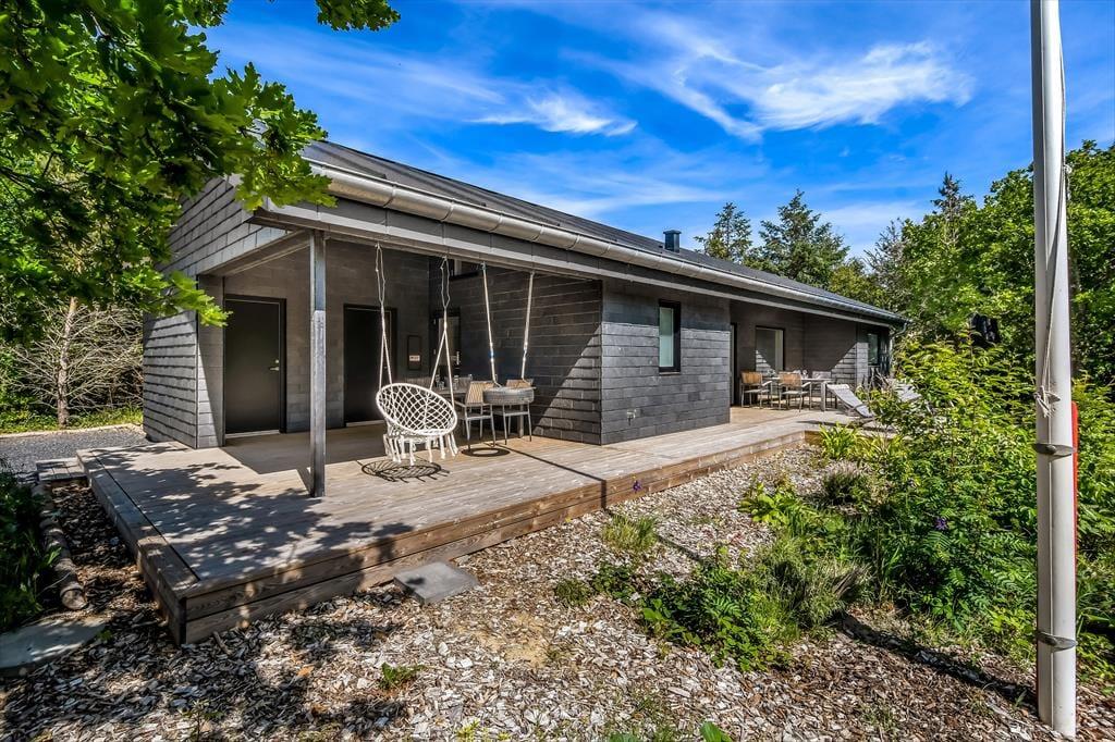 Auf dem 1.193 m großen Naturgrundstück schirmt die Bepflanzung das Haus und die Terrasse angenehm ab und bietet einen üppig grünen Rahmen für Urlaubstunden unter freiem Himmel. Eine teilweise überdachte, schön große Holzterrasse schmiegt sich gen Süden an das Haus. Auf der anderen Seite liegt eine kleinere Terrasse, wodurch Sie zwischen verschiedenen Aufenthaltsplätzen wählen können. Falls Sie sich nicht gerade auf der Terrasse sonnen, entspannen oder grillen möchten, können Sie mit den Kindern zwischen den Bäumen verstecken spielen, sich zu geselligen Runden rund um die Feuerstelle versammeln oder ein Nickerchen in der Hängematte genießen.