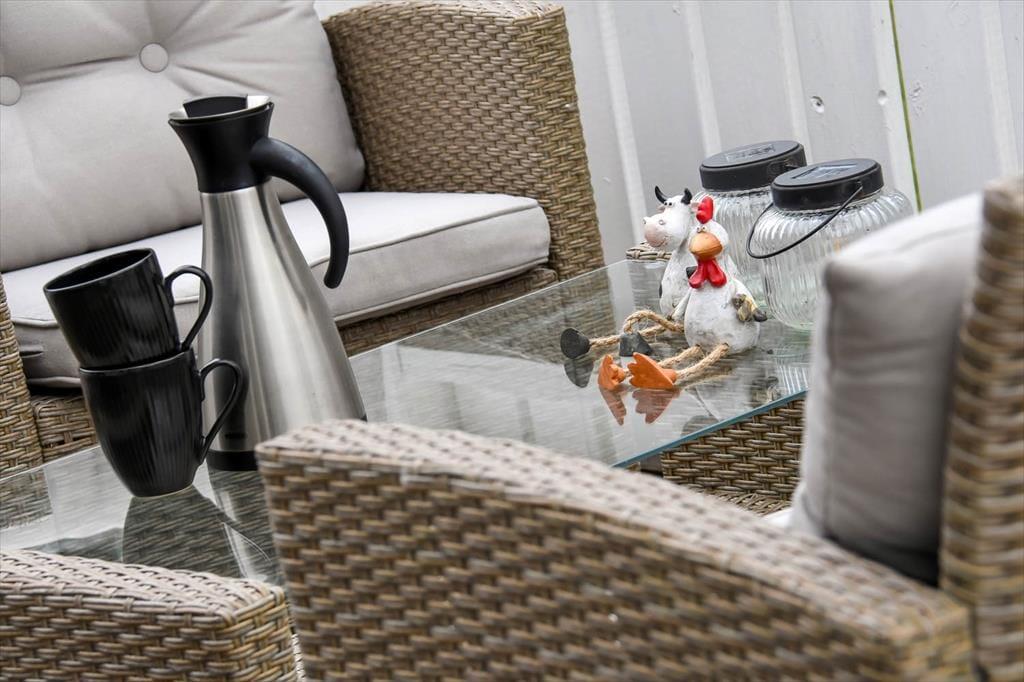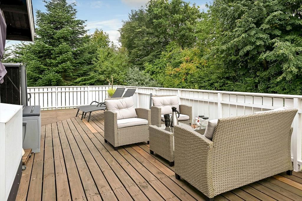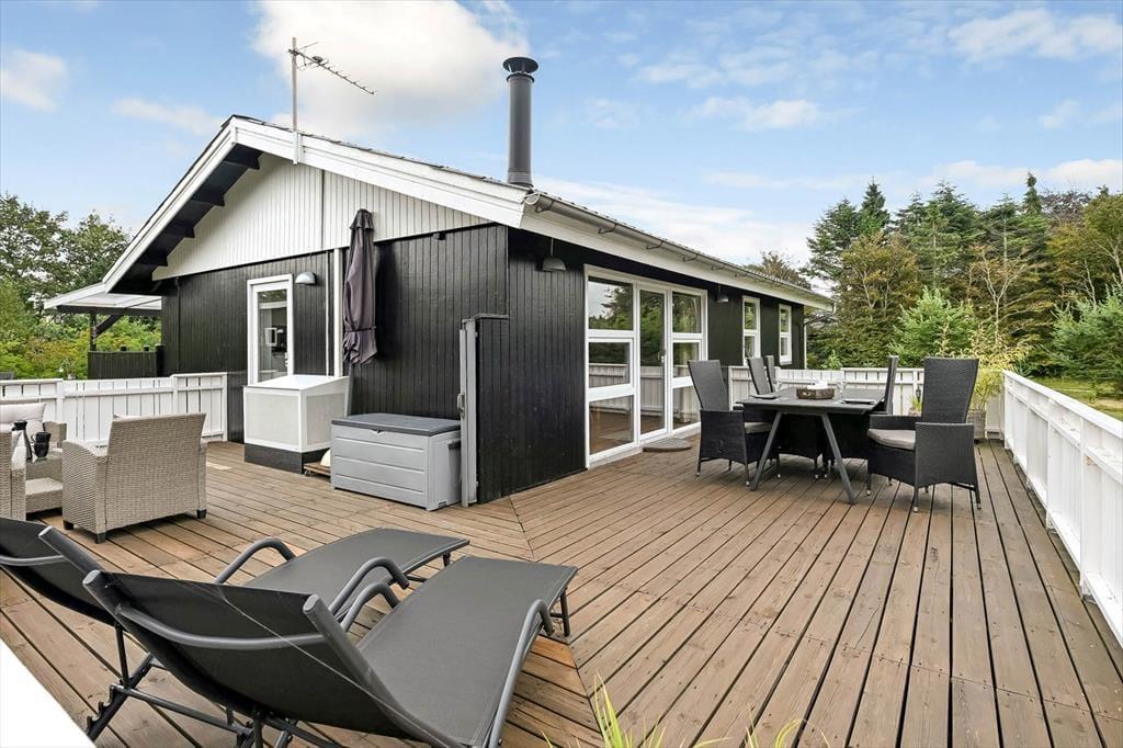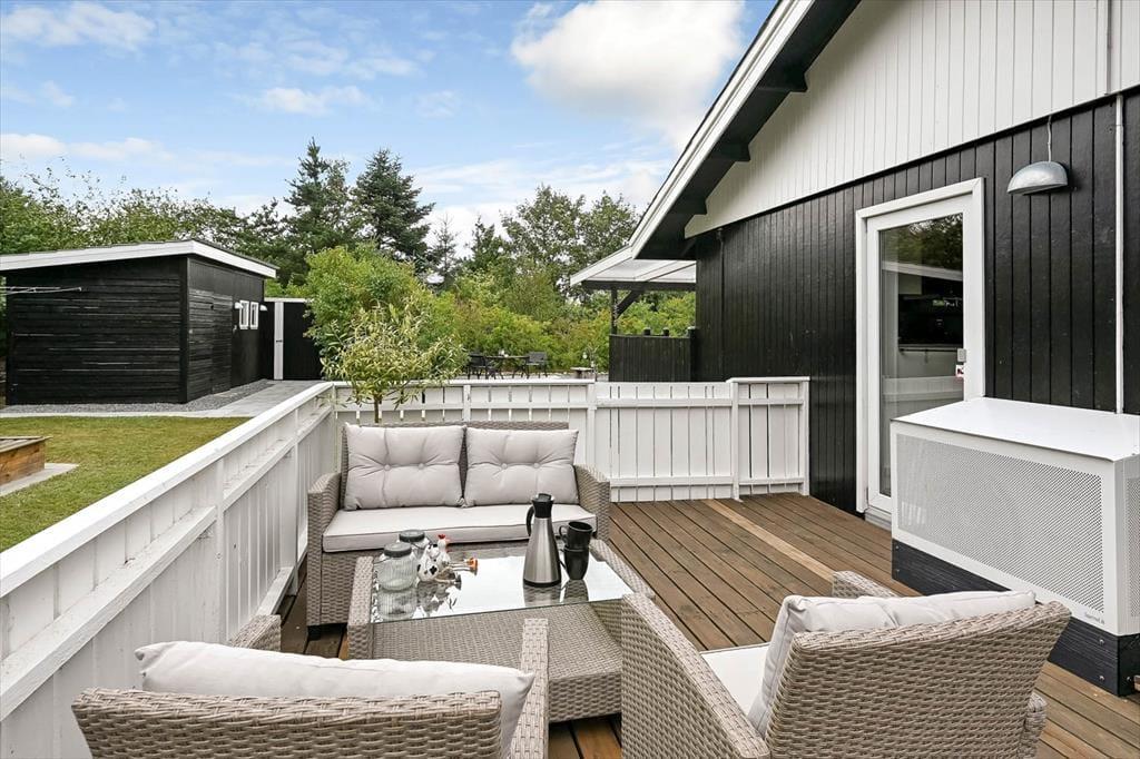 Dein Ferienhausgrundstück ist groß und schön. In Verlängerung des Hauses empfangen dich zwei gute Terrassen. Die eine wurde im Jahr 2024 mit einer neuen Überdachung versehen. Dadurch kann euch selbst ein kleiner Regenschauer nichts anhaben und ihr könnt die langen Abendstunden gut geschützt im Freien verbringen. Falls du lieber unter freiem Himmel sitzt, wirst du die gen Südwesten weisende Terrasse lieben, die einen Großteil des Tages mit viel Sonne verwöhnt wird. Beide Terrassen sind übrigens komplett geschlossen - ein Umstand, den insbesondere Hundebesitzer und Eltern abenteuerlustiger Kleinkinder sehr zu schätzen wissen.
