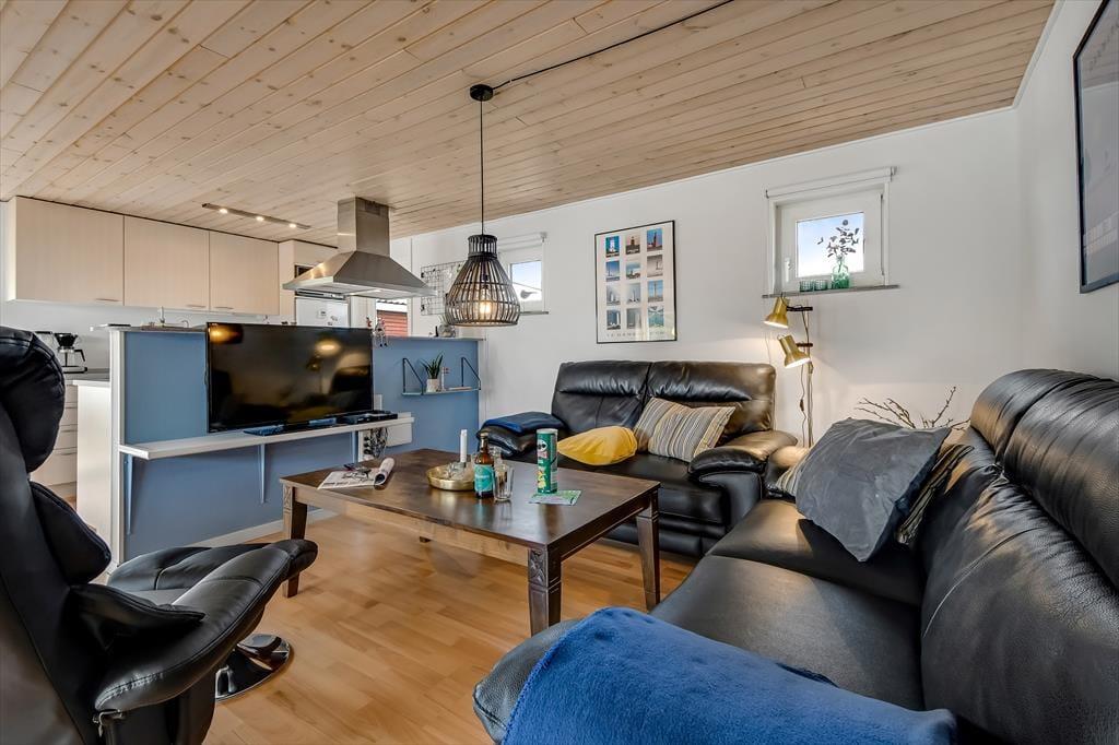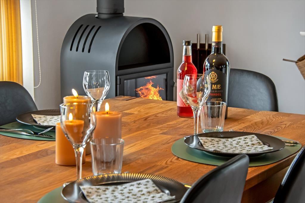 Die gepflegte schwarze Holzfassade deines Ferienhauses lässt erkennen, dass das Urlaubsdomizil derzeit mit liebevoller Hand renoviert wird. Im Jahr 2024 wird das Innere komplett neu gestrichen, sodass du dich auf schöne, einladenden Räumlichkeiten freuen darfst. Die Wohnfläche ist für eine Belegung mit vier Personen zugeschnitten. Zwei gute Schlafräume und ein schönes Badezimmer stehen für dich und deine Lieben bereit. Die Küche fügt sich offen in den Wohnraum ein. Einen Großteil des Tages werdet ihr in diesem Raum gemeinsam verbringen. An kühlen Tagen, an denen ihr unterhaltsame Gesellschaftsspiele spielt, gemeinsam köstliche Mahlzeiten kreiert und spannende Filme vom Sofa aus anschaut, sorgt der Kaminofen für behagliche Wärme und ein Maximum an Ferienhausatmosphäre.