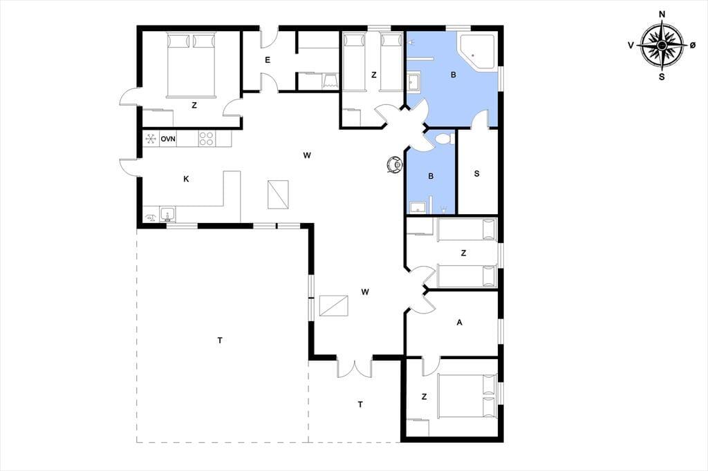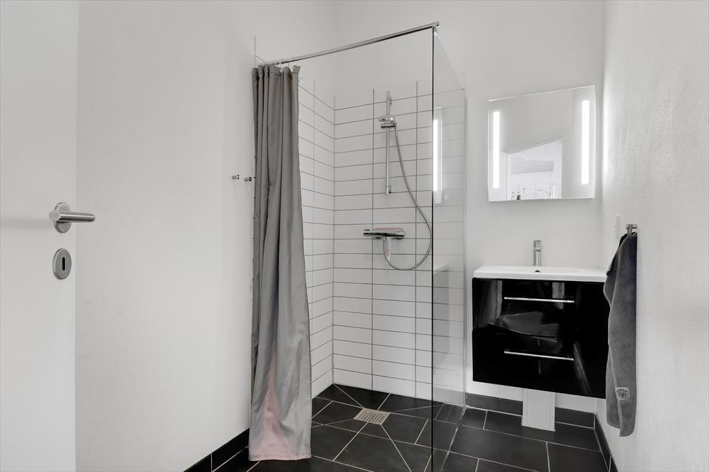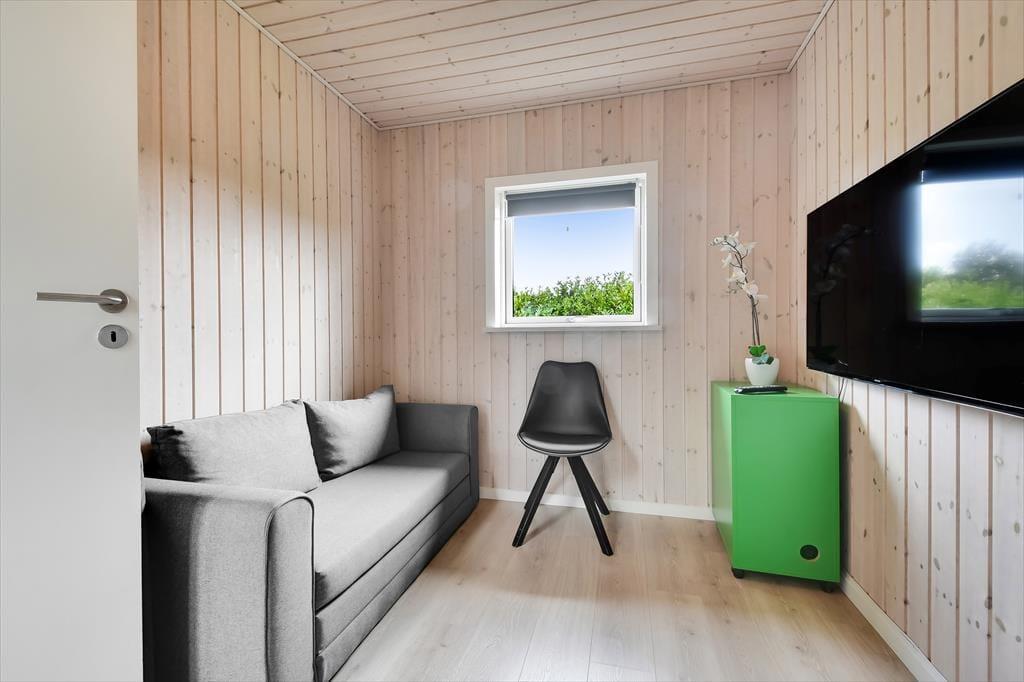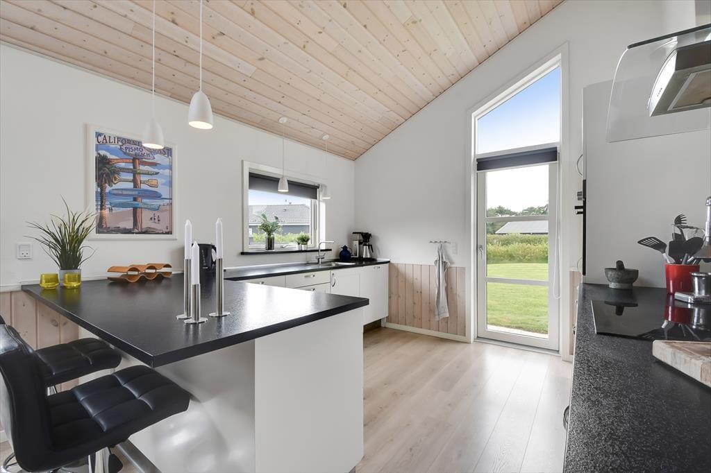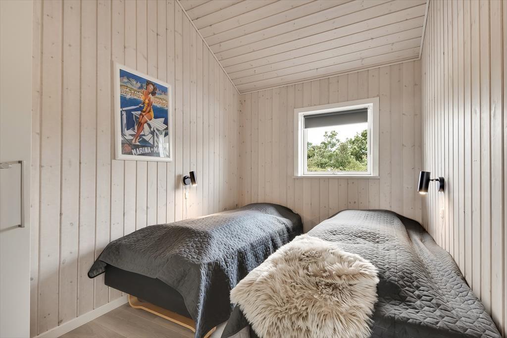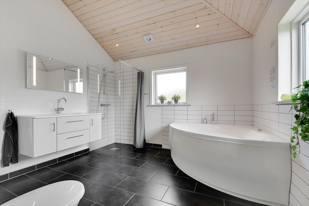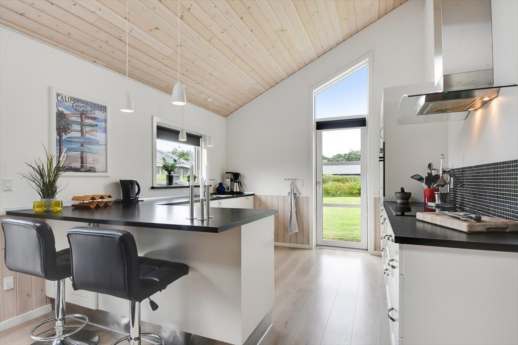 Schon von außen sieht man, dass hier im Rørkrogen 10 alles in bester Ordnung ist. Das Ferienhaus präsentiert sich mit einer eleganten dunklen Fassade mit weißen Details. Es herrscht eine helle Atmosphäre im Haus. Im Wohnzimmer gibt es eine offene Decke bis zum Giebel mit Dachfenstern und großen Fenstern, die eine schöne Verbindung zu den Außenbereichen schaffen. Die offene Küche bietet viel Platz, sodass mehrere Personen problemlos gemeinsam kochen können. Oder du setzt dich einfach auf einen der Barhocker und leistest dem Koch Gesellschaft. Mit einem Kaminofen und einer komfortablen Sofaecke lädt der Wohnbereich zu gemütlichen Stunden ein. Wenn du dich komplett entspannen möchtest, kannst du die Sauna nutzen oder eine entspannte Pause im Whirlpool einlegen. Den Spabereich findest du im größeren der zwei zentral gelegenen Badezimmer. Es gibt vier Schlafzimmer, daher ist die Raumaufteilung ideal für acht Personen.