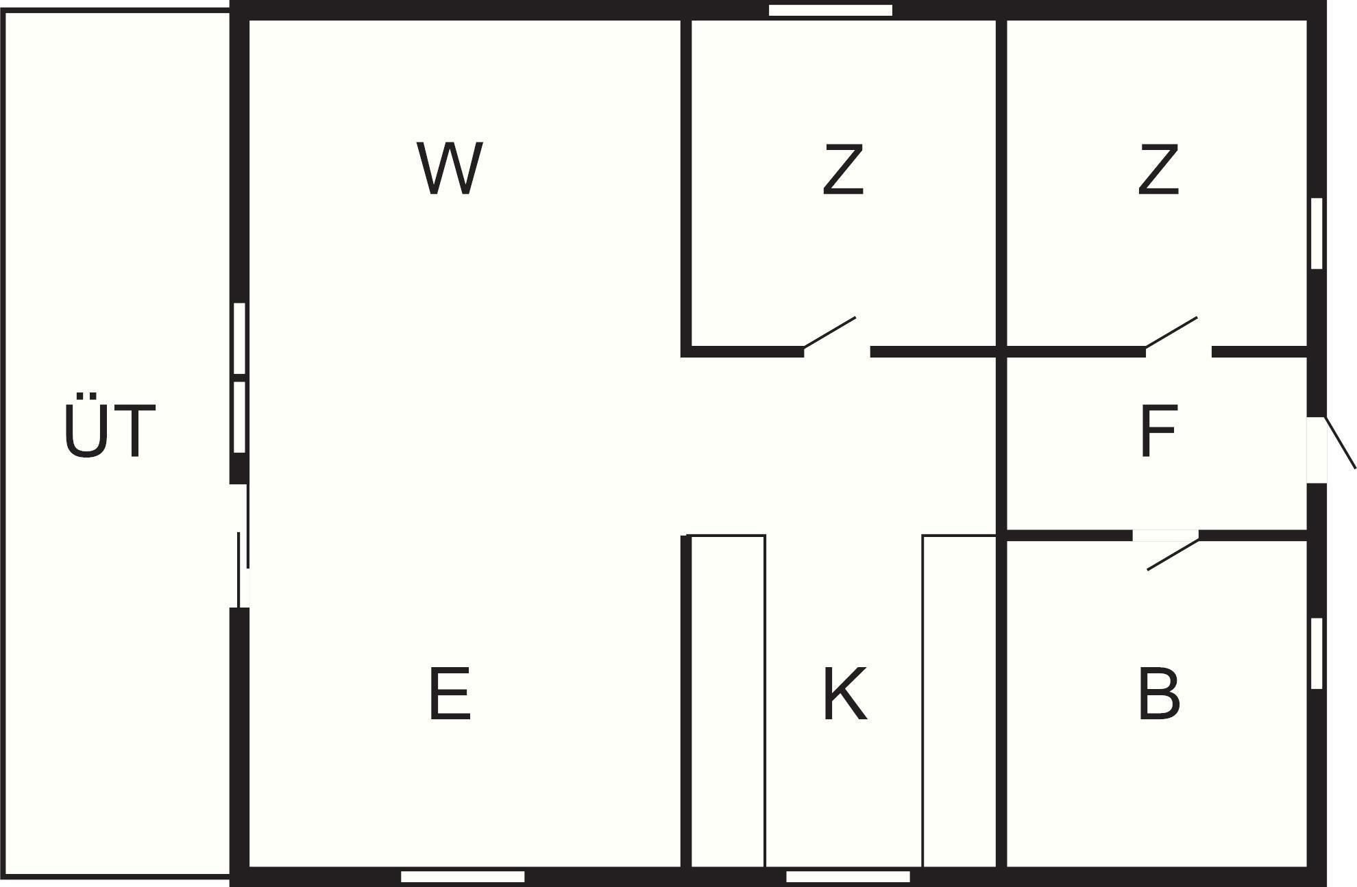 Off. Küche: E-Herd, Kühlschr. m. Gefrierfach, Mikrow., Abzugsh., Kaffeem.
