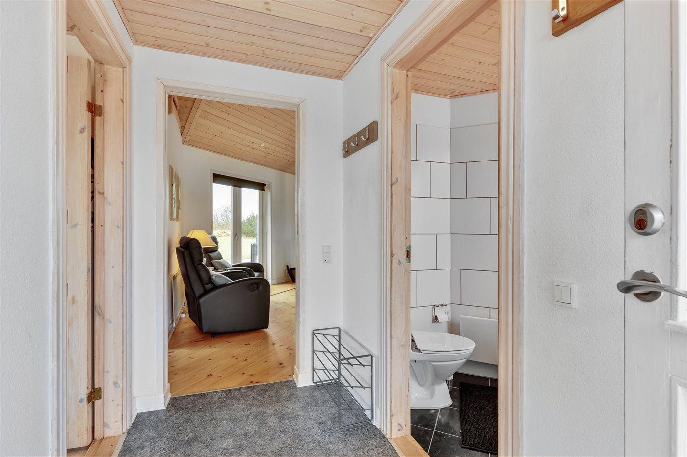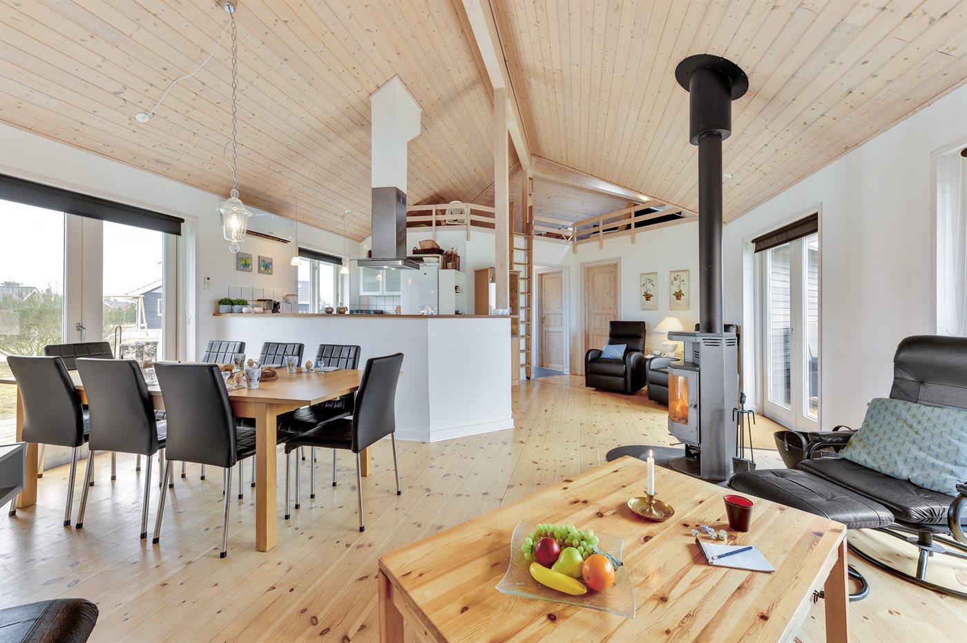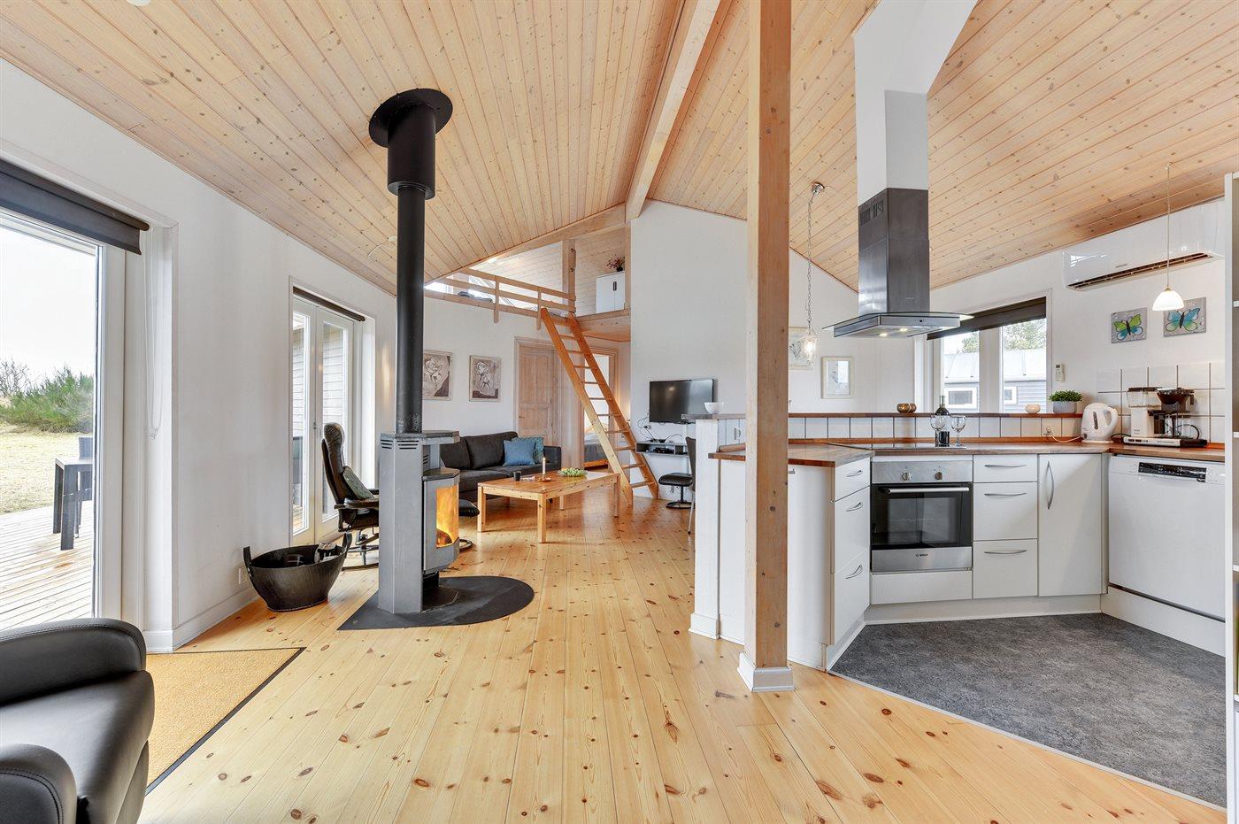 Dieses schöne und gepflegte Ferienhaus liegt auf einem teilweise abgeschirmten und ungestörten Grundstück am Rande eines Ferienhausgebiets – dicht am Ringkøbing Fjord. Das naturschöne Gebiet lädt zu langen Spaziergängen ein und es gibt gute Angelmöglichkeiten. Übrigens; Die 2 Schlafplätze auf Matratzen befinden sich im offenen Obergeschoss.