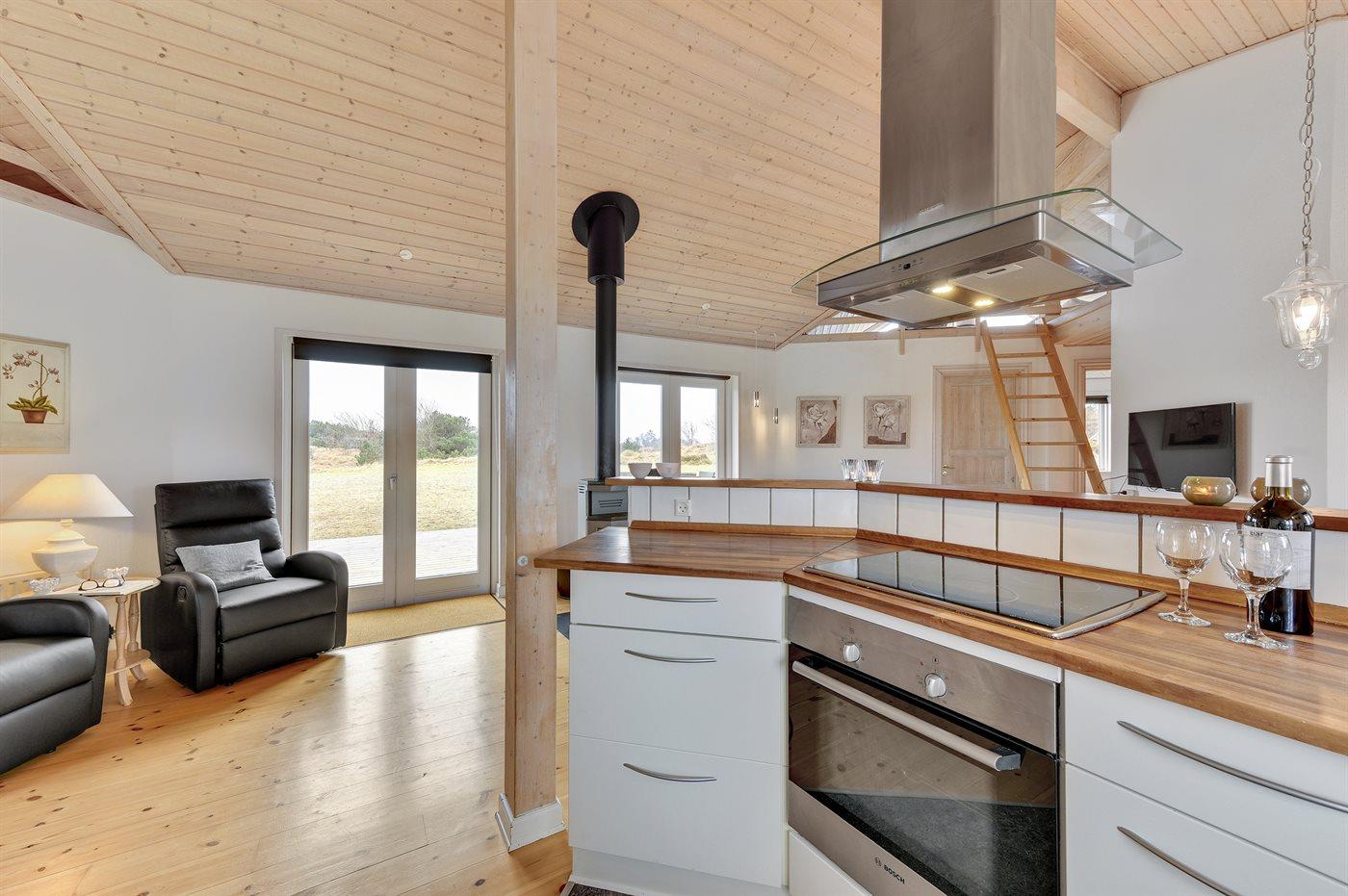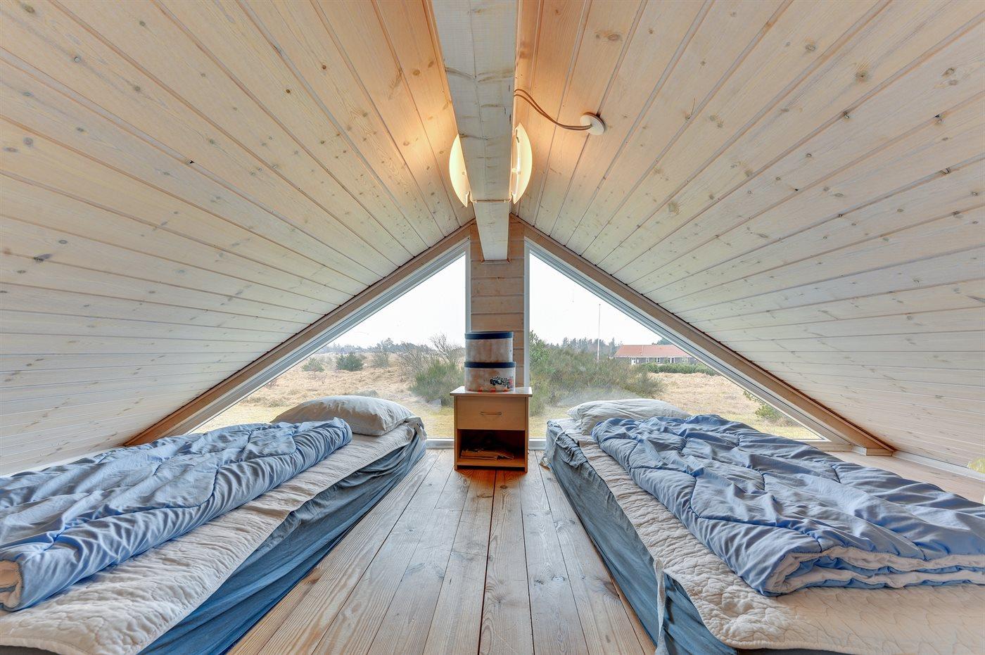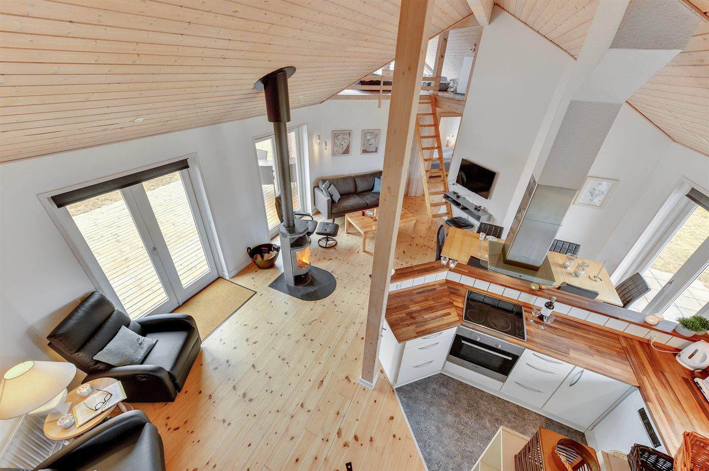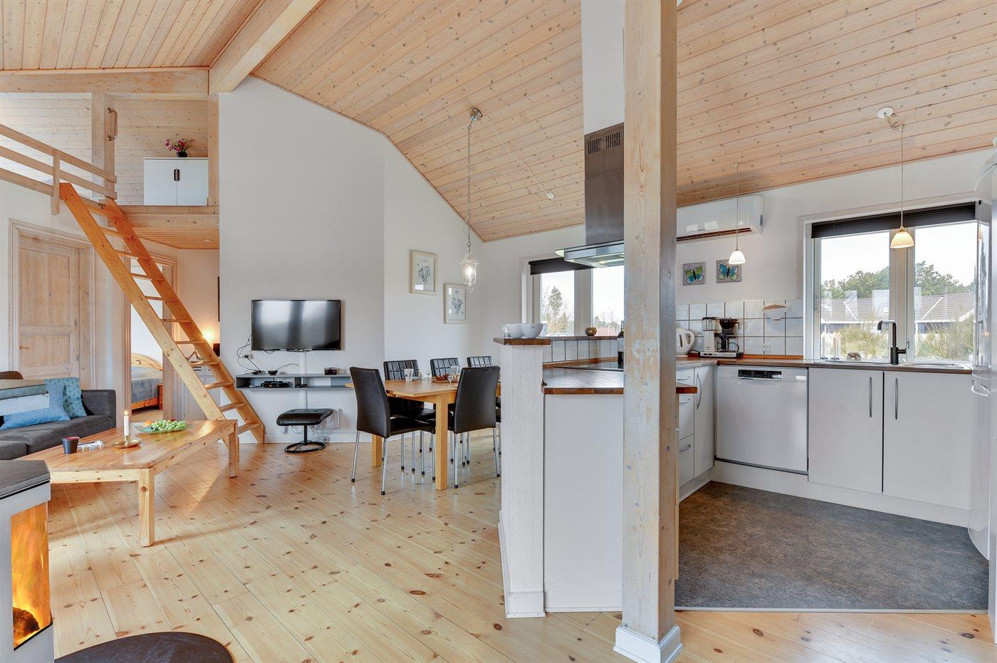 Dieses schöne und gepflegte Ferienhaus liegt auf einem teilweise abgeschirmten und ungestörten Grundstück am Rande eines Ferienhausgebiets – dicht am Ringkøbing Fjord. Das naturschöne Gebiet lädt zu langen Spaziergängen ein und es gibt gute Angelmöglichkeiten. Übrigens; Die 2 Schlafplätze auf Matratzen befinden sich im offenen Obergeschoss.