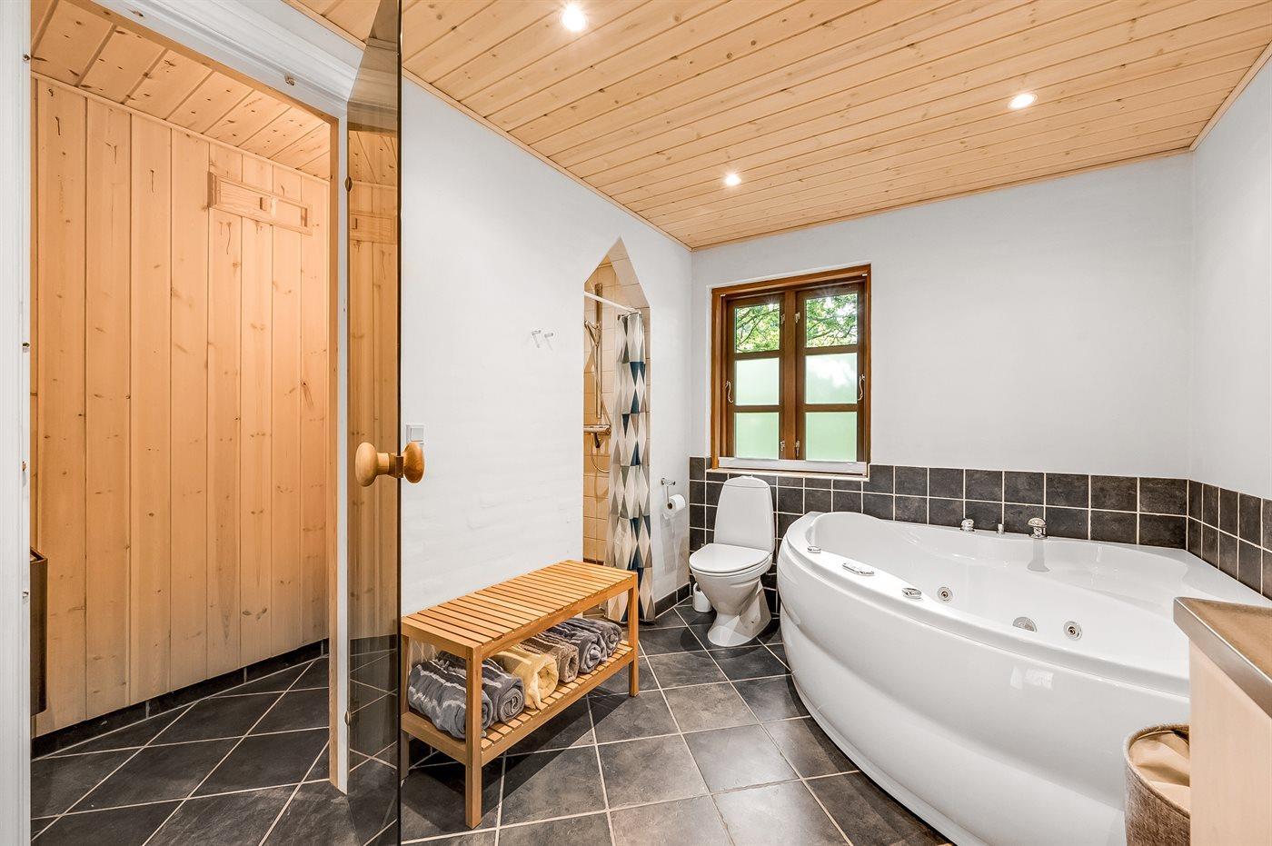 Es gibt 1 Badezimmer mit Duschnische und 2 Toiletten, davon 1 Gästetoilette. Fußbodenheizung in 1 Badezimmer. Es steht eine Sauna zur Verfügung in der Sie sich so richtig entspannen können.