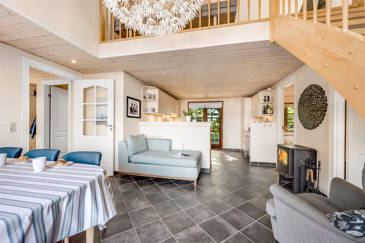 Das Ferienhaus eignet sich für 8 Personen sowie 1 Kleinkind bis zu 3 Jahren. Die Ferienunterkunft hat eine Wohnfläche von 136 m², ist 2-stöckig, und wurde 2006 gebaut. Es ist erlaubt 2 Haustiere mitzubringen. Die Ferienunterkunft ist mit einer energiefreundlichen Luft-Luft-Wärmepumpe ausgestattet. Die Ferienunterkunft ist mit Waschmaschine ausgestattet. Wäschetrockner. Tiefkühlmöglichkeit mit 100 Liter Nutzinhalt. Es gibt außerdem einen Kaminofen. Für die jüngsten Feriengäste ist 1 Kinderhochstuhl vorhanden.