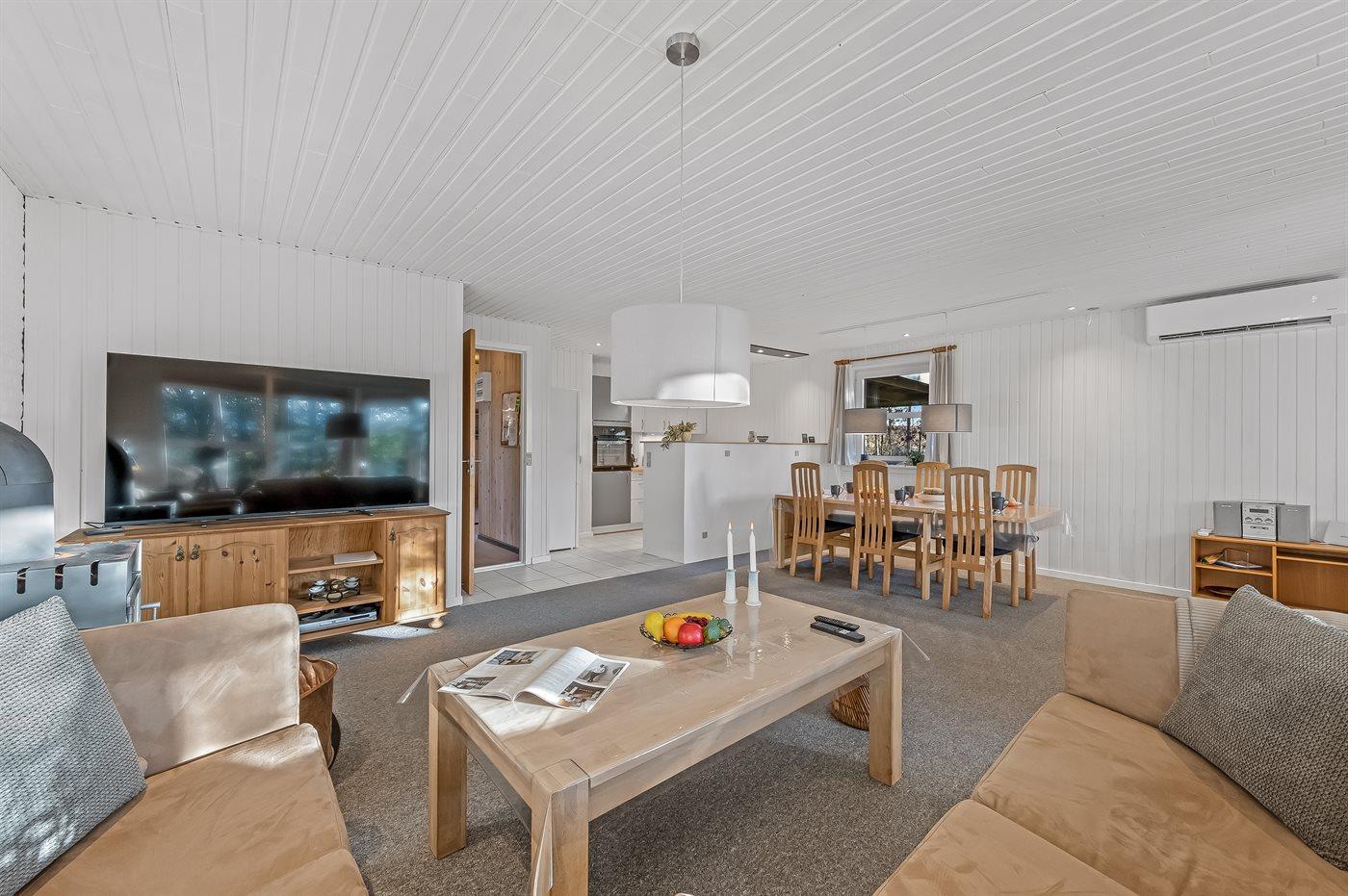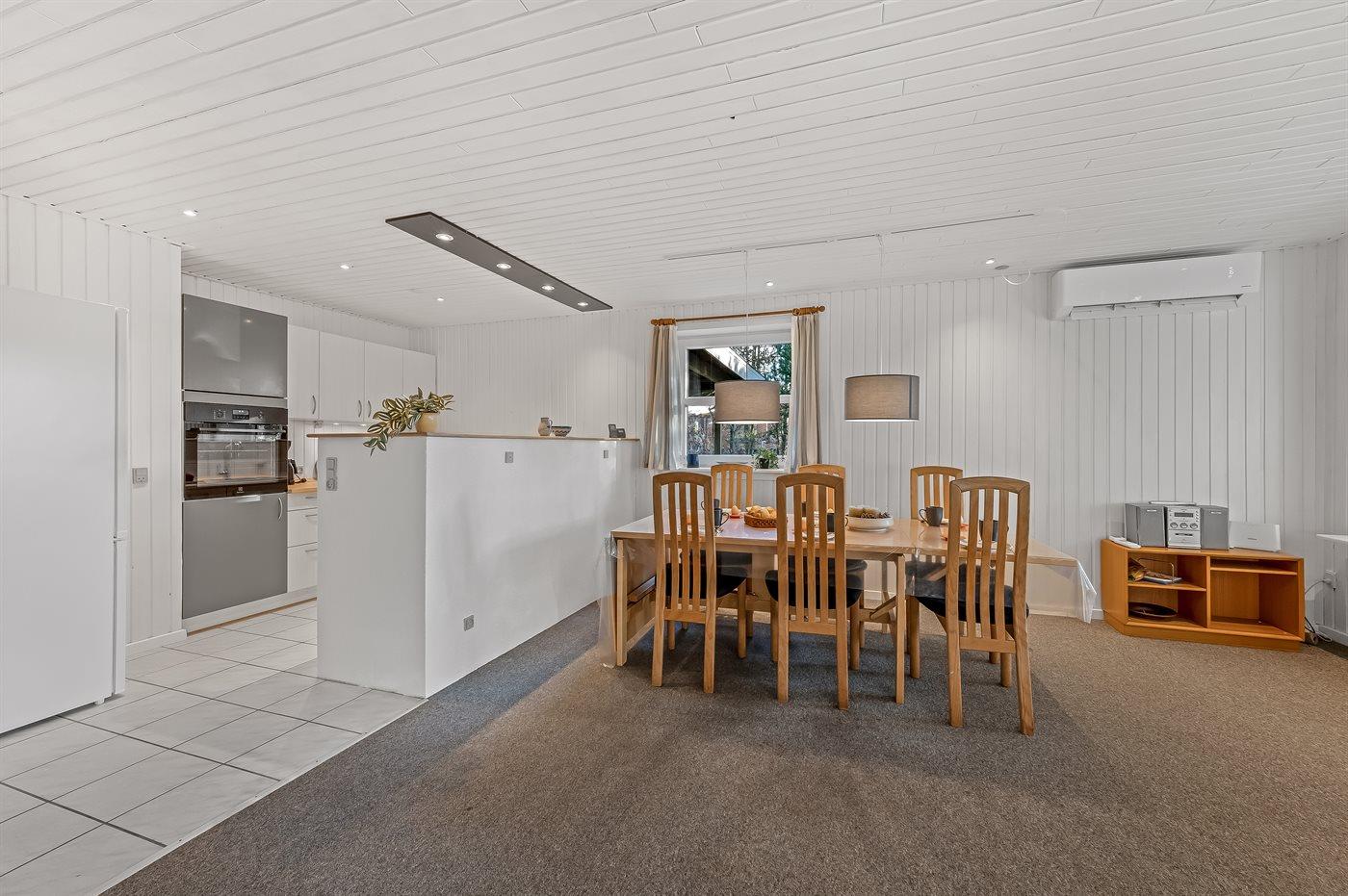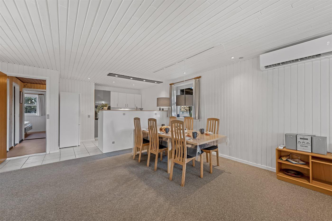 Das Ferienhaus eignet sich für 6 Personen. Die Ferienunterkunft hat eine Wohnfläche von 93 m² und wurde 1974 gebaut. 2025 wurde die Ferienunterkunft renoviert. Es ist erlaubt 2 Haustiere mitzubringen. In der Ferienunterkunft ist eine energiesparende Luft zu Luft Wärmepumpe installiert. Tiefkühlmöglichkeit mit 40 Liter Nutzinhalt. Es gibt außerdem einen Kaminofen.