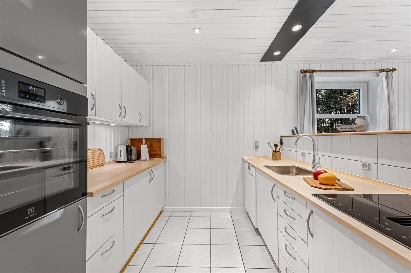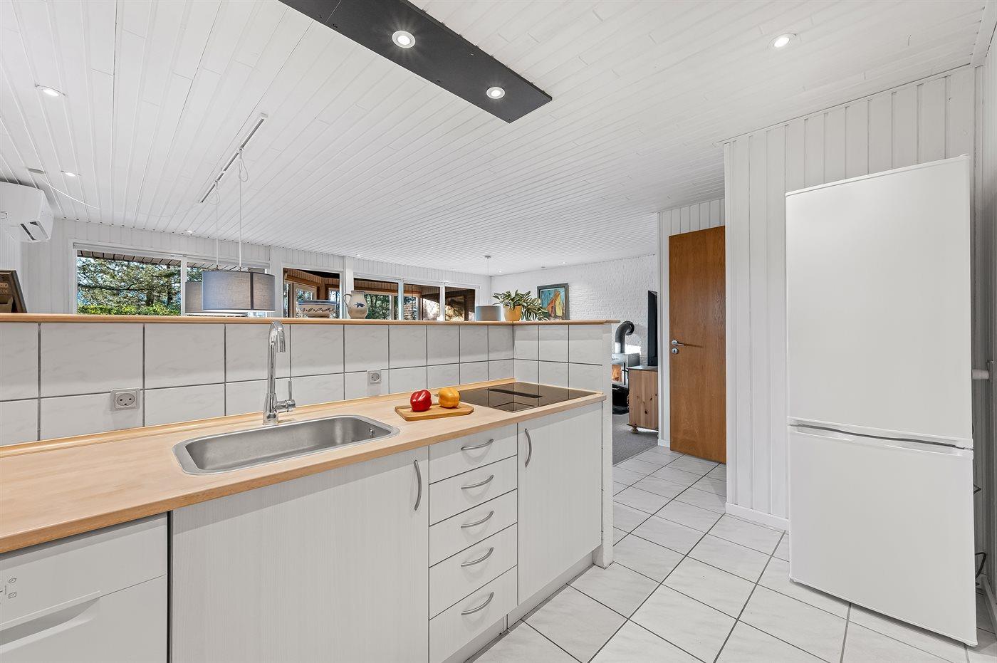 Die Küche ist mit Kühlschrank ausgestattet. Außerdem gibt es 4 Induktions-Kochzonen, Umluftofen, Mikrowelle sowie Geschirrspüler.