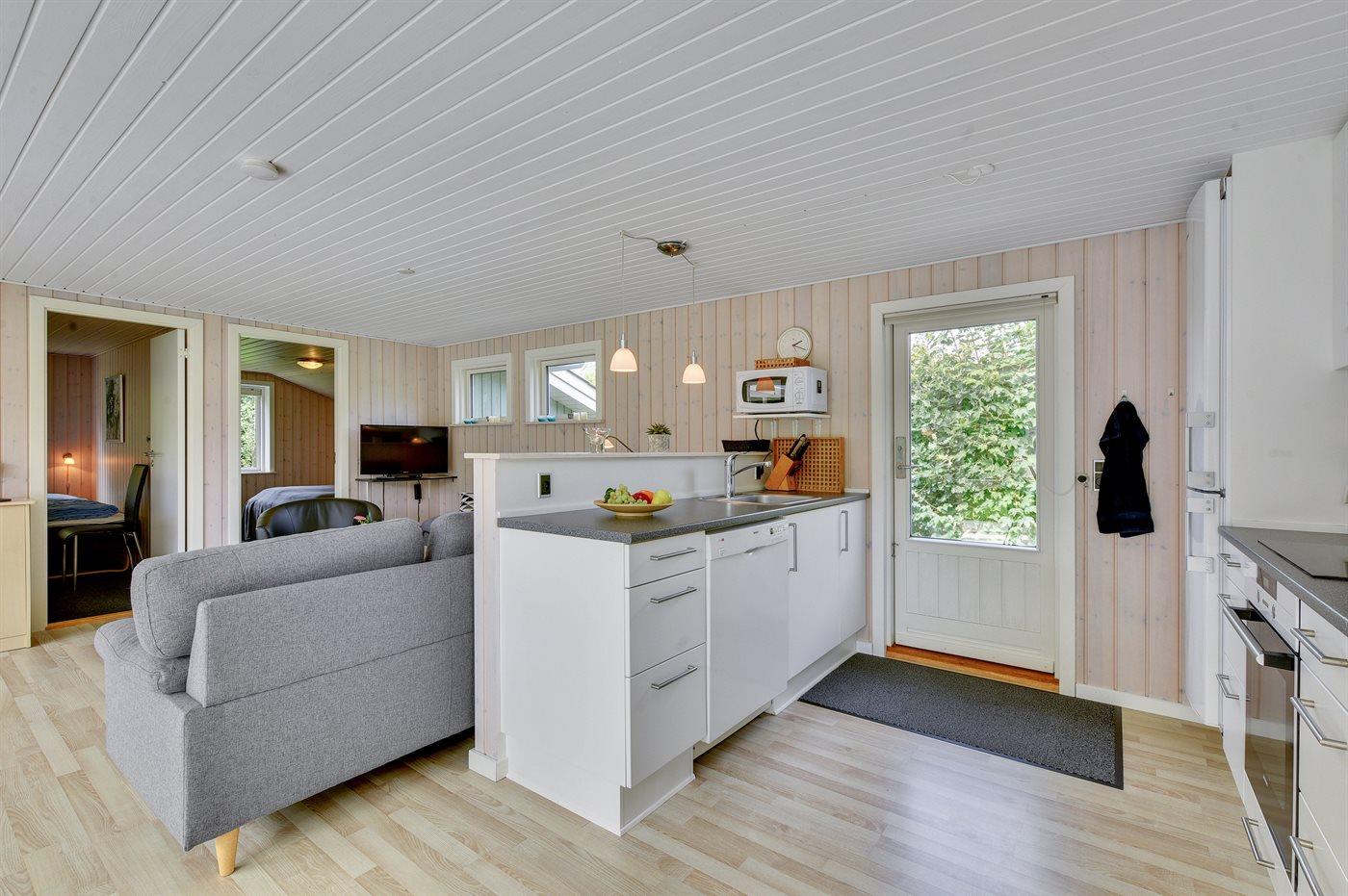 Die Ferienunterkunft liegt auf einem 1200 m² großen Naturgrundstück. Die Entfernung zum Fjord beträgt 400 m. Die nächste Einkaufsmöglichkeit liegt 1000 m entfernt. Es steht ein 50 m² Terrassenareal zur Verfügung. Außerdem gibt es 18 m² überdachte Terrasse. Geräteraum. Schaukel. Sandkasten. Es steht ein Grill zur Verfügung. Parkplatz auf dem Grundstück.