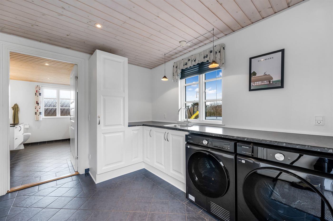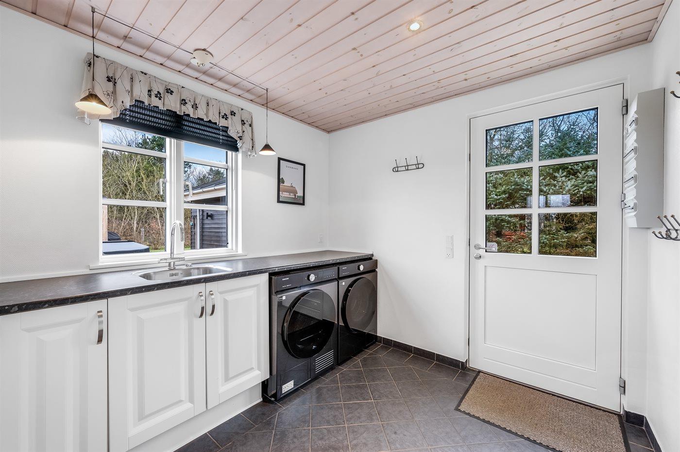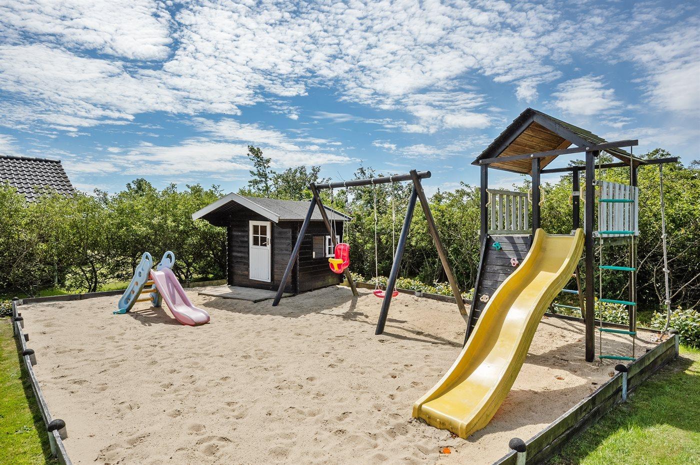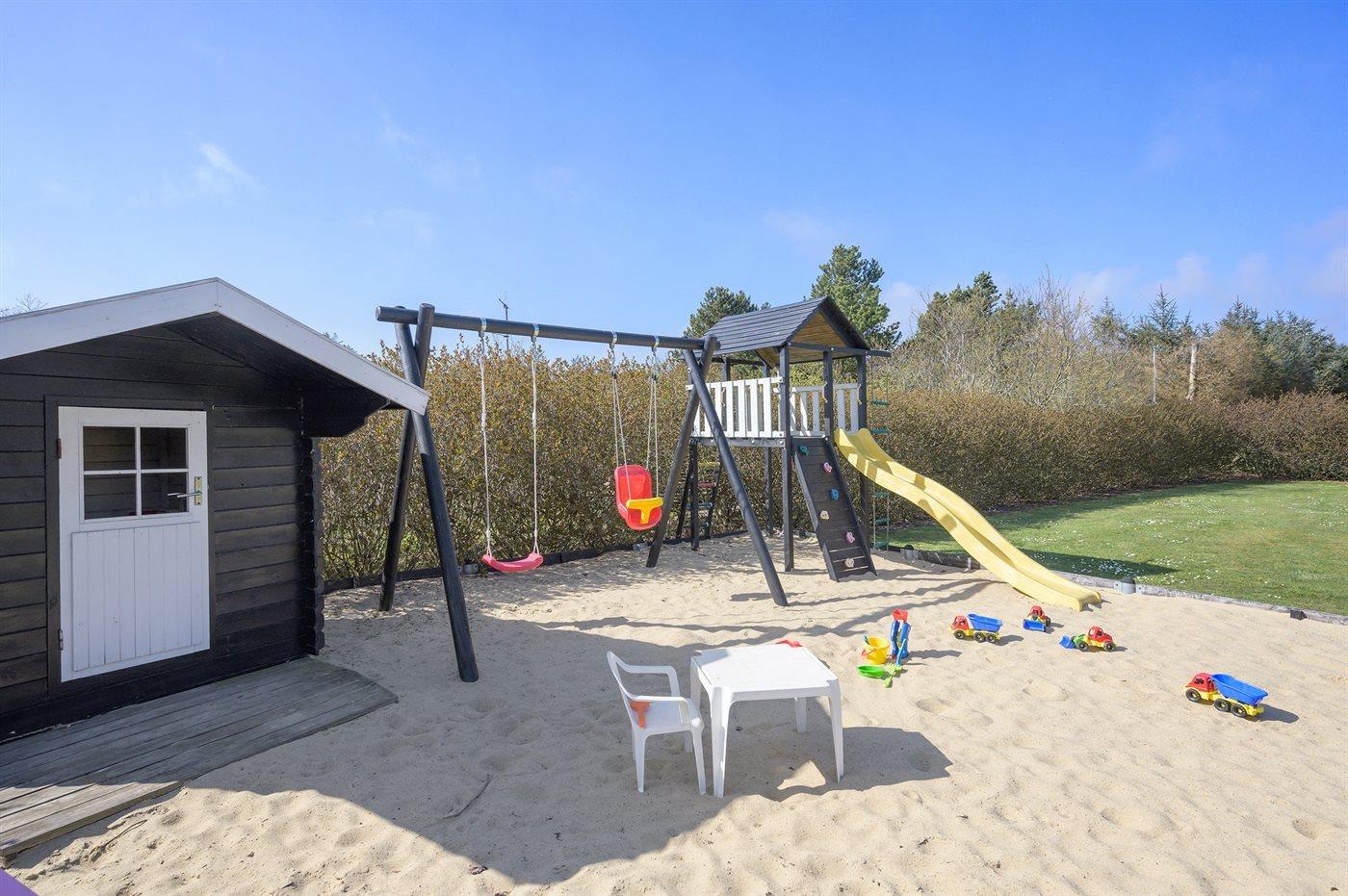 Ein modernes Ferienhaus, nur 400 m von Ringkøbing Fjord entfernt, in einem Gebiet reich an Naturerlebnissen gelegen. Besuchen Sie den kleinen gemütlichen Hafen in Stauning. Hier gibt es Restaurant und einen künstlich angelegten Baden-Waten-Strand, für Kinder gut geeignet.