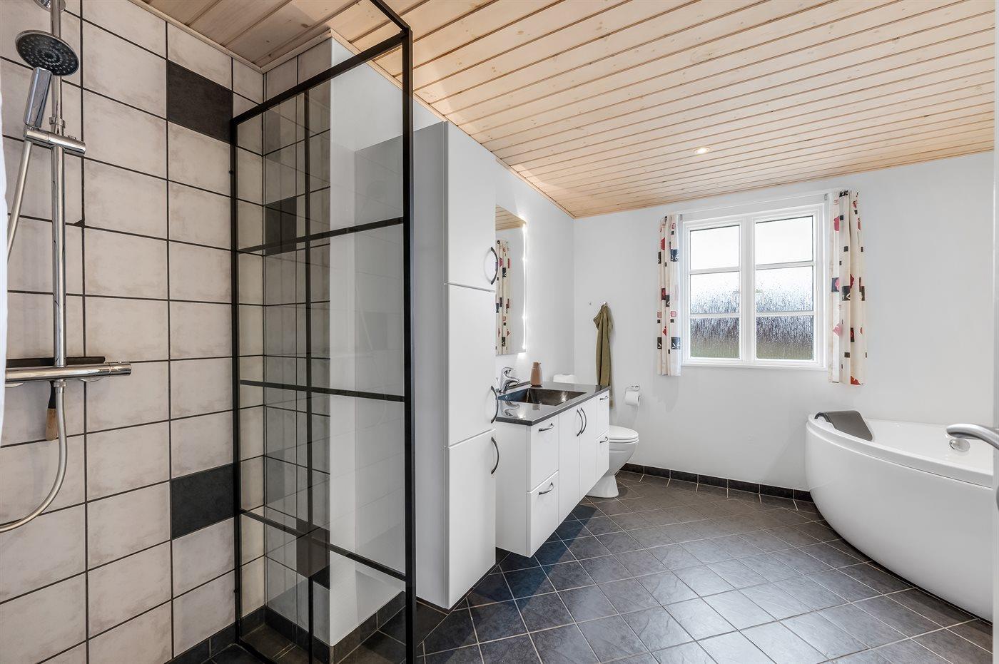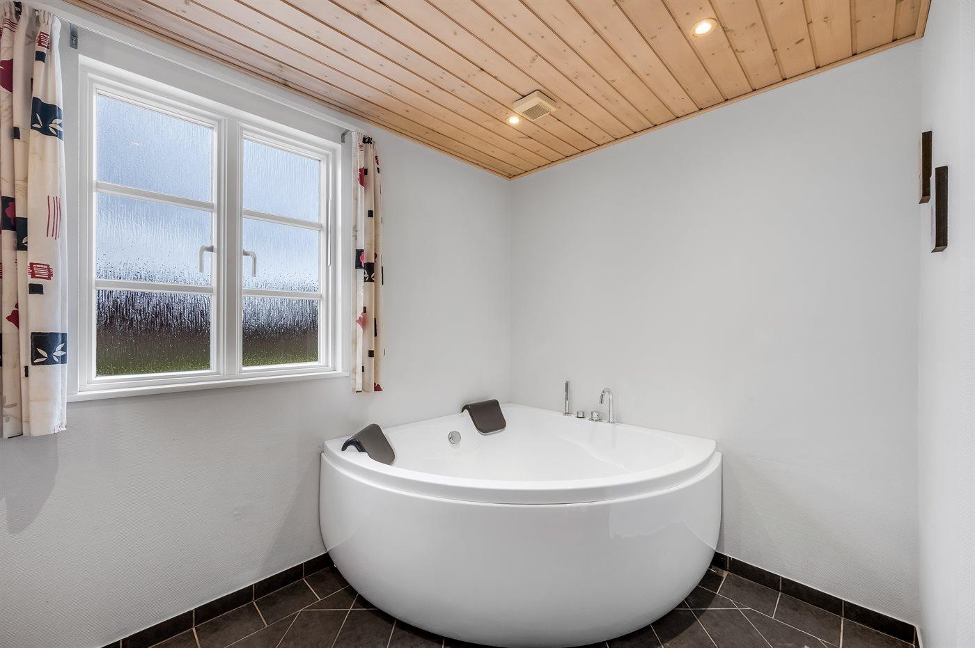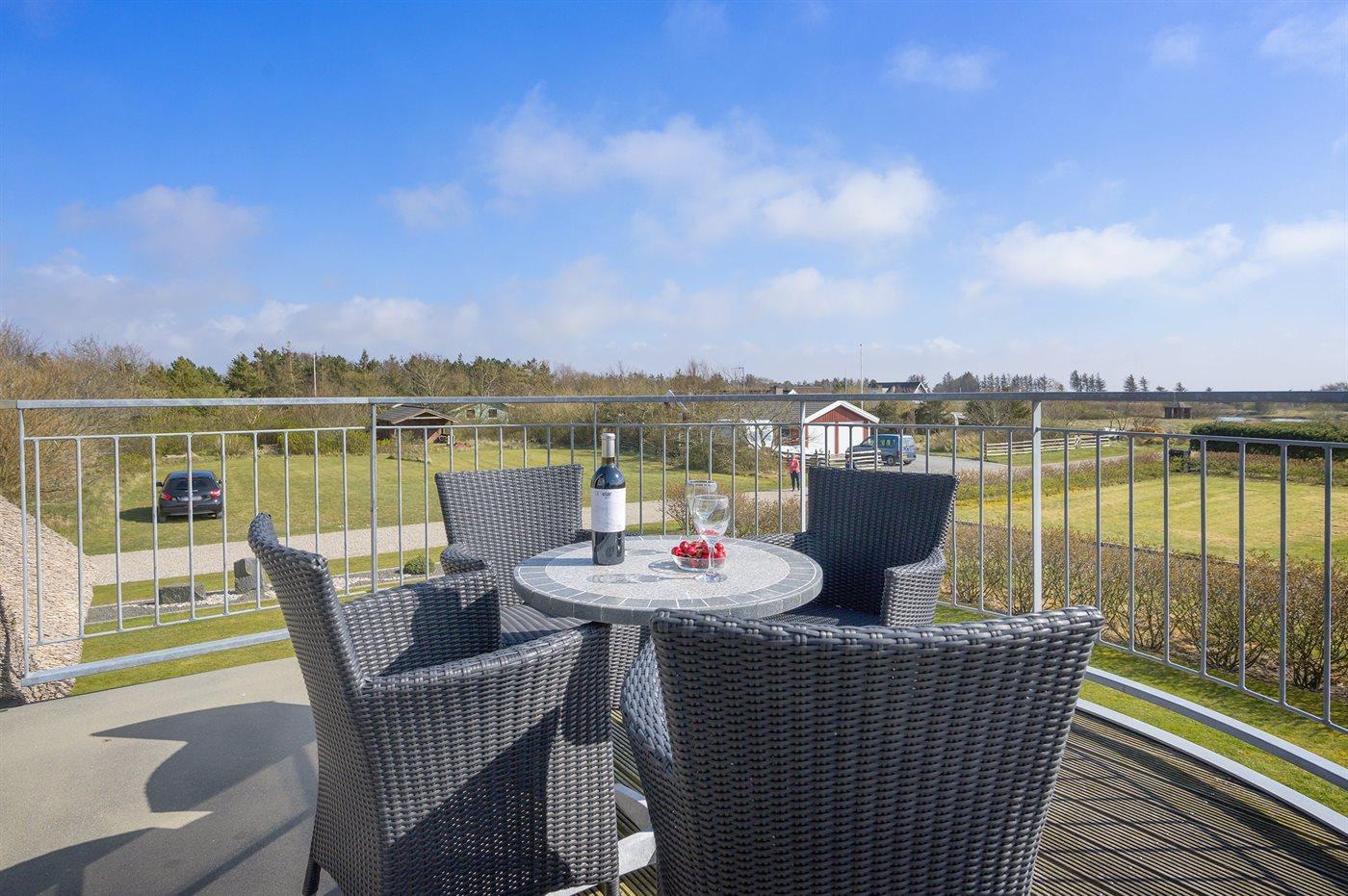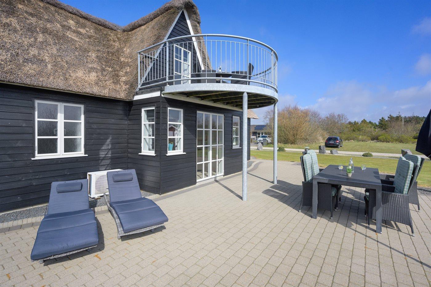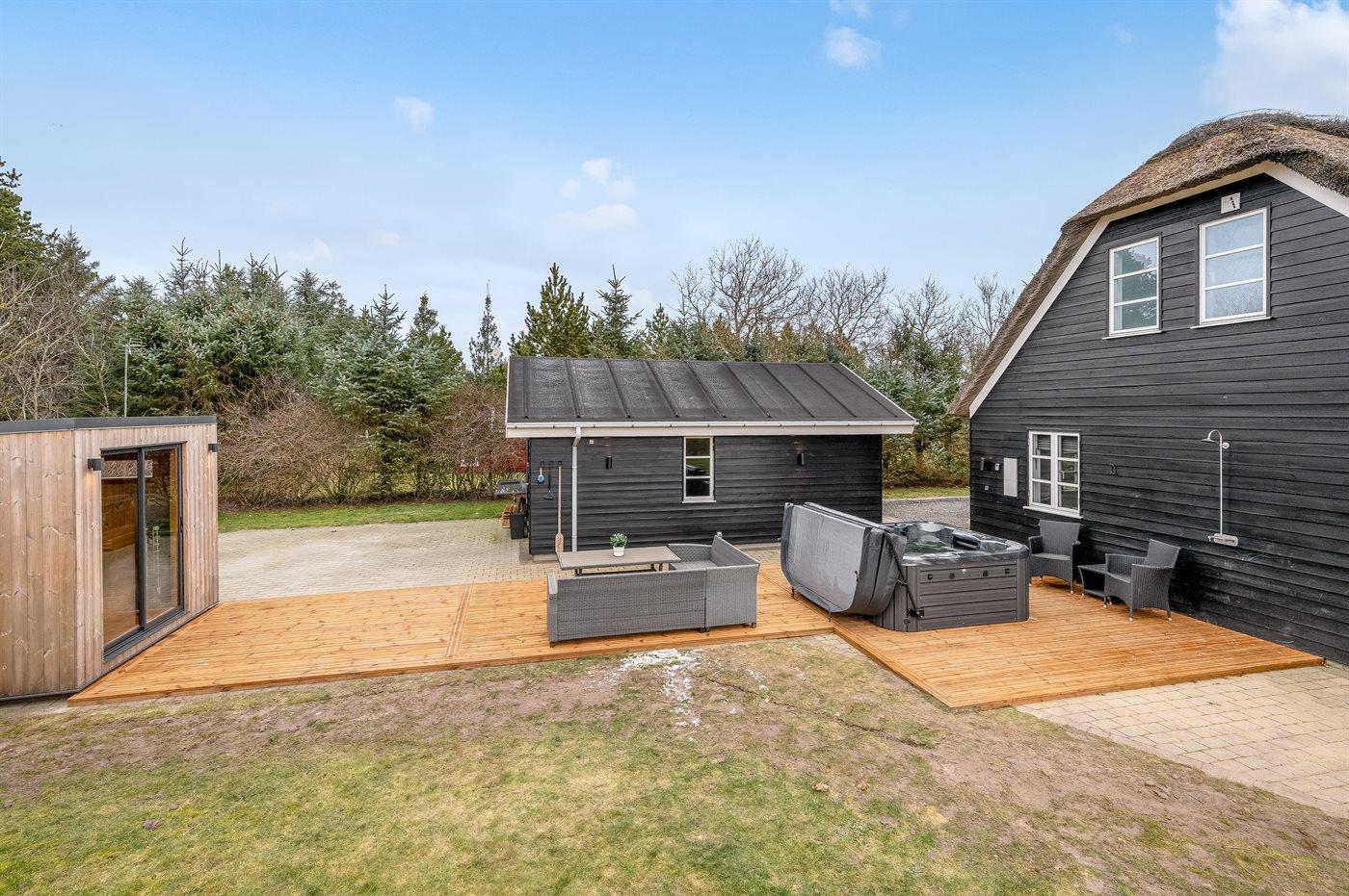 Nettes Luxusferienhaus in 2 Etagen gebaut und mit Aussicht über Ringkøbing Fjord vom Obergeschoss, auf einem schönen Naturgrundstück gelegen. Das Haus aus Holz und mit Reetdach ist 2008 gebaut. Zum Haus gehören sowohl offenes als überdachtes Terrassenareal mit diversen Gartenmöbeln und ein Balkon. Außerdem stehen eine Außensauna für 8 Personen sowie ein Außen-Whirlpool für 6 Personen zur Verfügung, die das ganze hindurch benutzt weden können.