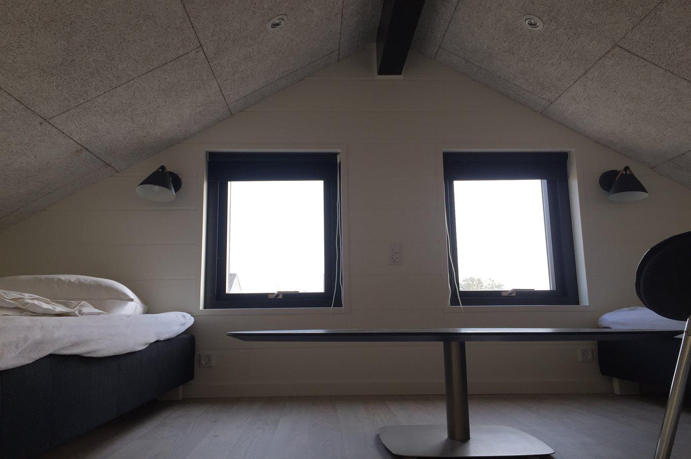 Die Schlafpätze verteilen sich auf 4 Zimmer, alle mit Doppelbett. Außerdem gibt es 2 Schlafplätze mit Einzelbetten in einem großen offenen Obergeschoss sowie 2 zusätzliche Schlafplätze auf Matratzen in einem kleinen offen Obergeschoss im Anschluss an das Wohnzimmer.