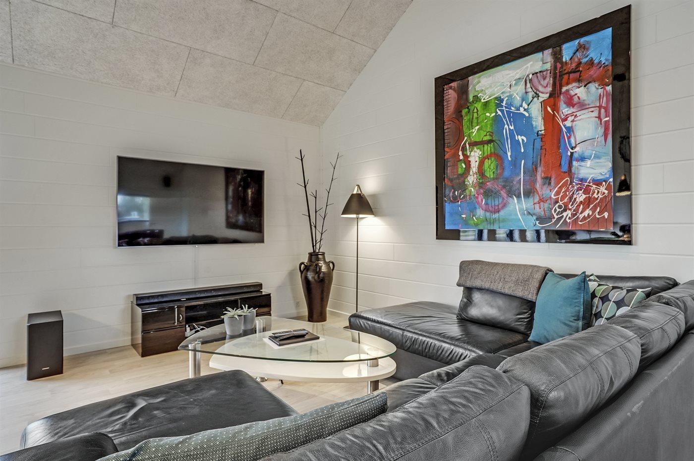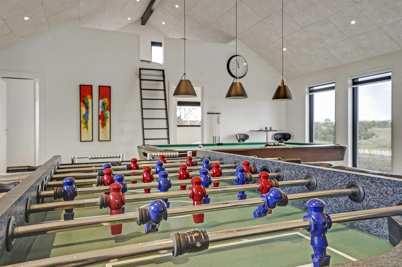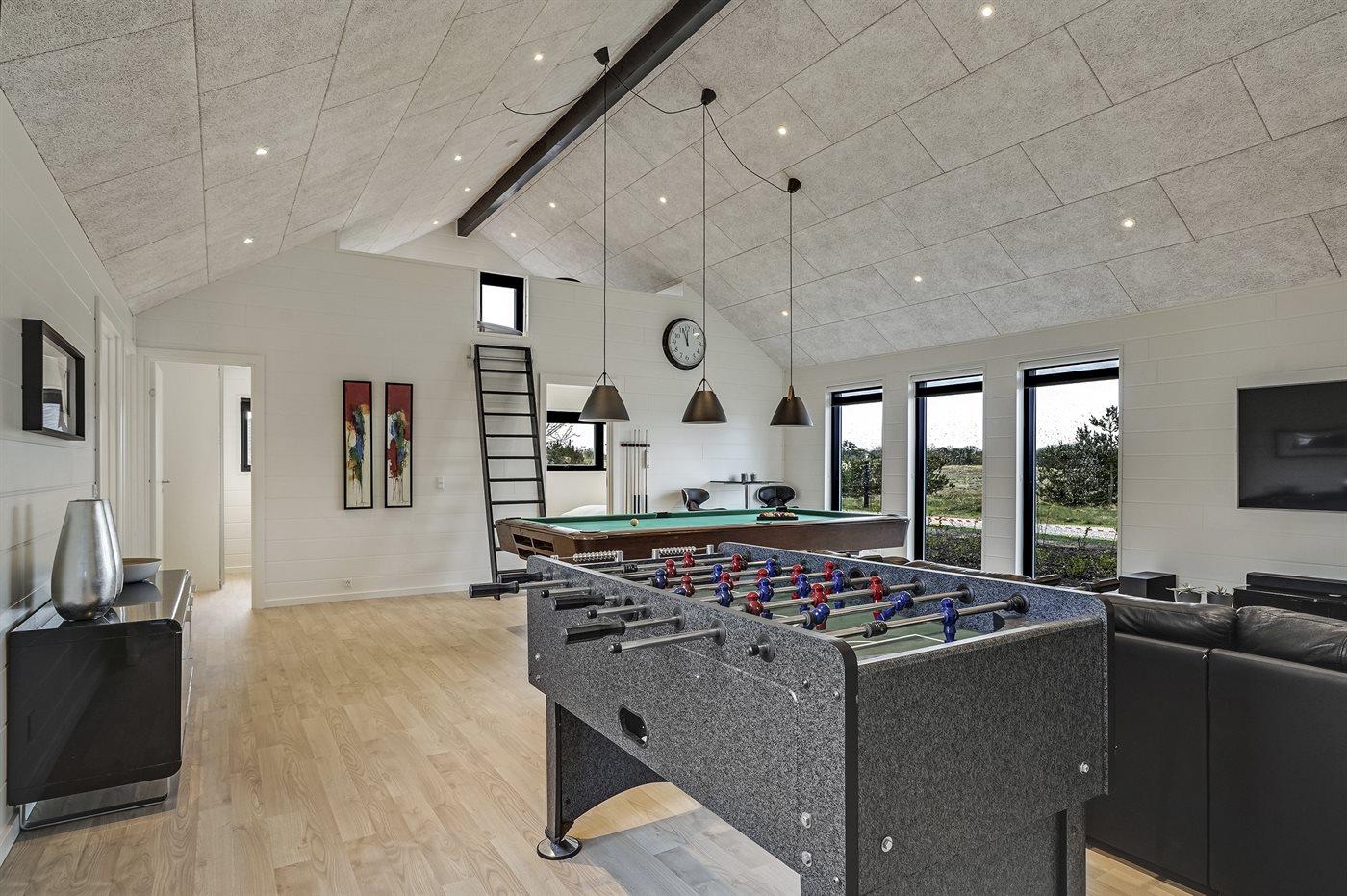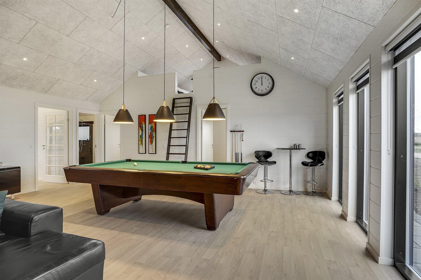 Im Hobbyraum finden Sie Billard-/Pooltisch, Tischfußball, eine große Sofaecke sowie 65” Fernseher mit Smart-TV mit Chromecast und Surroundsound.