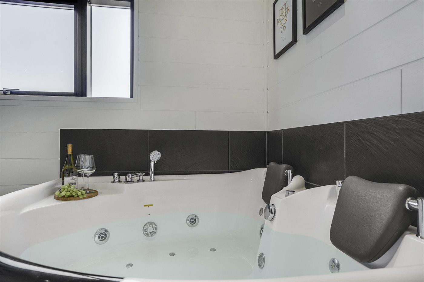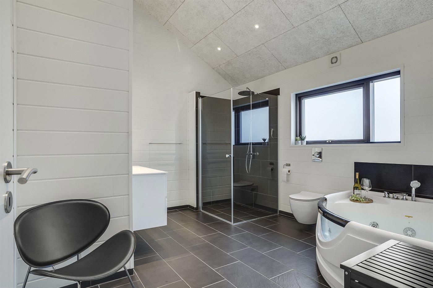 Es gibt 2 Badezimmer, beide mit Duschnische und Toilette. In dem großen Badezimmer gibt es außerdem ein 2-Pers.-Whirlpool in dem Sie sich so richtig entspannen können.
