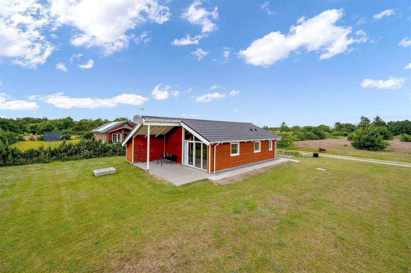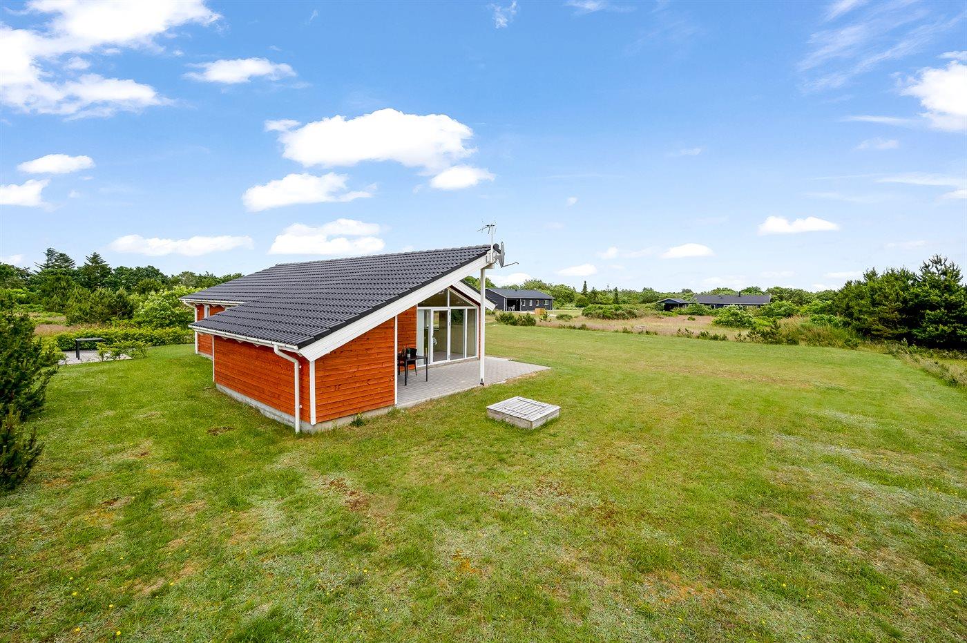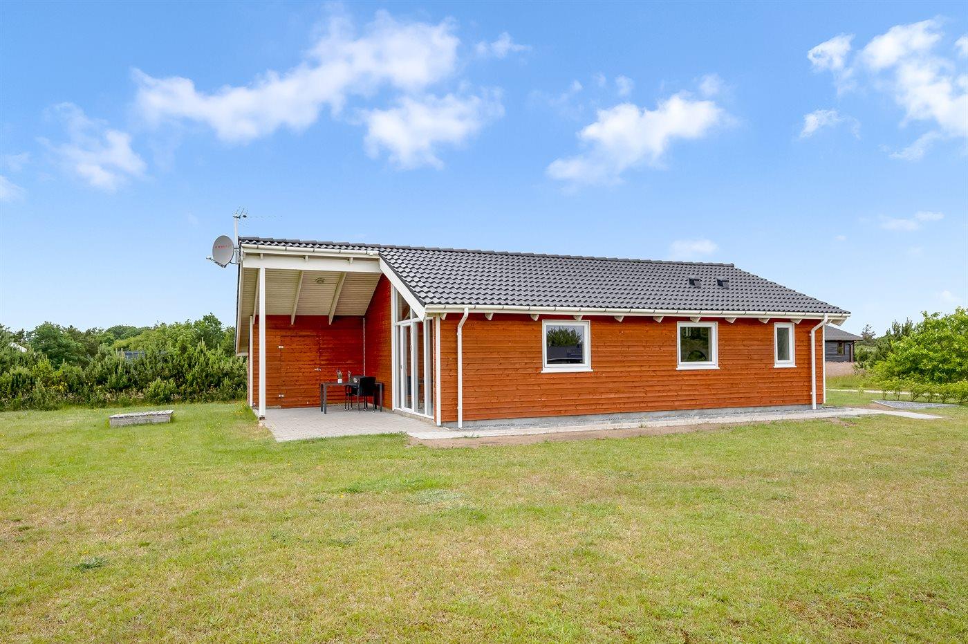 Die Ferienunterkunft liegt auf einem 1057 m² großen Naturgrundstück. Die Entfernung zum Fjord beträgt 500 m. Die nächste Einkaufsmöglichkeit liegt 5000 m entfernt. In einem Abstand von 10000 m gibt es einen Golfplatz. Es steht ein 18 m² Terrassenareal zur Verfügung. Außerdem gibt es 9 m² überdachte Terrasse. Geräteraum. Sandkasten. Parkplatz auf dem Grundstück.