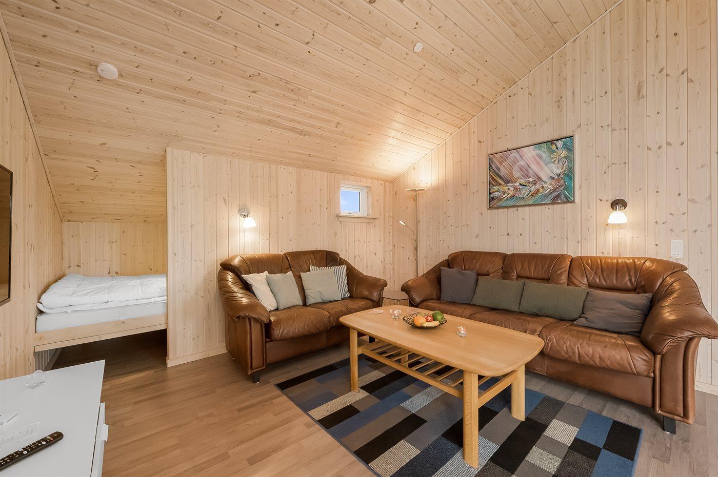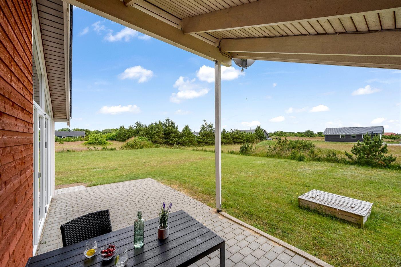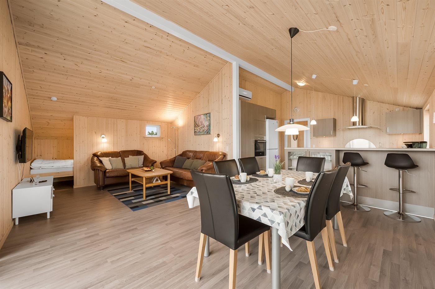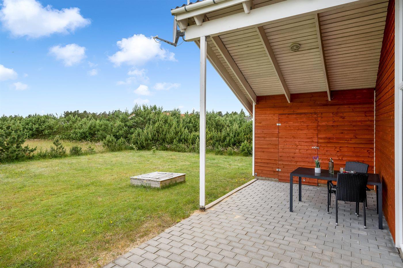 Die Ferienunterkunft liegt auf einem 1057 m² großen Naturgrundstück. Die Entfernung zum Fjord beträgt 500 m. Die nächste Einkaufsmöglichkeit liegt 5000 m entfernt. In einem Abstand von 10000 m gibt es einen Golfplatz. Es steht ein 18 m² Terrassenareal zur Verfügung. Außerdem gibt es 9 m² überdachte Terrasse. Geräteraum. Sandkasten. Parkplatz auf dem Grundstück.