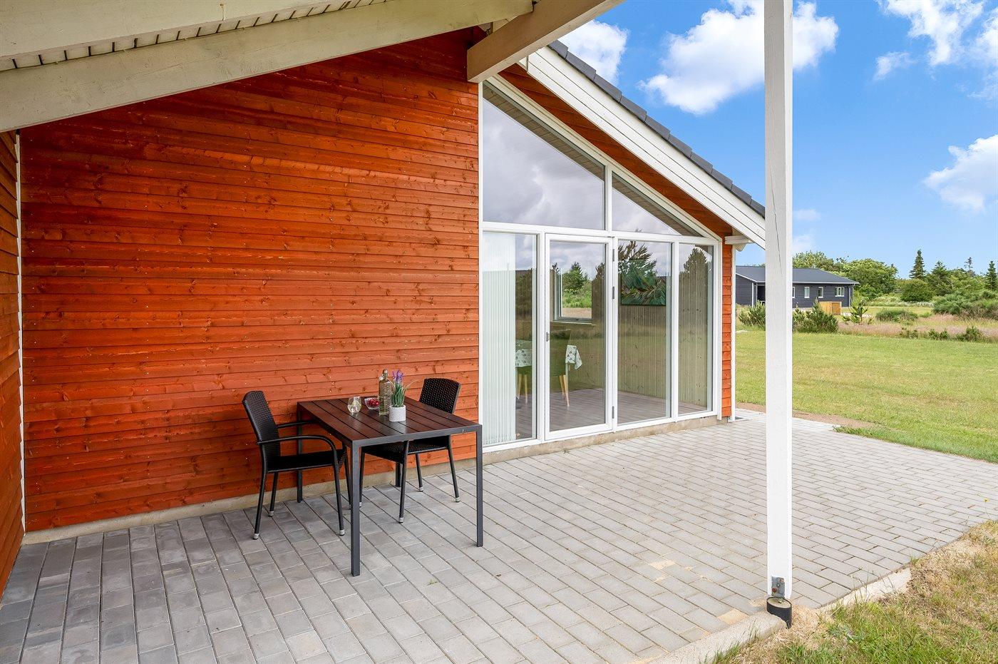 Modernes Ferienhaus in Skjern mit Terrasse und Nähe zum Ringkøbing Fjord, ideal für Familien mit Kindern und Haustieren.