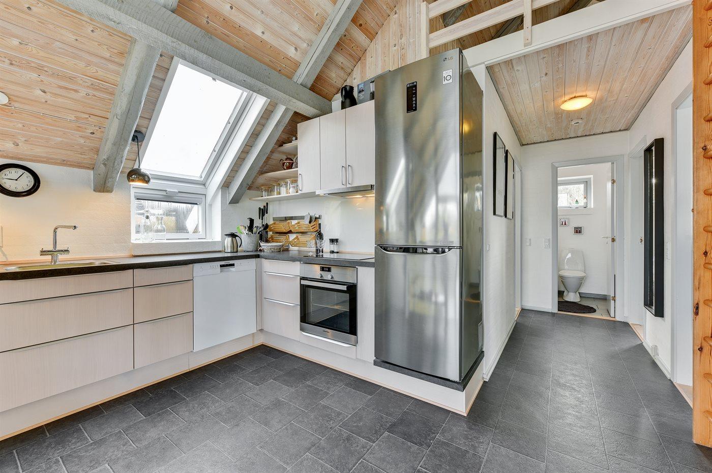 Die Küche ist mit Kühlschrank ausgestattet. Außerdem gibt es 4 Induktions-Kochzonen, Umluftofen, Mikrowelle sowie Geschirrspüler. Fußbodenheizung in der Küche.