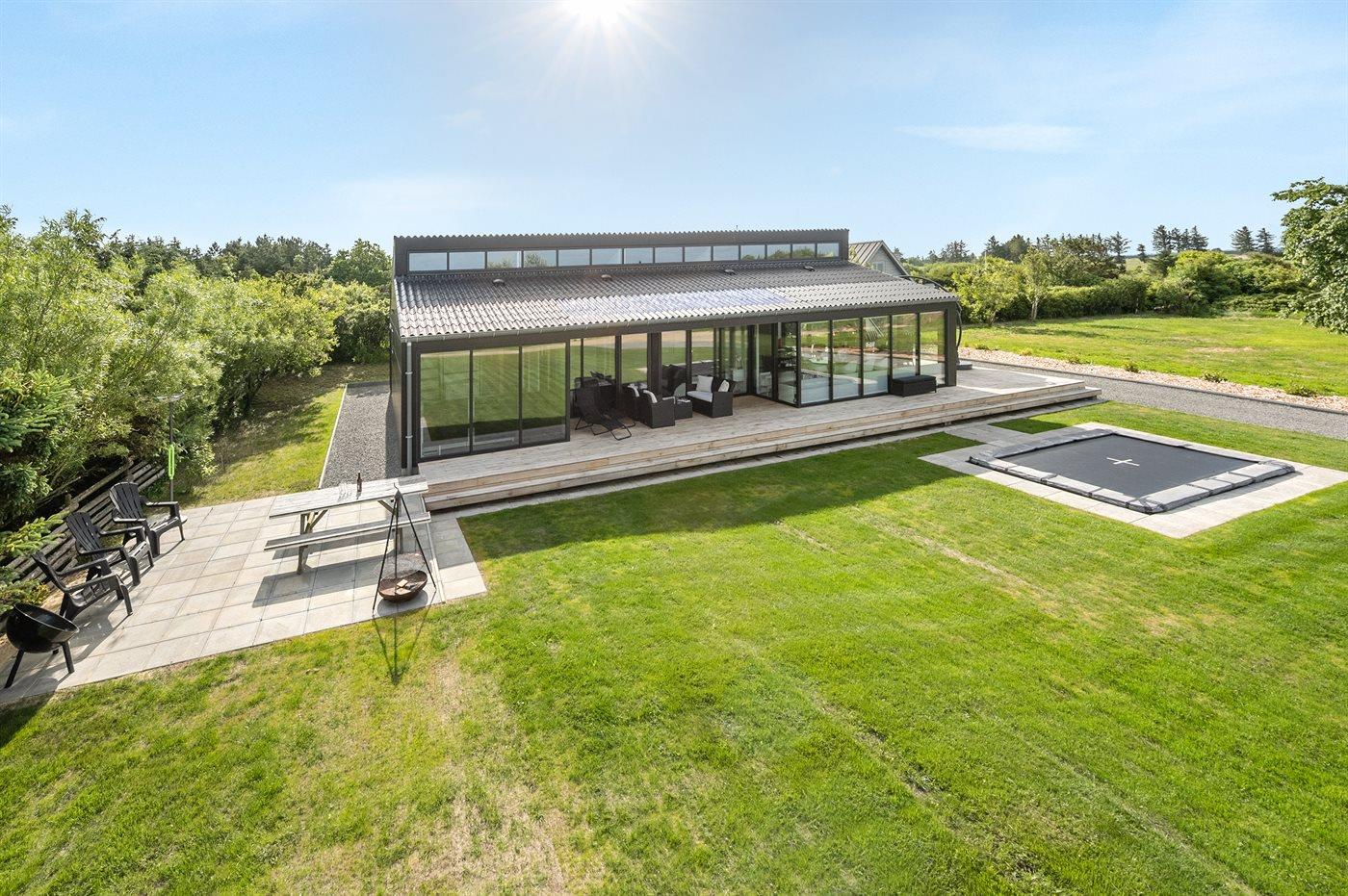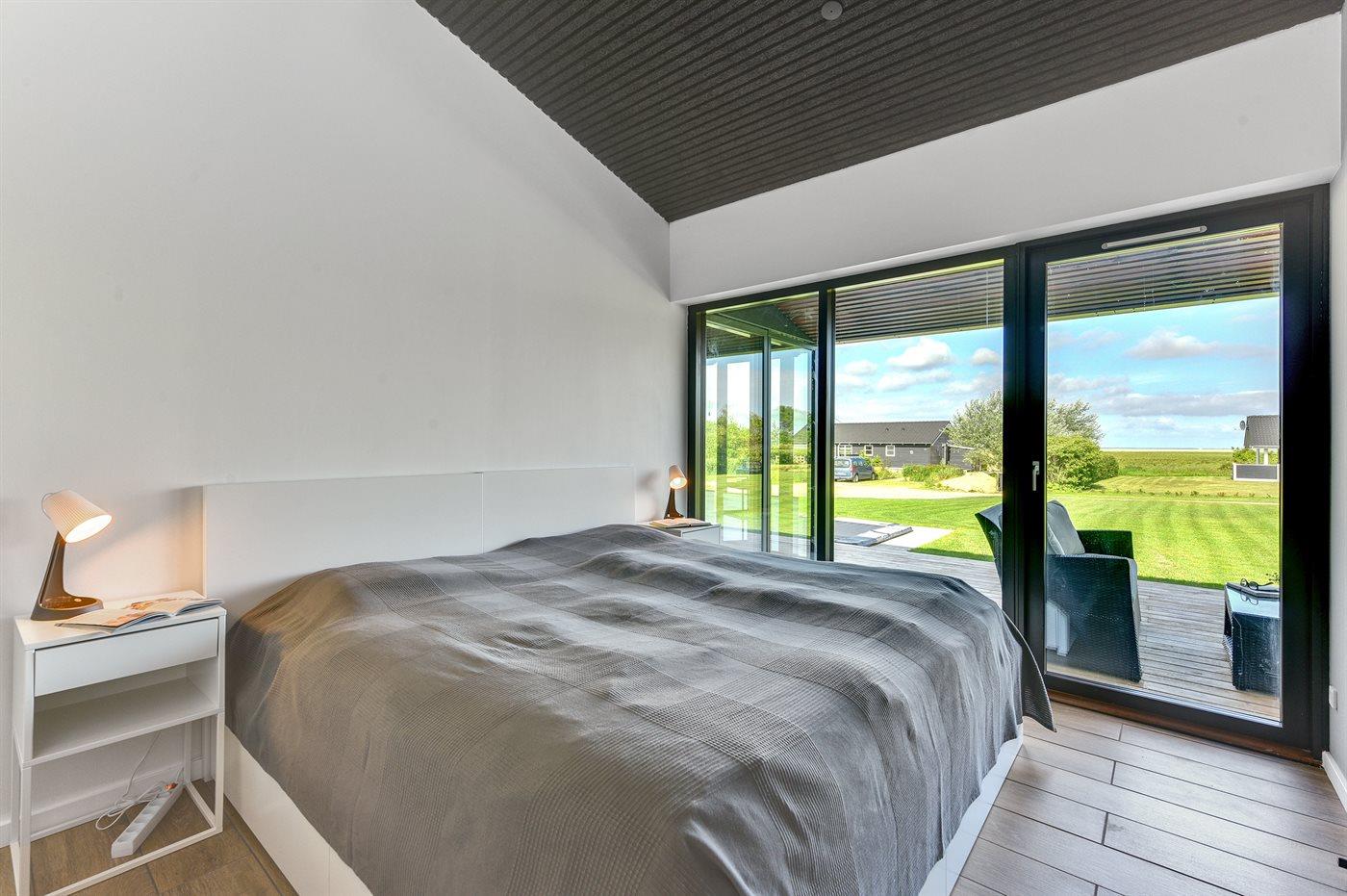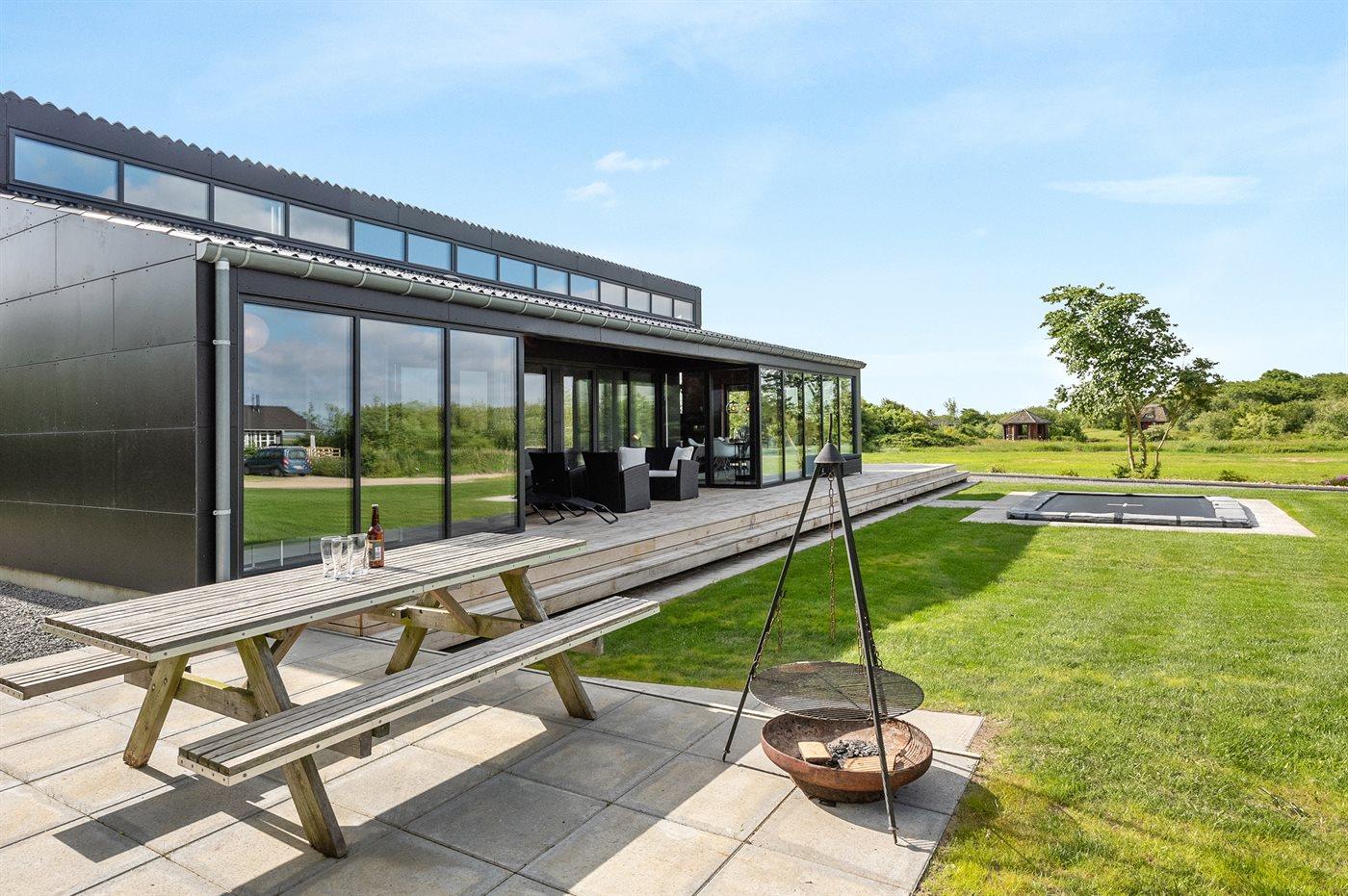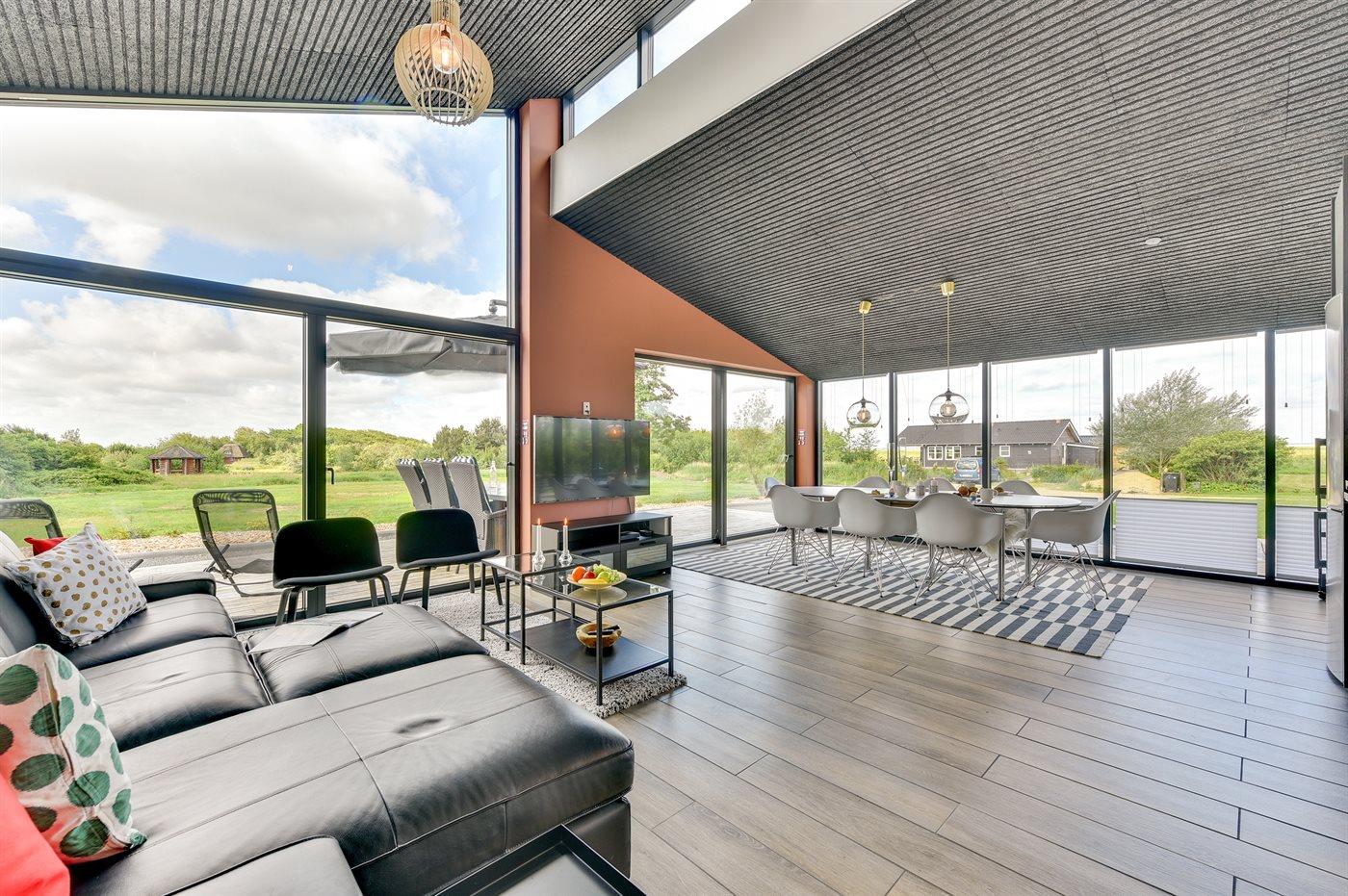 Exklusives Ferienhaus in Stauning mit Blick auf den Fjord, modernes Design und großzügige Terrasse für entspannte Tage.