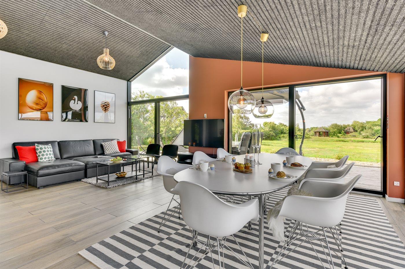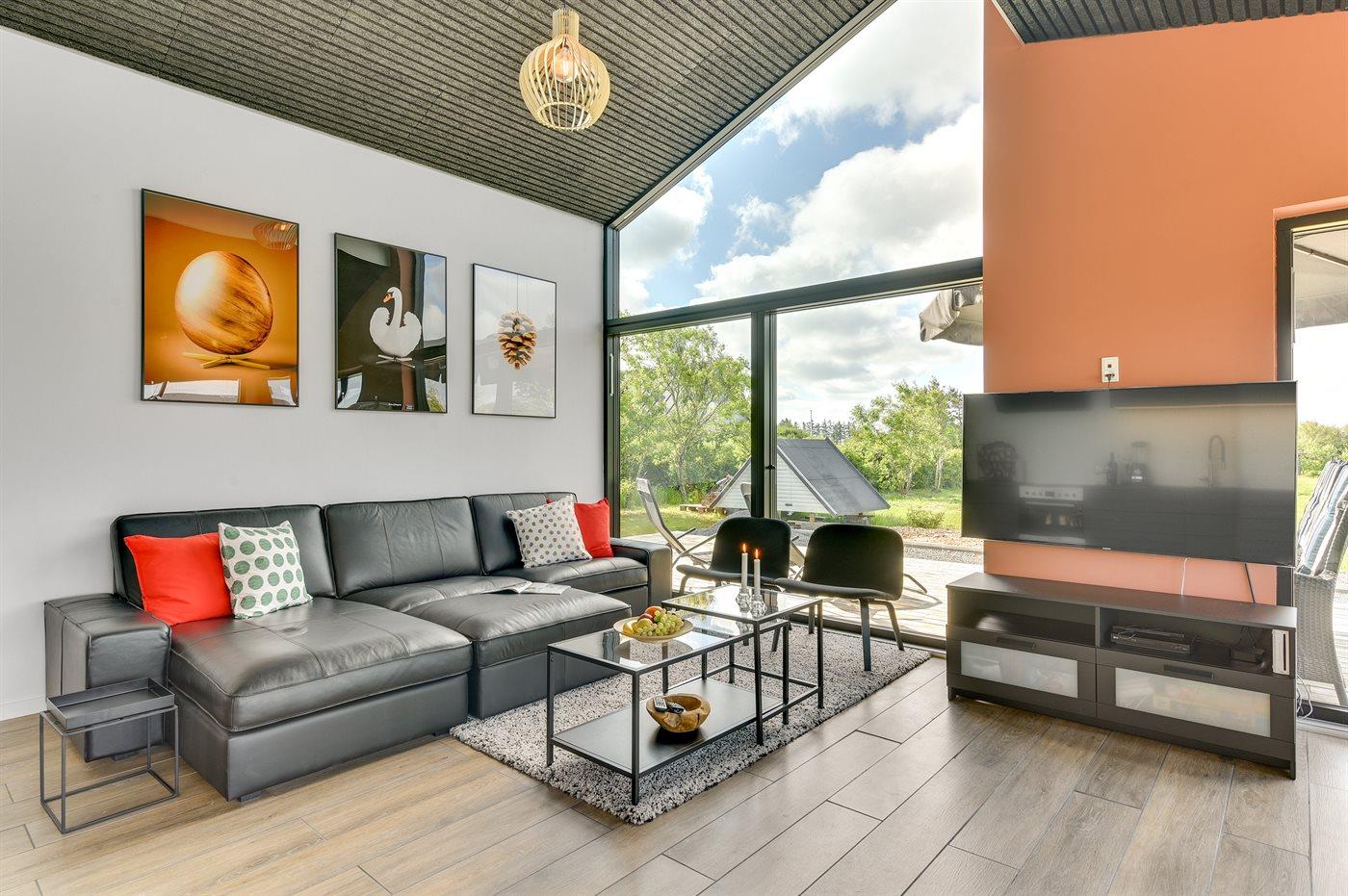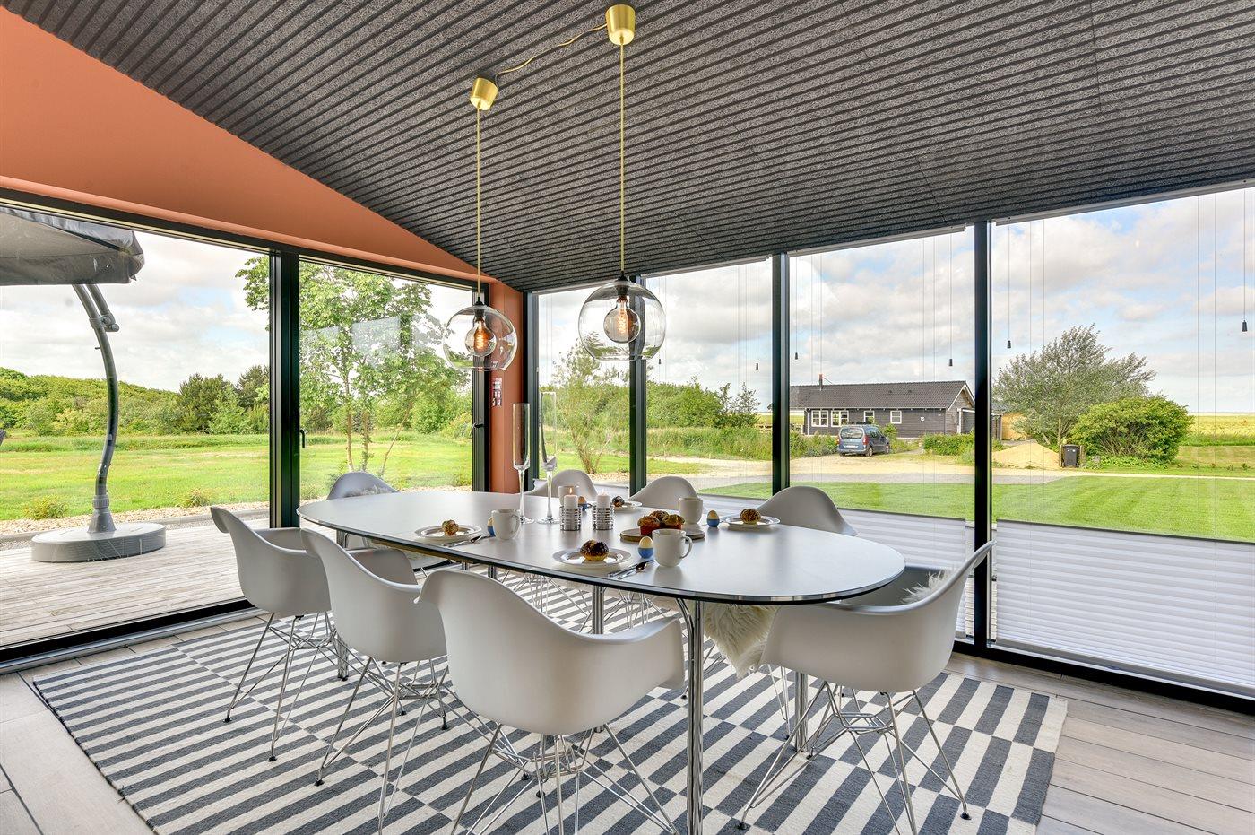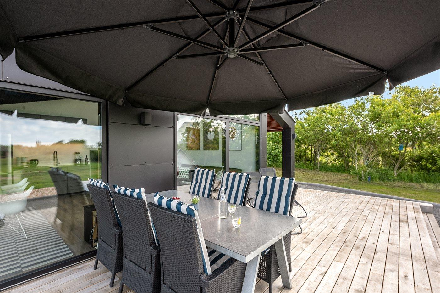 Exklusives Ferienhaus in Stauning mit Blick auf den Fjord, modernes Design und großzügige Terrasse für entspannte Tage.