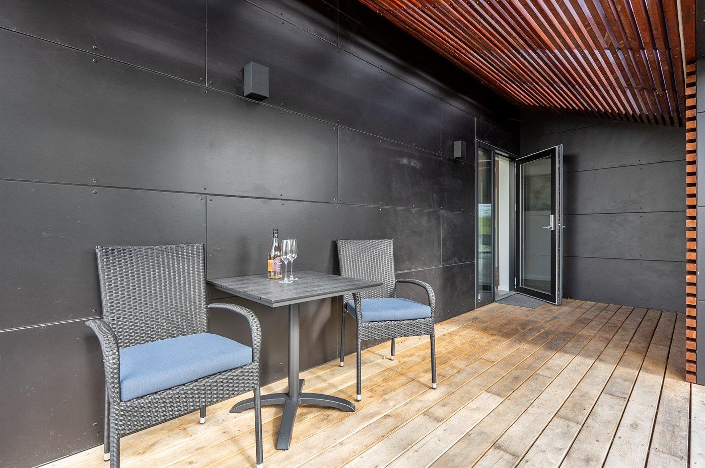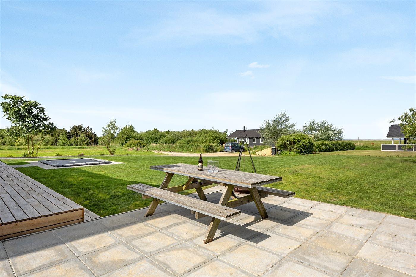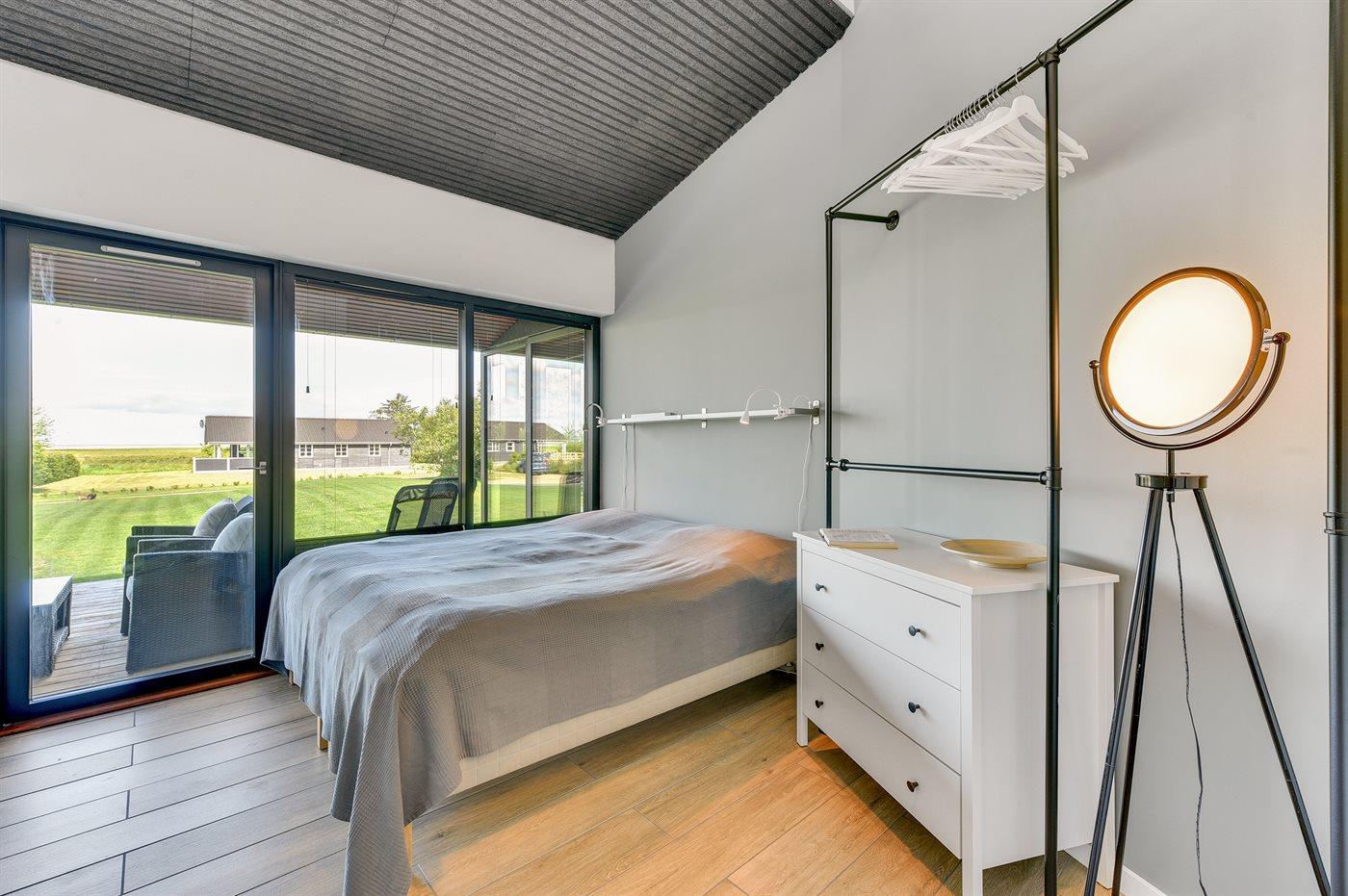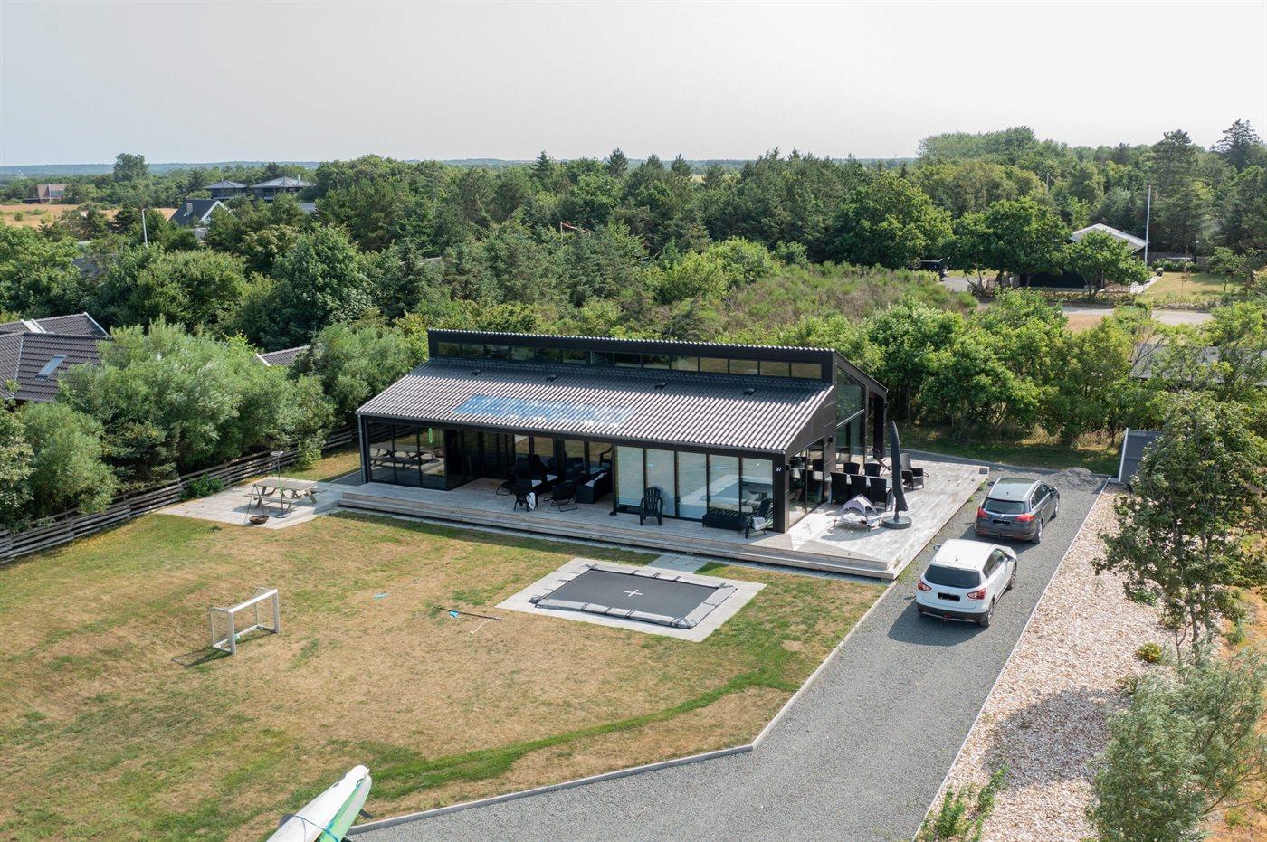 Exklusives Ferienhaus in Stauning mit Blick auf den Fjord, modernes Design und großzügige Terrasse für entspannte Tage.