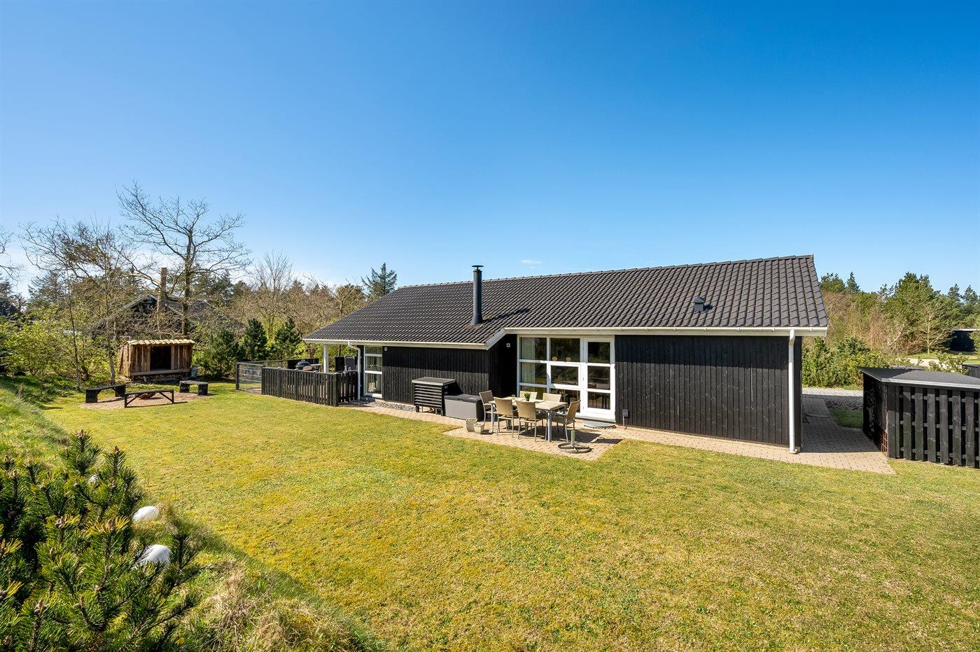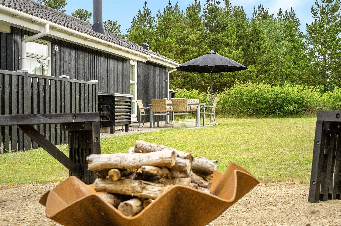 Dieses herrliche Ferienhaus liegt in ruhiger Umgebung, wo du die Ruhe und Frieden der Natur genießen kannst. Der Außenbereich bietet ein einzigartiges Erlebnis mit einem Unterstand und einem gemütlichen Lagerfeuerplatz, perfekt für das Zusammensein von Familie und Freunden um das Feuer herum.