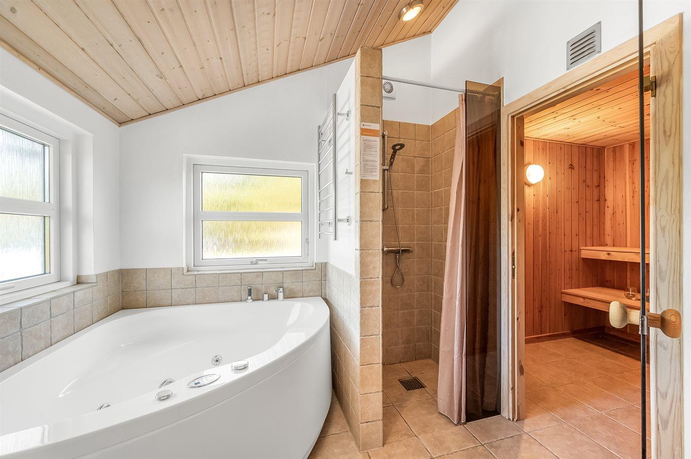 Es gibt 2 Badezimmer mit Duschnische und 2 Toiletten. Fußbodenheizung in 2 Badezimmern. Es steht eine Sauna zur Verfügung in der Sie sich so richtig entspannen können.