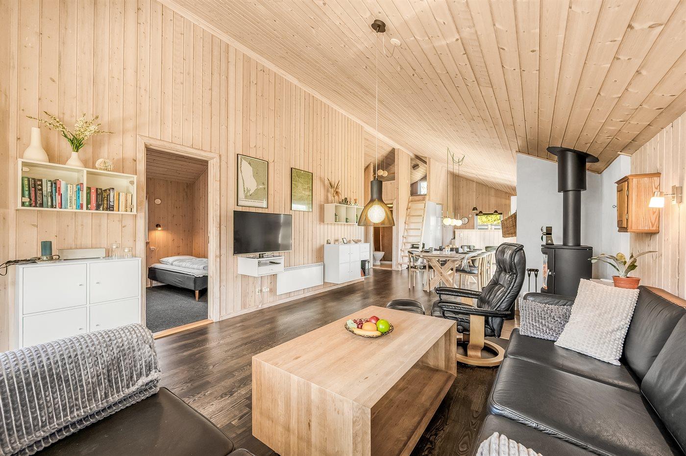 Das Ferienhaus eignet sich für 6 Personen sowie 1 Kleinkind bis zu 3 Jahren. Die Ferienunterkunft hat eine Wohnfläche von 107 m² und wurde 2009 gebaut. 2020 wurde die Ferienunterkunft teilweise renoviert. Haustiere dürfen nicht mitgebracht werden. Die Ferienunterkunft ist mit energiesparender Wärmepumpe ausgestattet. Die Ferienunterkunft ist mit Waschmaschine ausgestattet. Wäschetrockner. Tiefkühlmöglichkeit mit 130 Liter Nutzinhalt. Es gibt außerdem einen Kaminofen. Für die jüngsten Feriengäste ist 1 Kinderhochstuhl vorhanden.